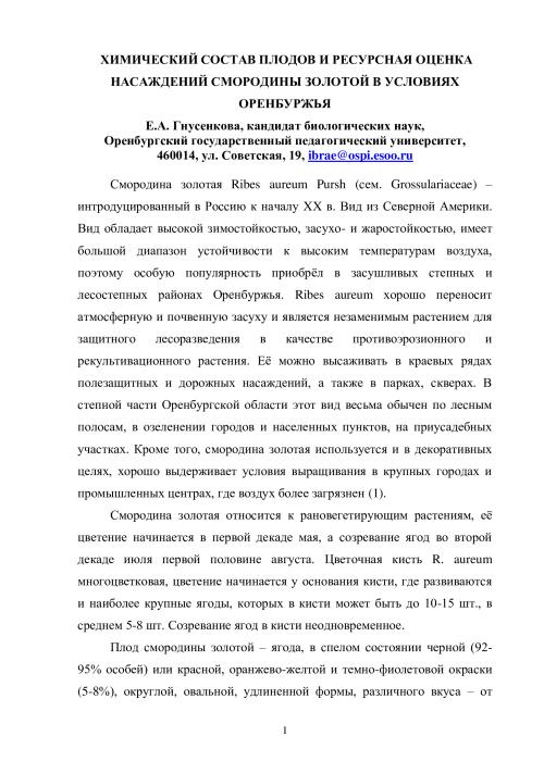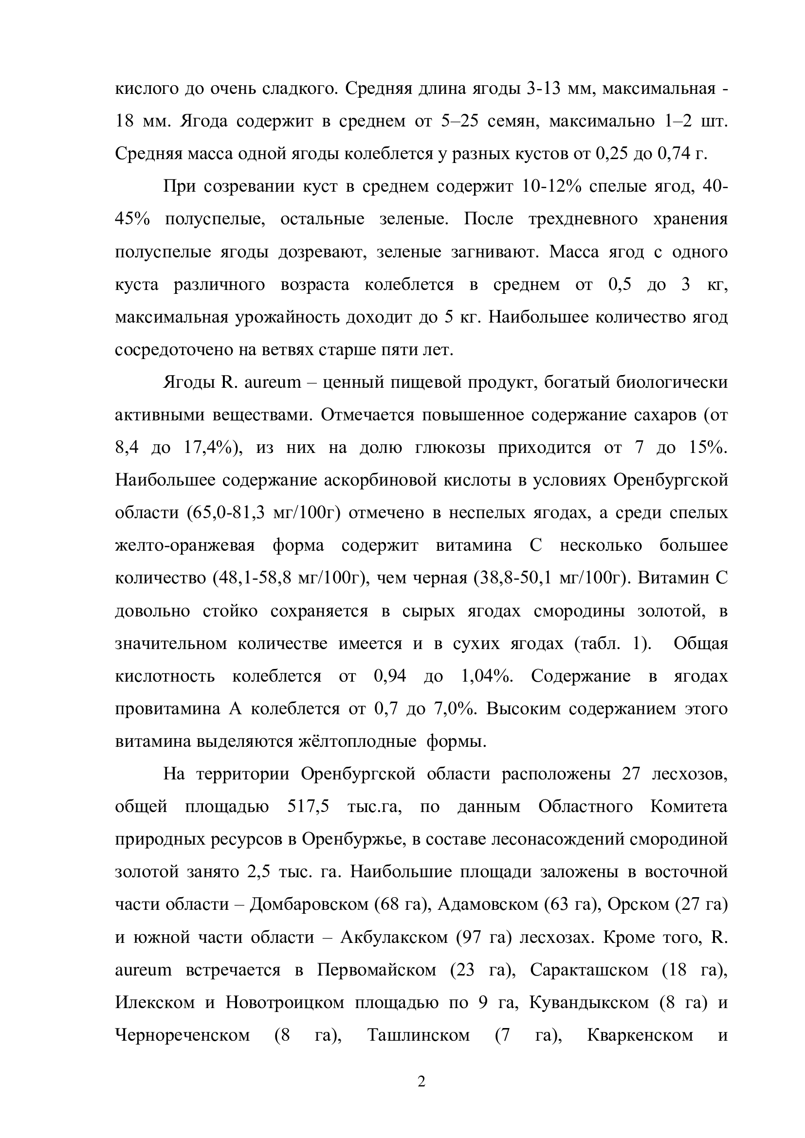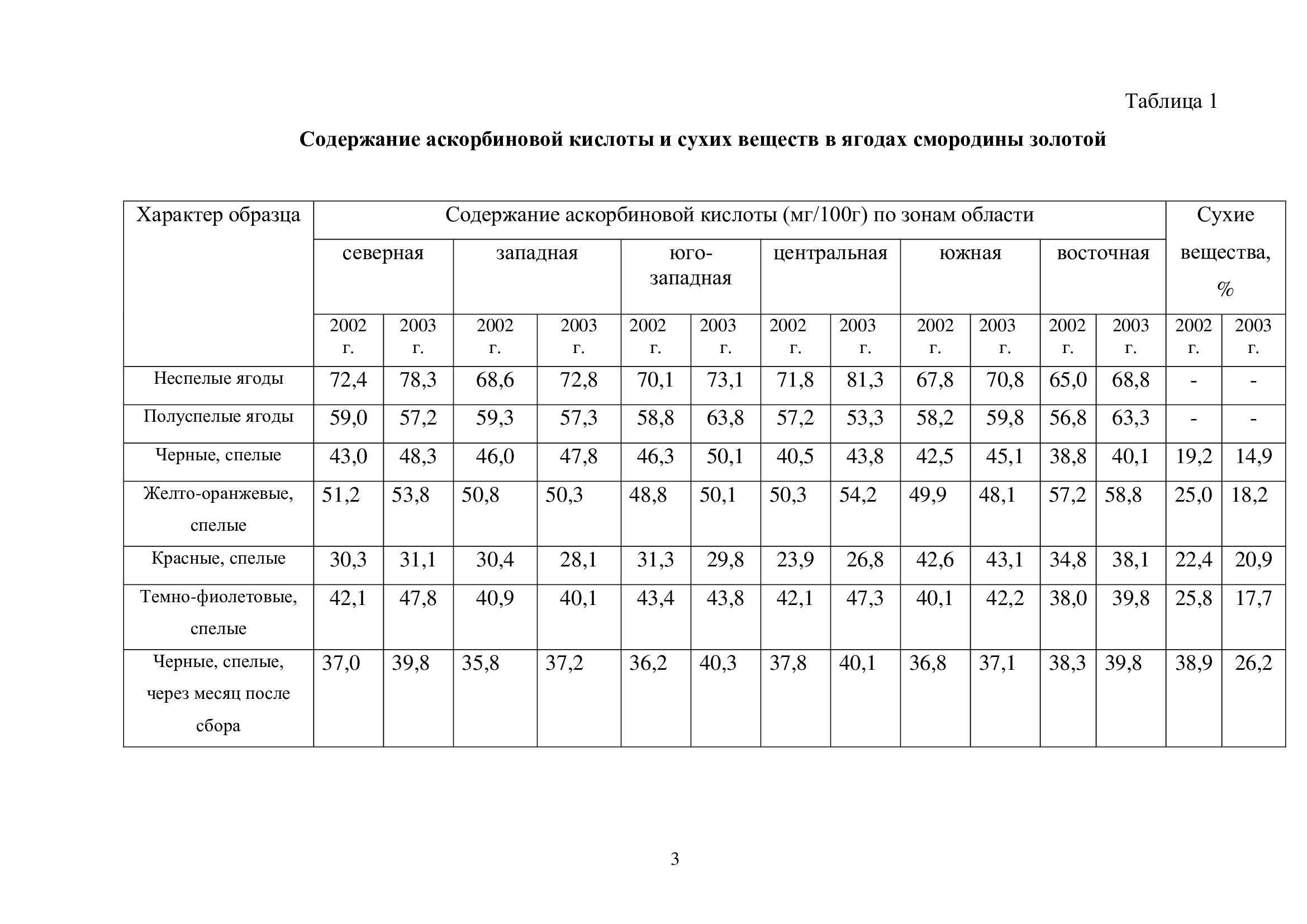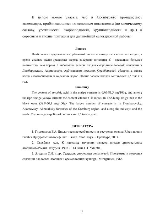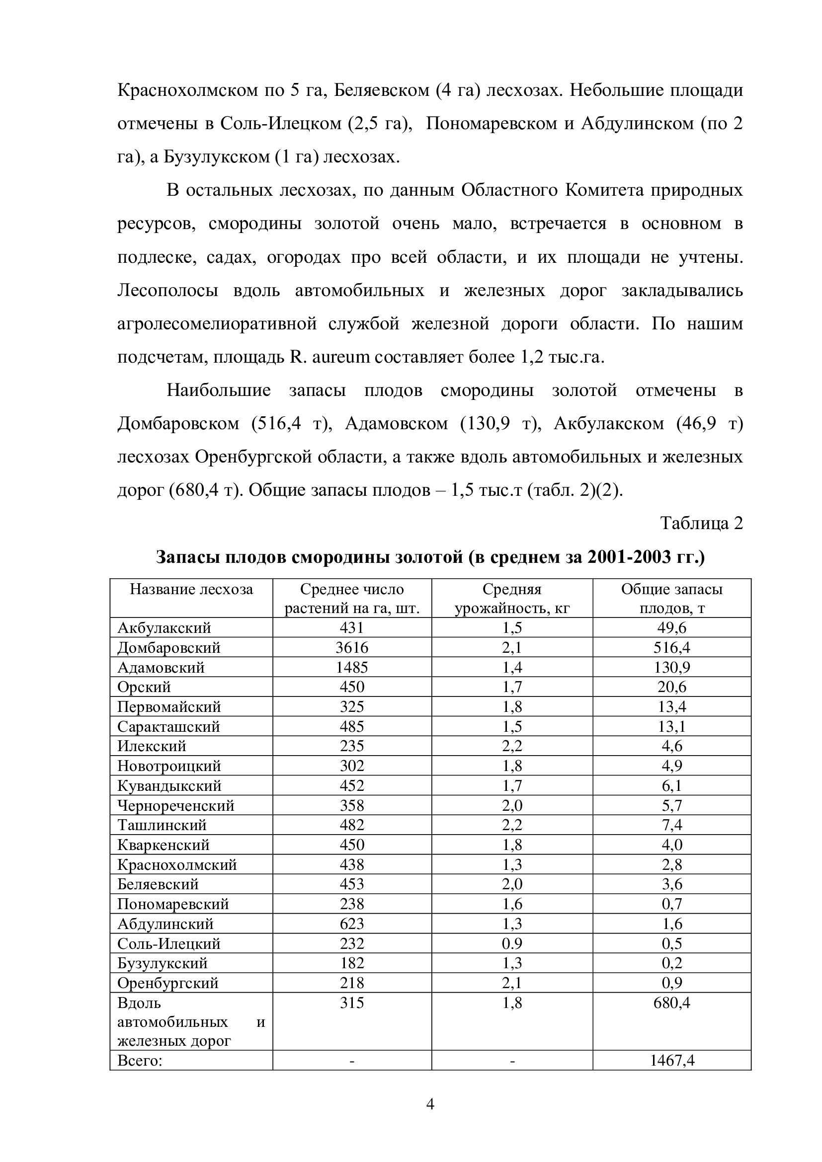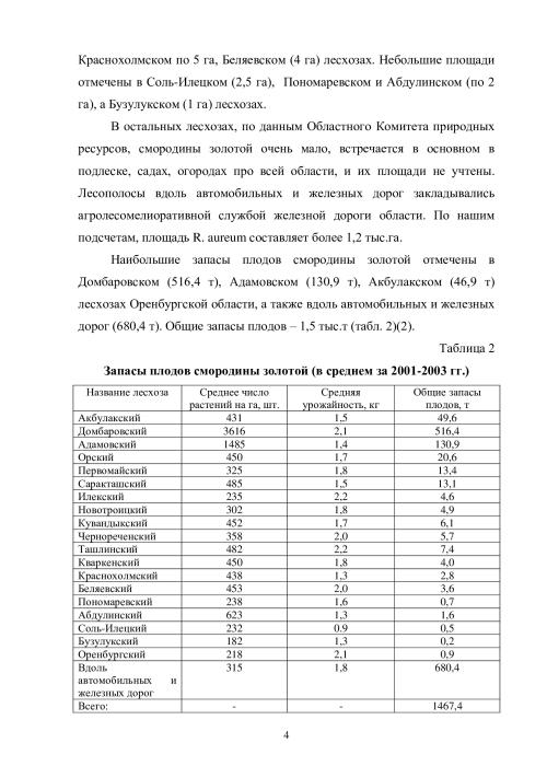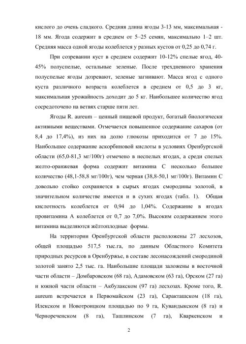 The content of ascorbic acid in the unripe currants is 65,0-81,3 mg/100g, and among the ripe orange-yellow currants the content vitamin C is more (48,1-58,8 mg/100g) than in the black ones (38,8-50,1 mg/100g). The larges number of currants is in Dombarovcky, Adamovsky, Akbulaksky forestries of the Orenburg region, and along the railways and the roads. The average supplies of currants are 1,5 tons a year.