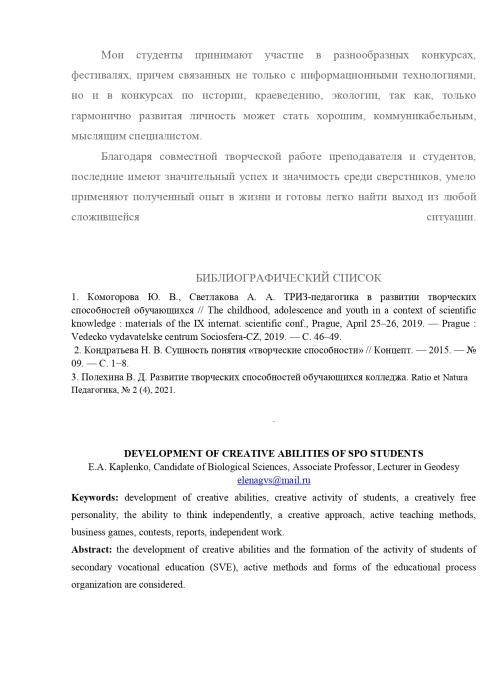 РАЗВИТИЕ ТВОРЧЕСКИХ СПОСОБНОСТЕЙ СТУДЕНТОВ СПО