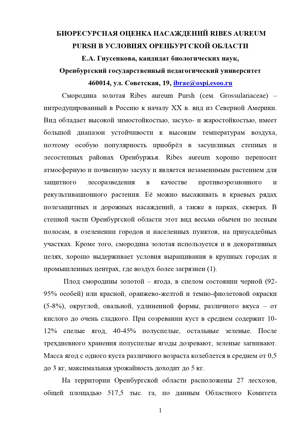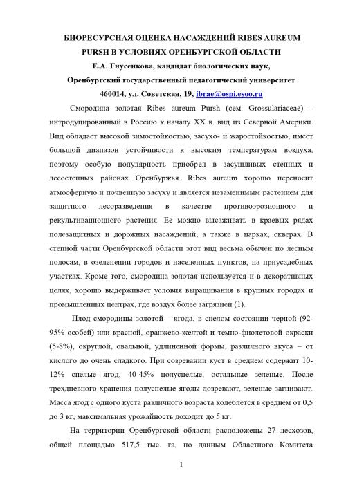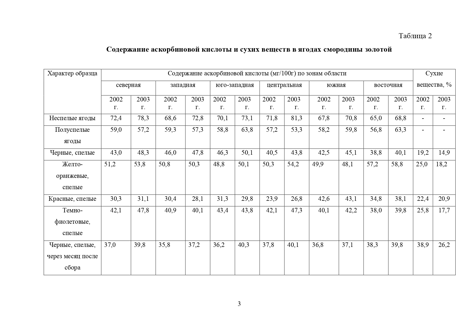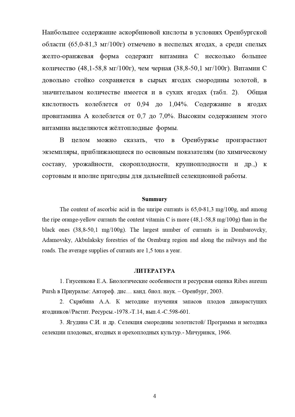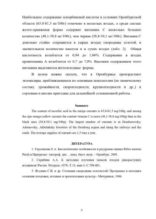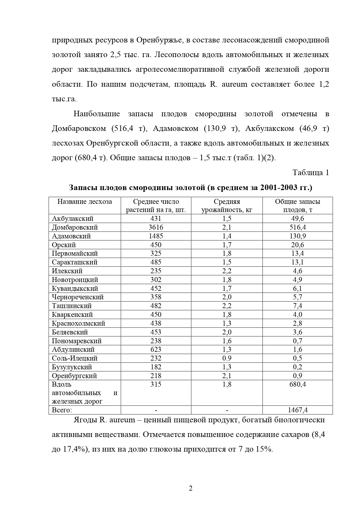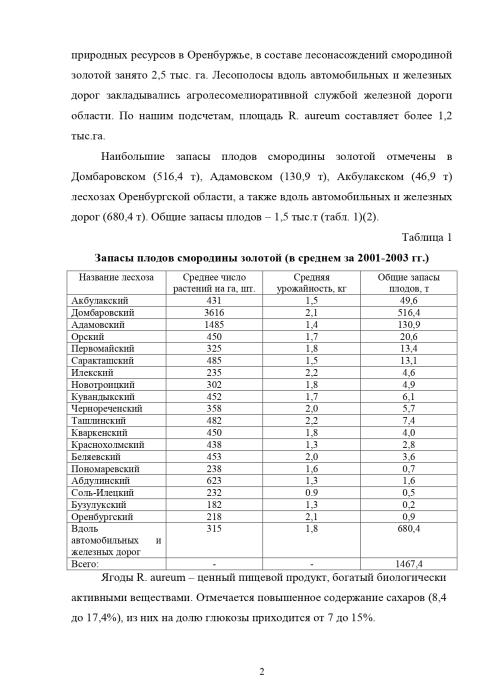 The content of ascorbic acid in the unripe currants is 65,0-81,3 mg/100g, and among the ripe orange-yellow currants the content vitamin C is more (48,1-58,8 mg/100g) than in the black ones (38,8-50,1 mg/100g). The largest number of currants is in Dombarovcky, Adamovsky, Akbulaksky forestries of the Orenburg region and along the railways and the roads. The average supplies of currants are 1,5 tons a year.