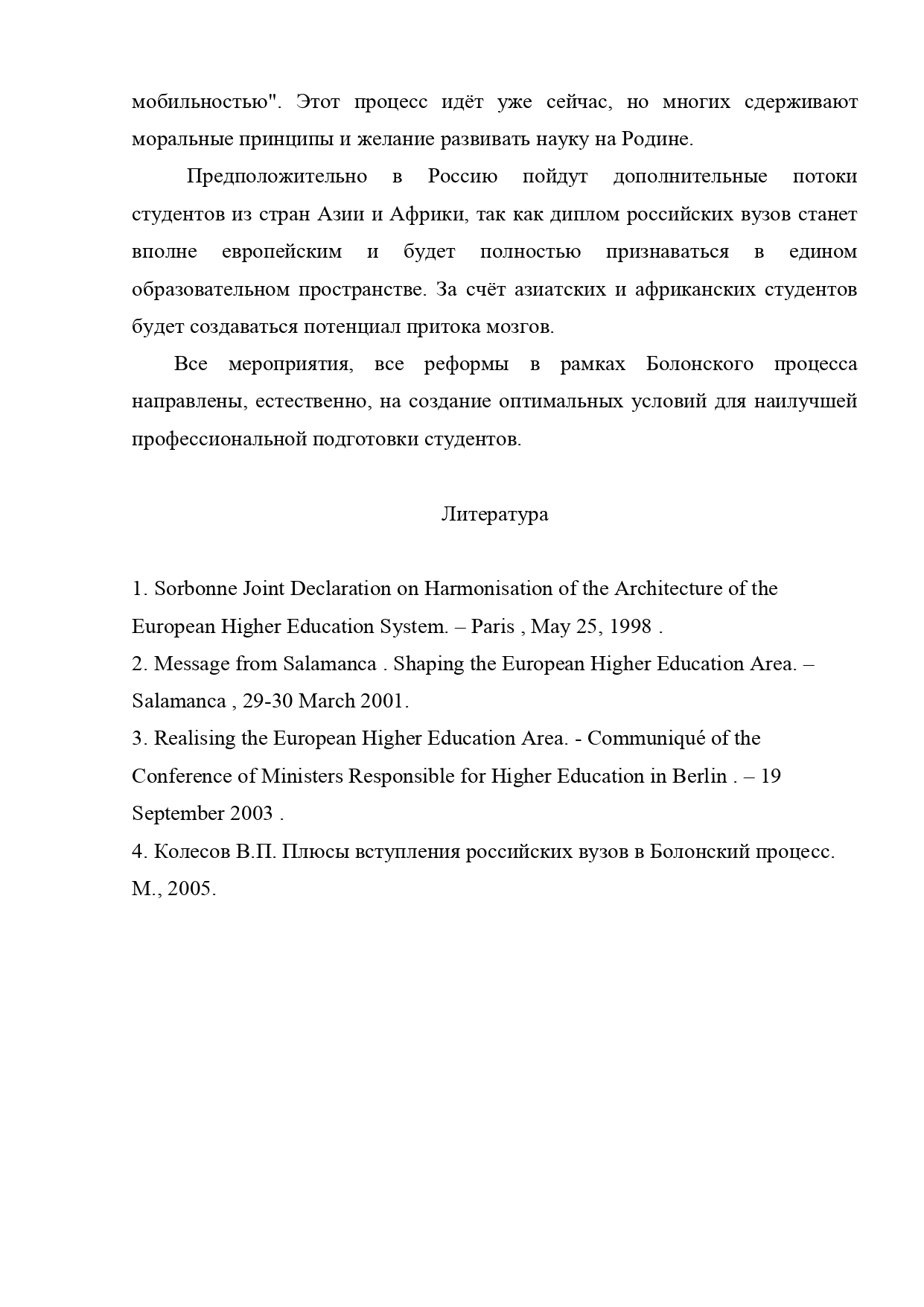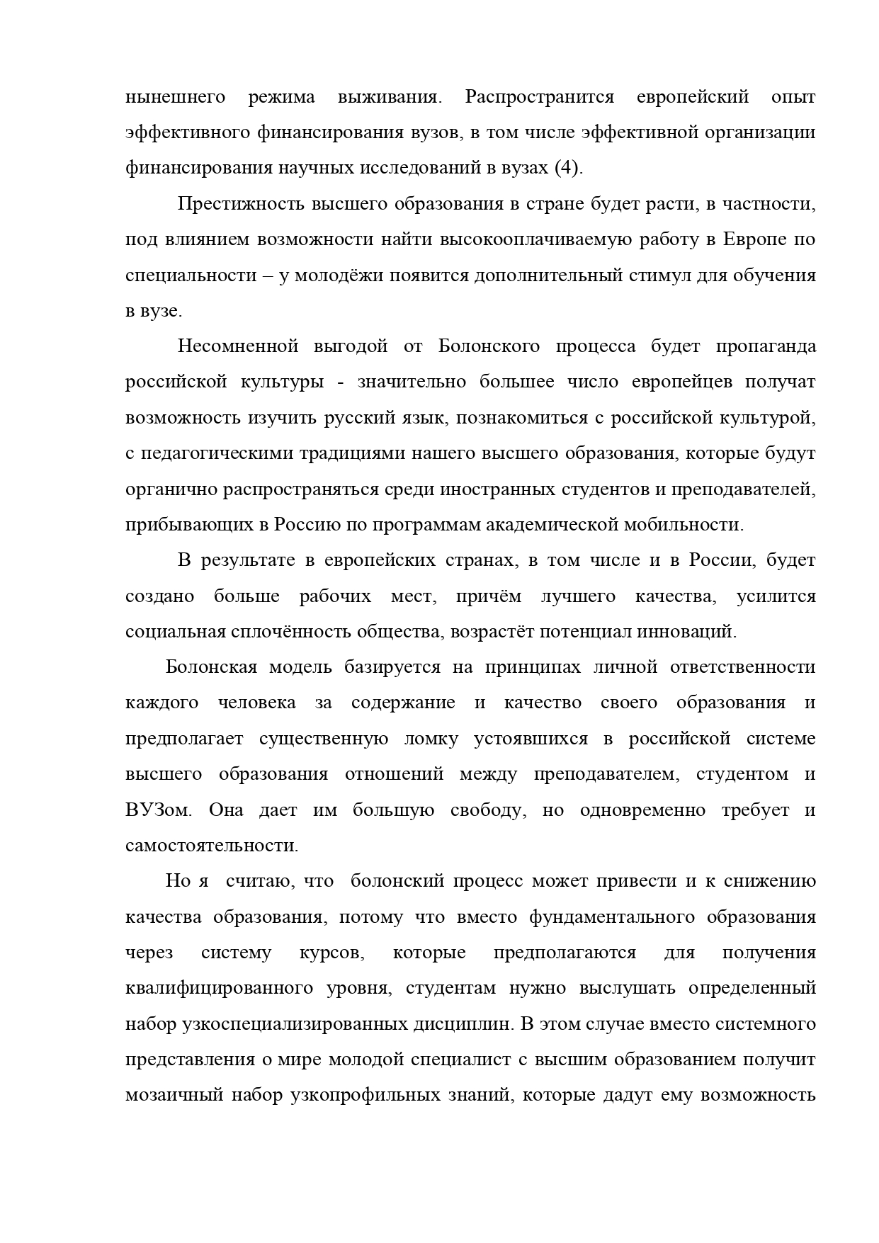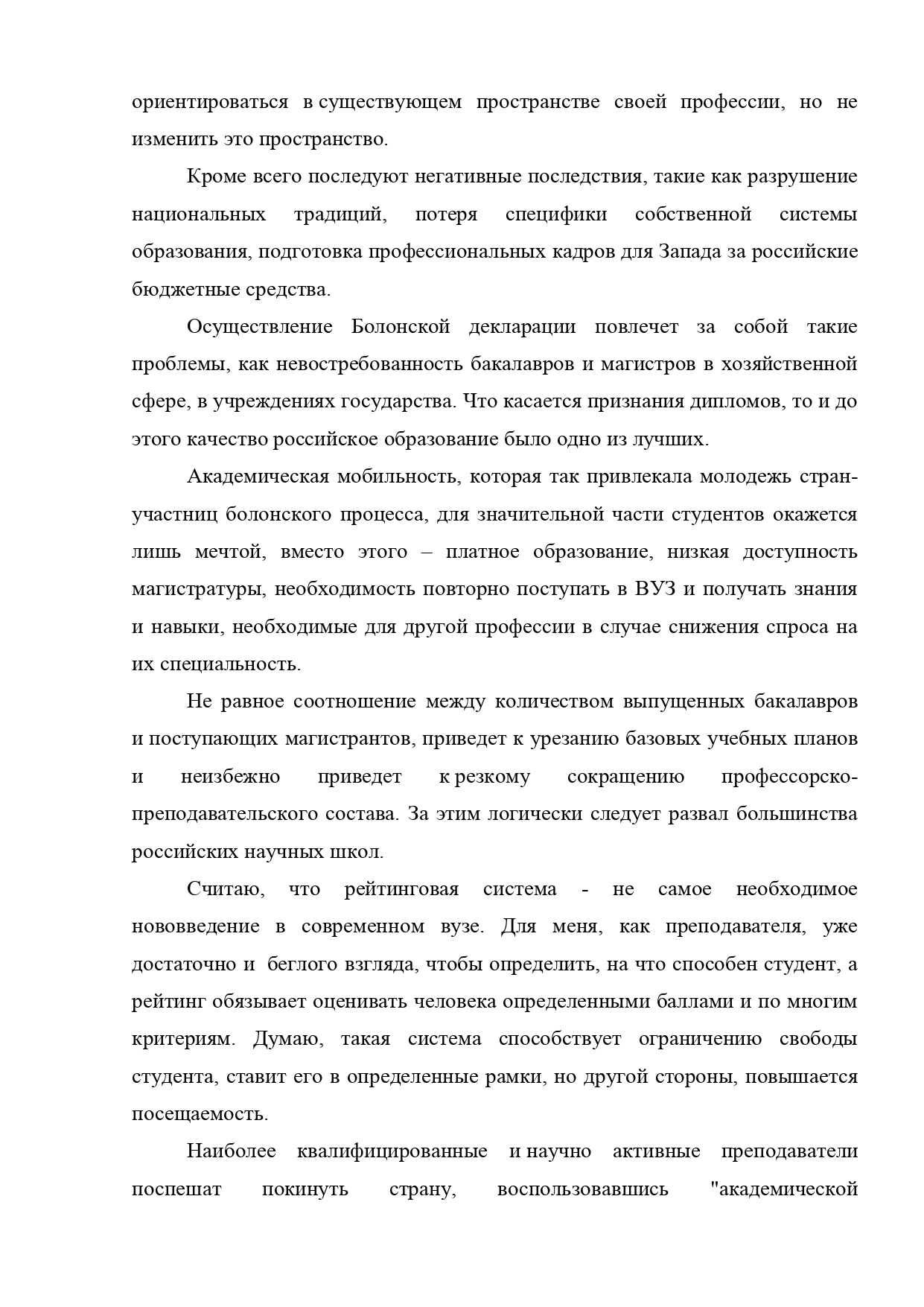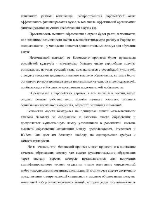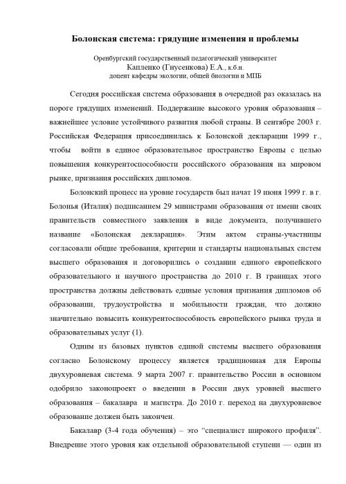 Сегодня российская система образования в очередной раз оказалась на пороге грядущих изменений. Поддержание высокого уровня образования – важнейшее условие устойчивого развития любой страны. В сентябре 2003 г. Российская Федерация присоединилась к Болонской декларации 1999 г., чтобы войти в единое образовательное пространство Европы с целью повышения конкурентоспособности российского образования на мировом рынке, признания российских дипломов.