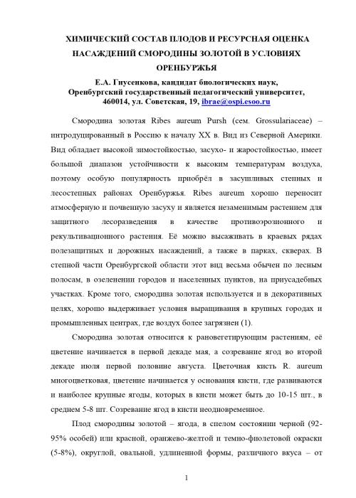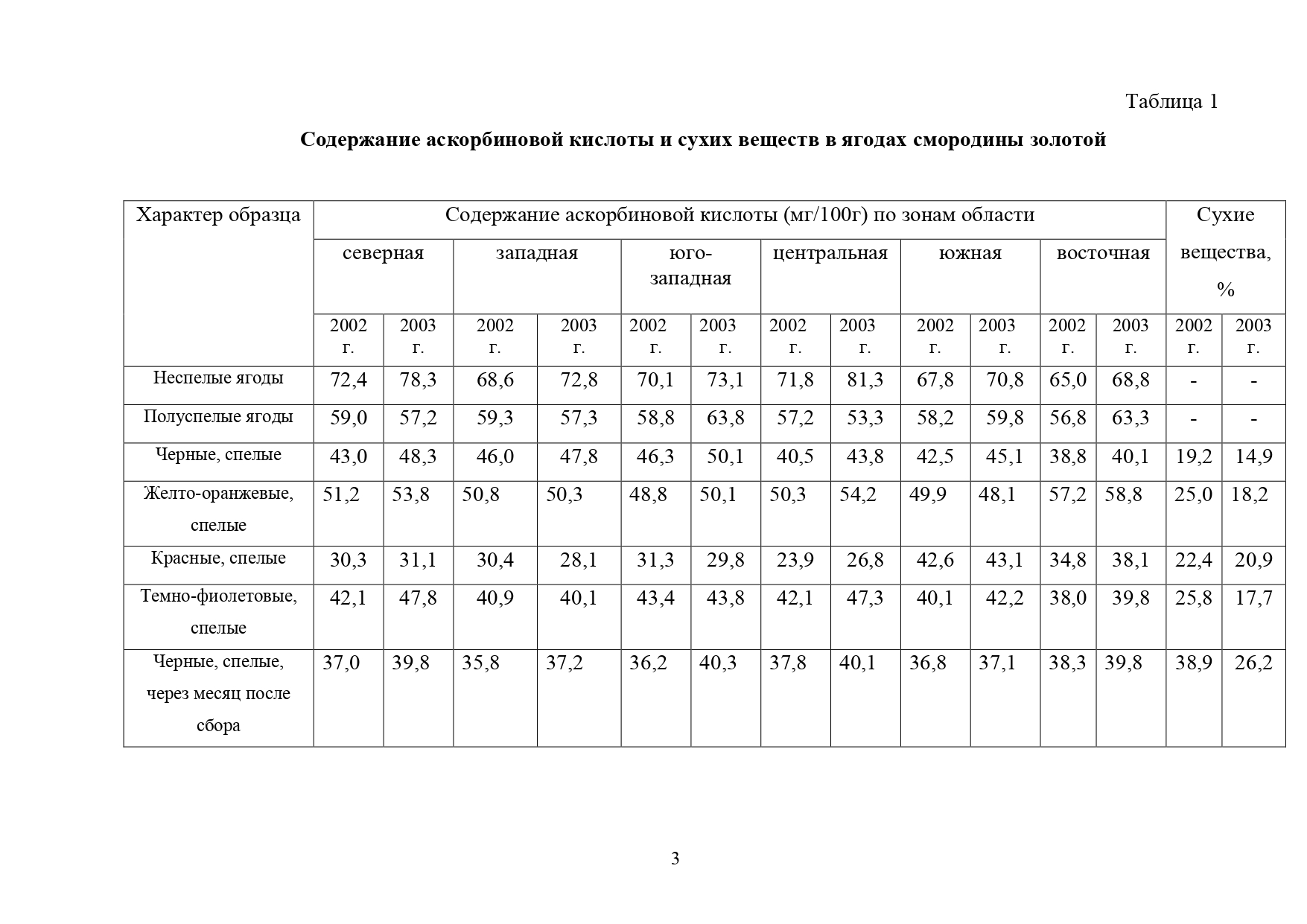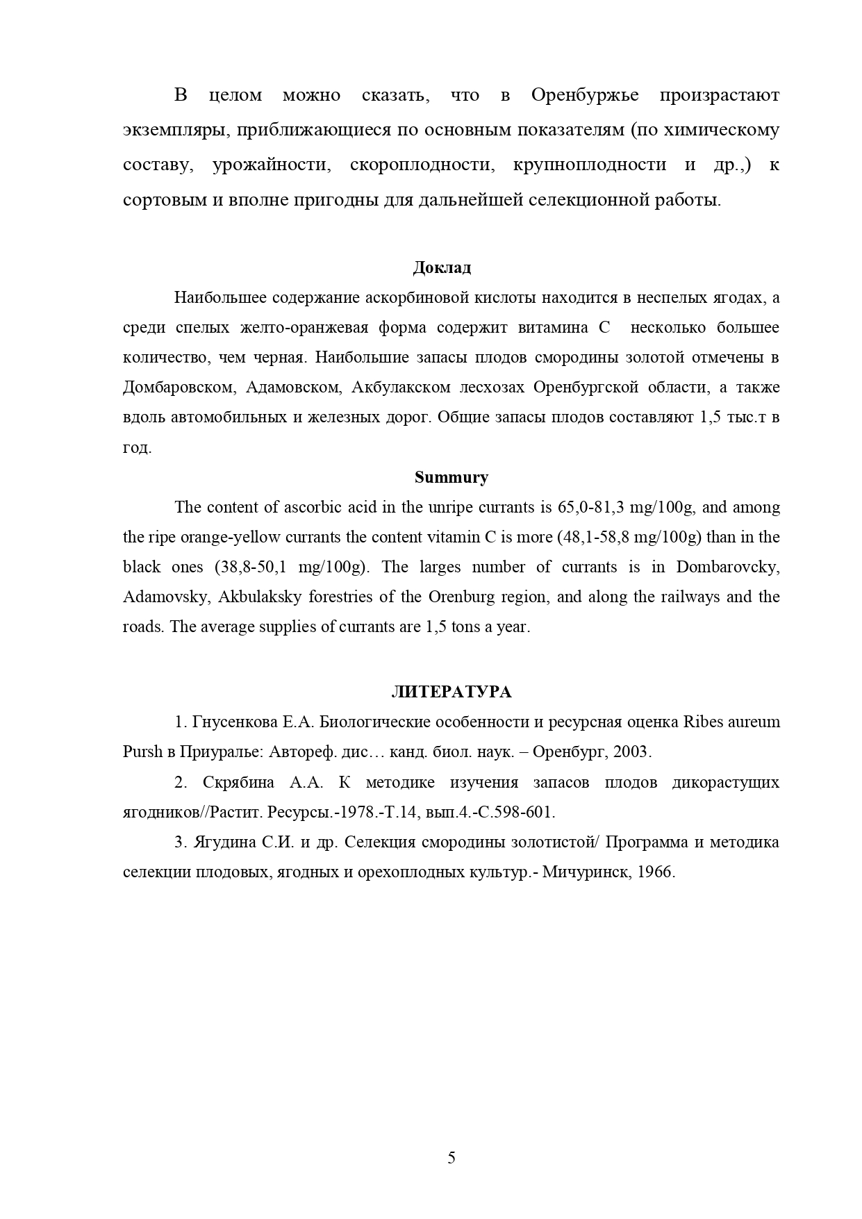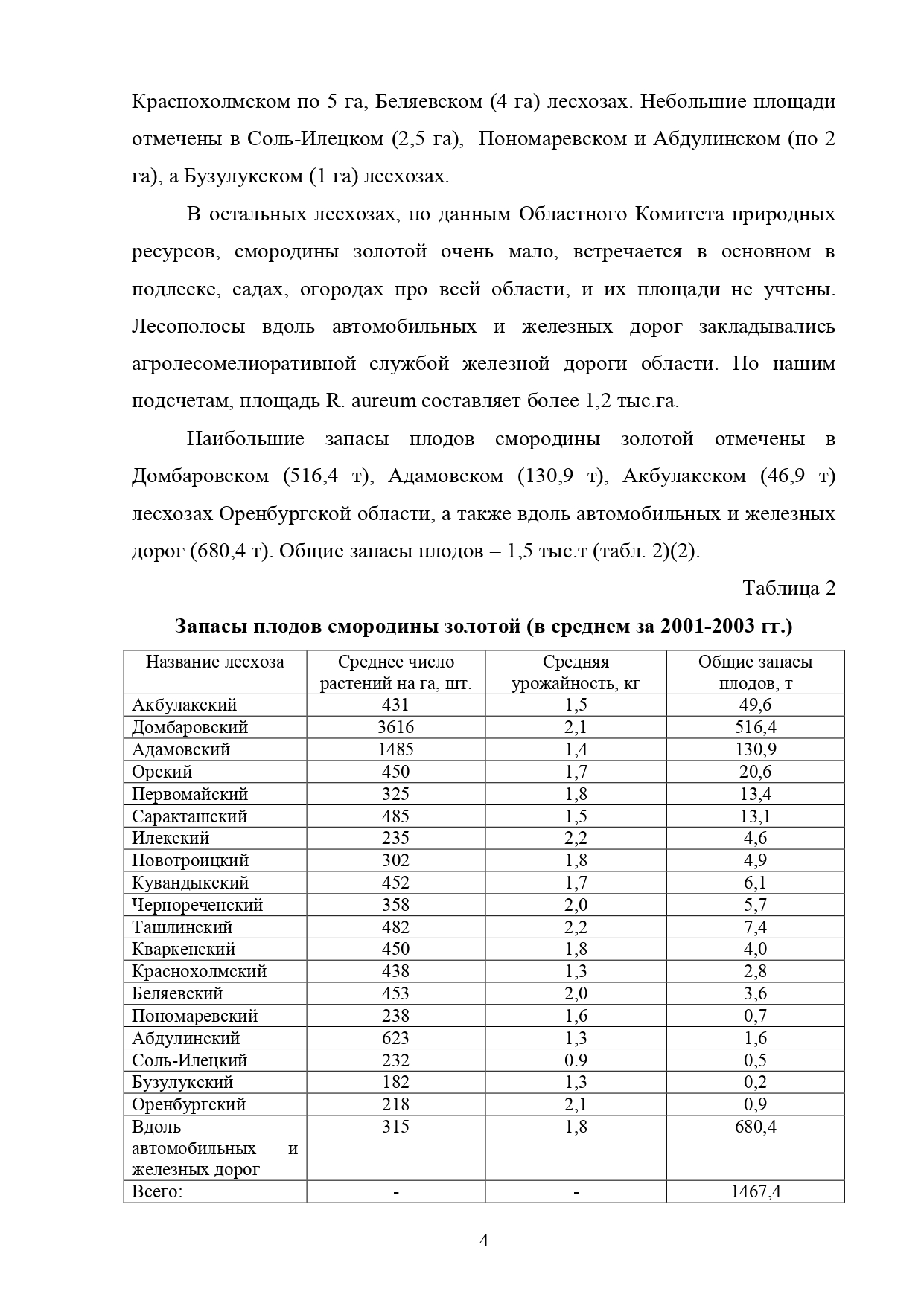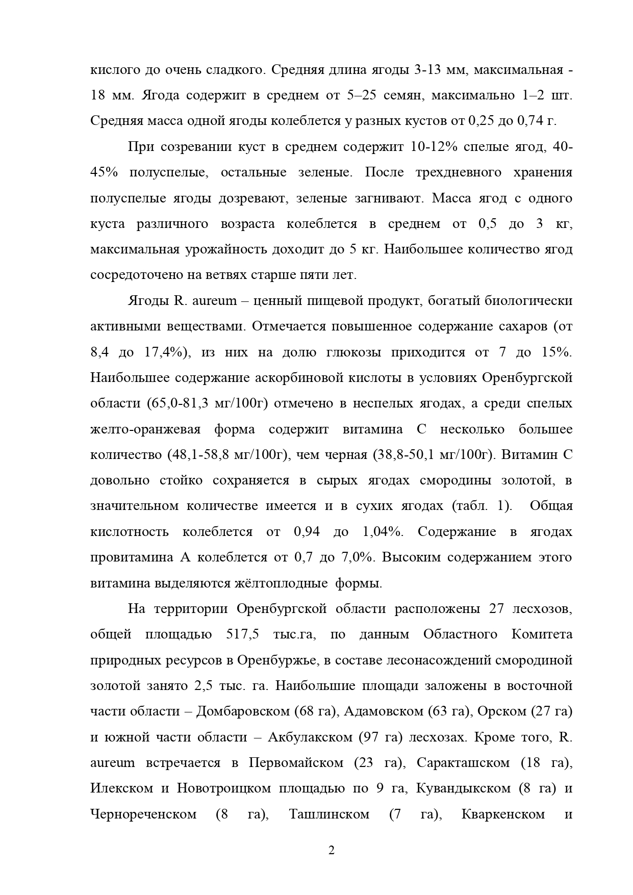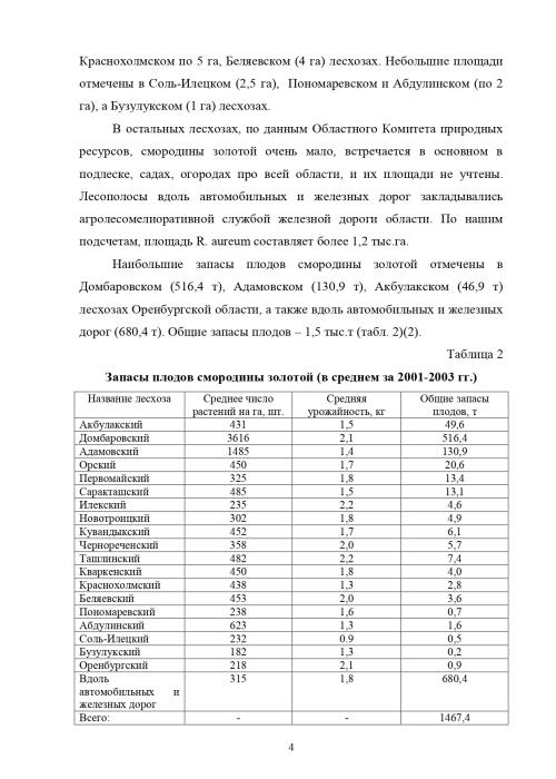 The content of ascorbic acid in the unripe currants is 65,0-81,3 mg/100g, and among the ripe orange-yellow currants the content vitamin C is more (48,1-58,8 mg/100g) than in the black ones (38,8-50,1 mg/100g). The larges number of currants is in Dombarovcky, Adamovsky, Akbulaksky forestries of the Orenburg region, and along the railways and the roads. The average supplies of currants are 1,5 tons a year.