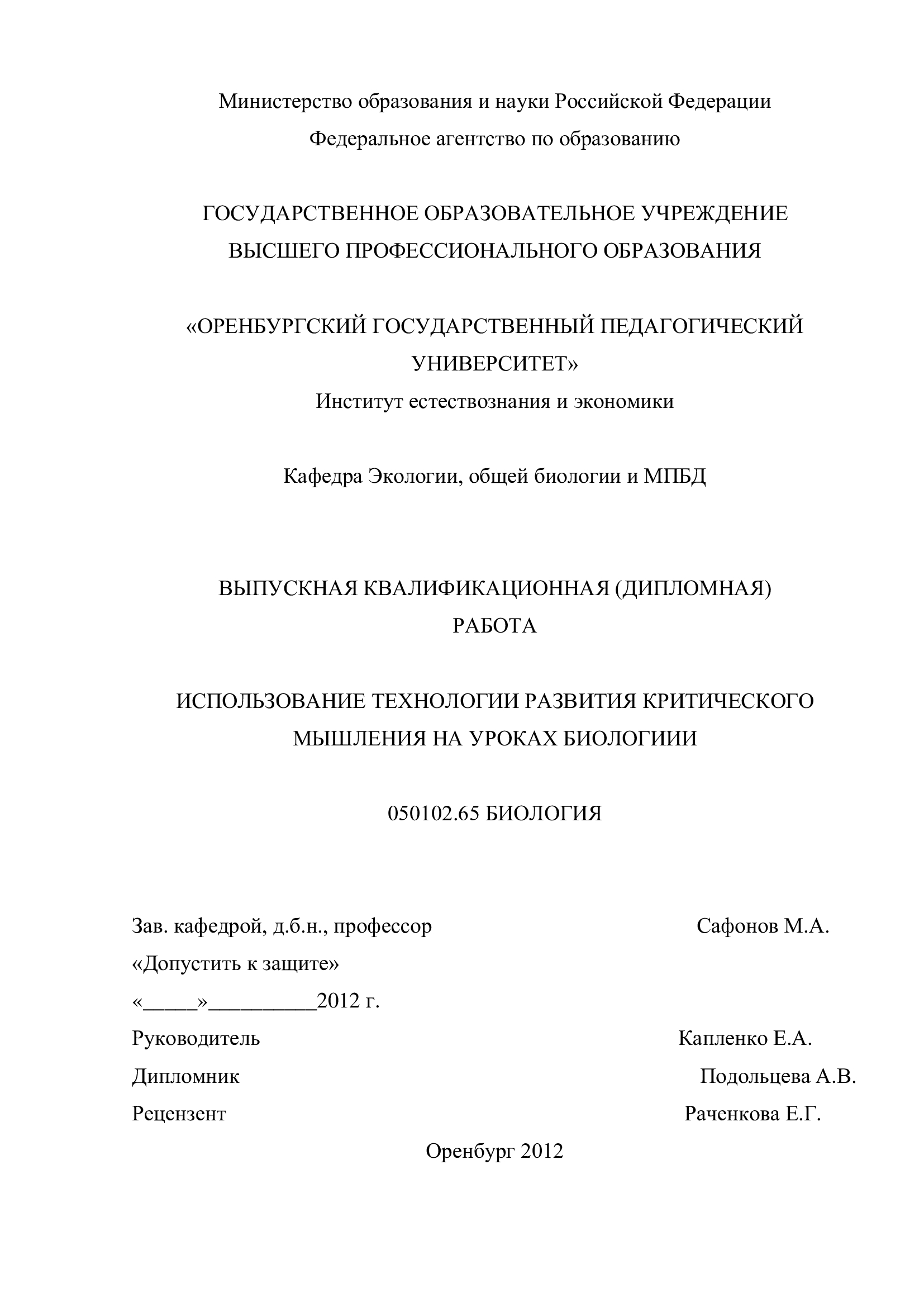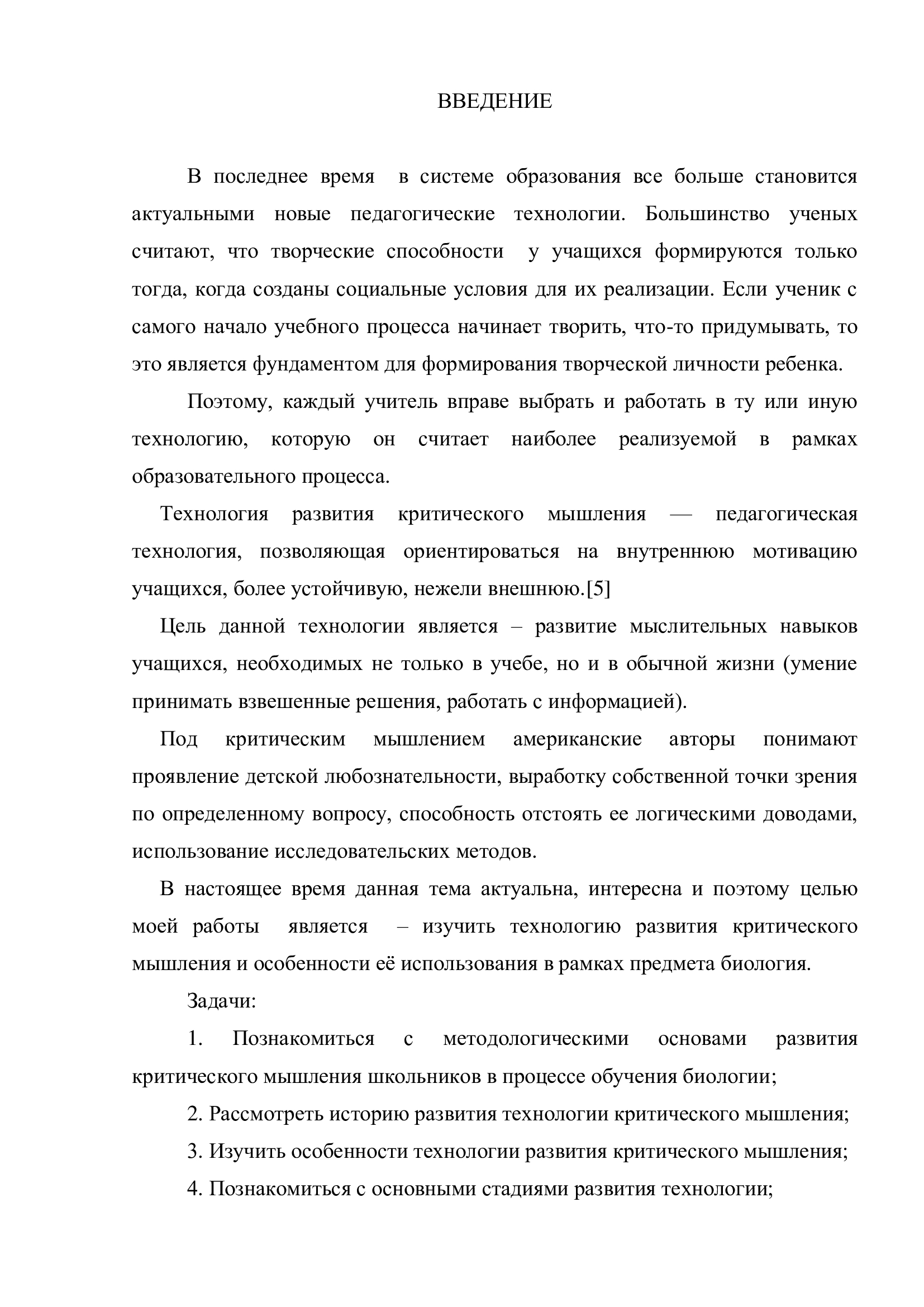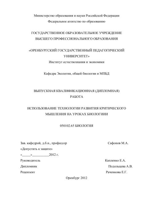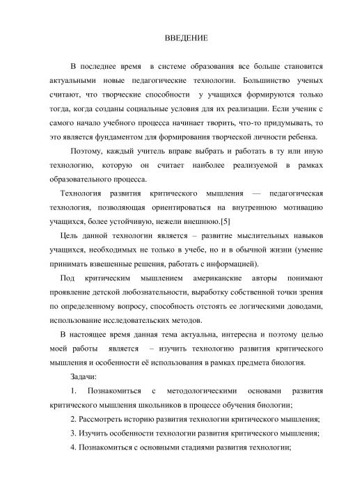 ВКР на тему "ИСПОЛЬЗОВАНИЕ ТЕХНОЛОГИИ РАЗВИТИЯ КРИТИЧЕСКОГО МЫШЛЕНИЯ НА УРОКАХ БИОЛОГИИИ"