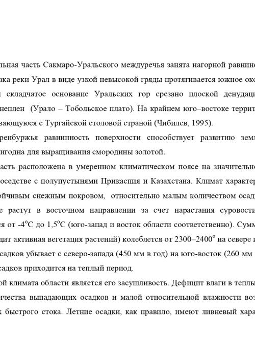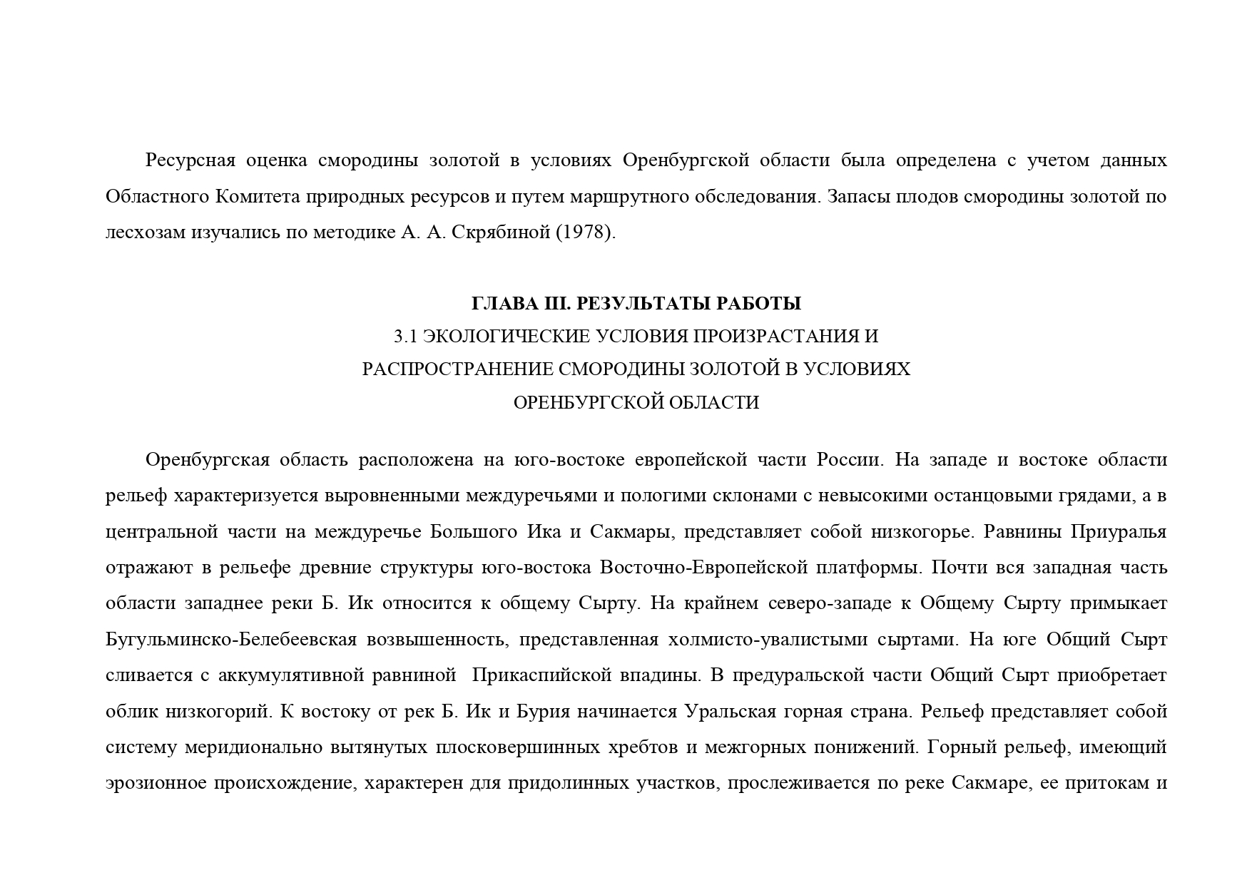 Задачами исследования являлось следующее: уточнить ареал R. aureum в оренбургском районе с экологической характеристикой условий произрастания; изучить содержание аскорбиновой кислоты в плодах смородины золотой; дать ресурсную оценку R. aureum на территории Оренбургской области.