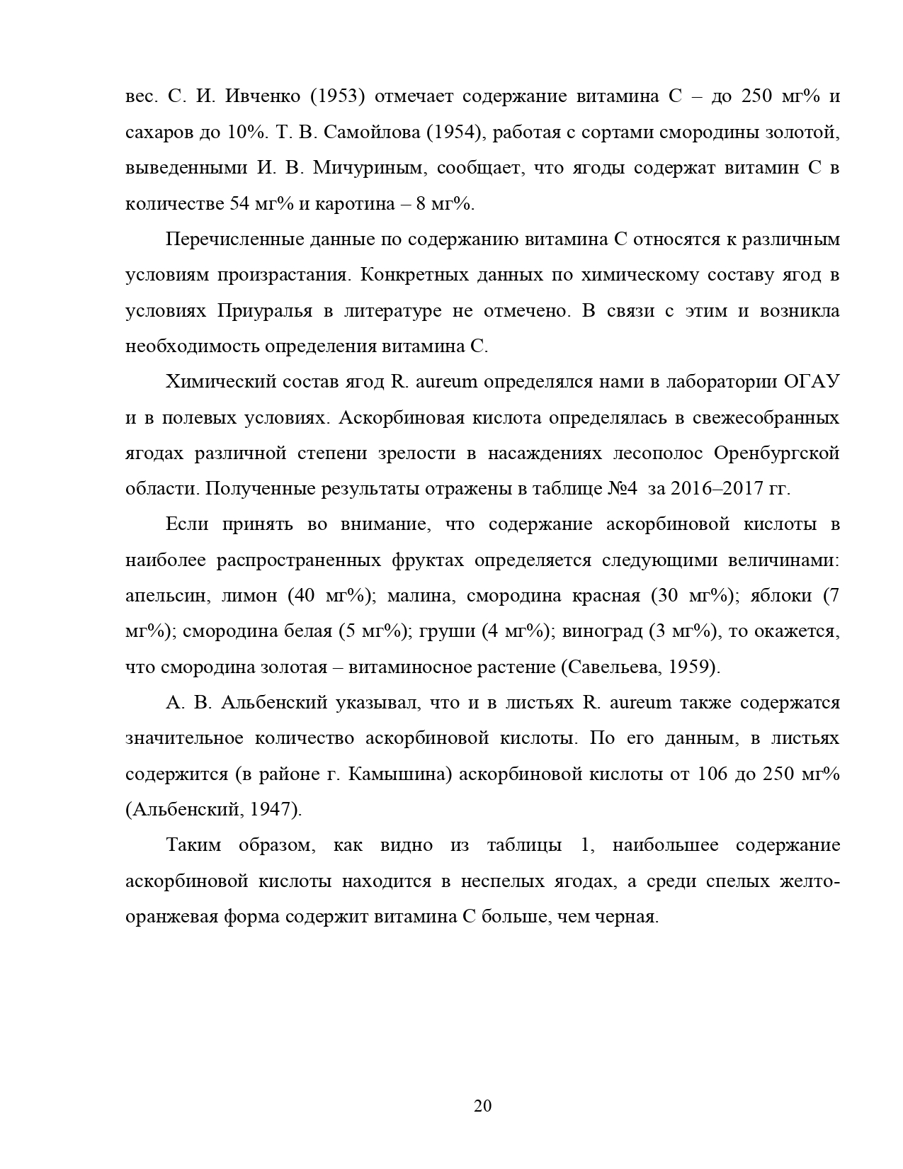 Целью исследования является определение содержания аскорбиновой кислоты в плодах смородины золотой и дать ресурсную оценку R. aureum на территории Оренбургской области.