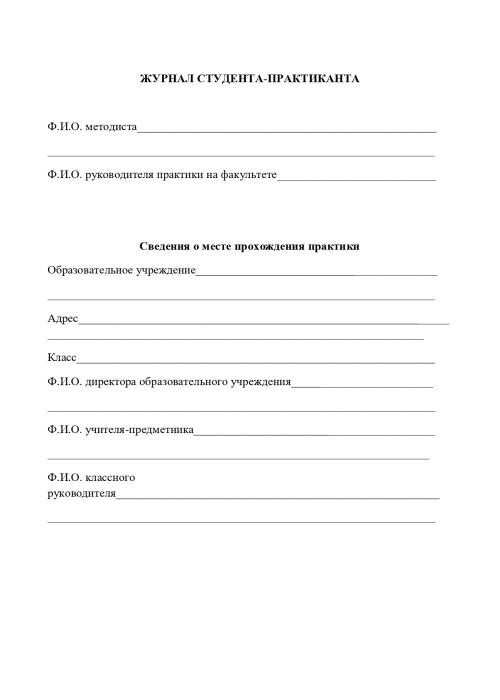 Образец дневника по педагогической практике для студентов биологических специальностей.