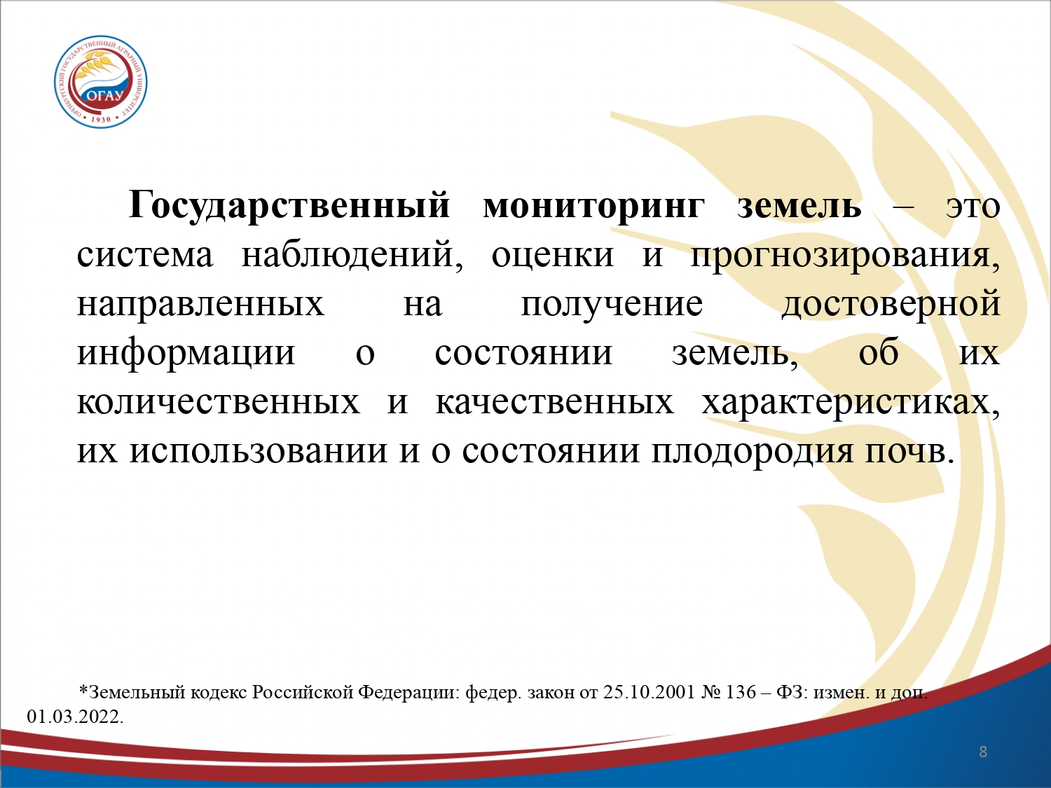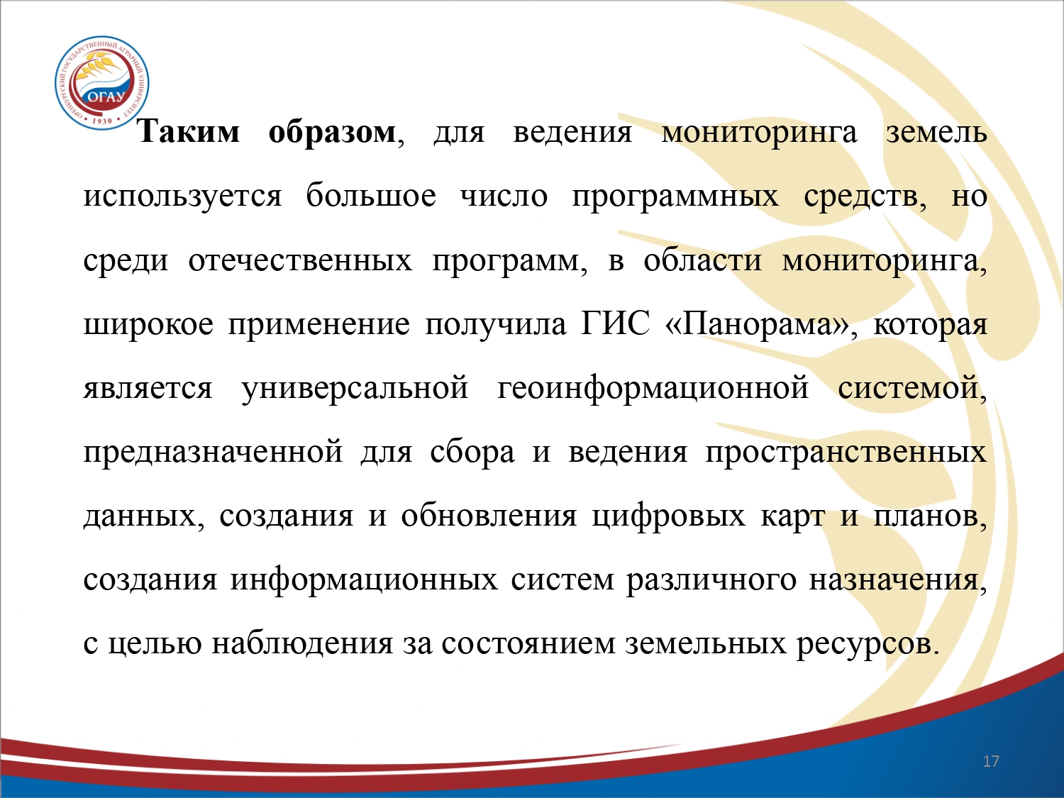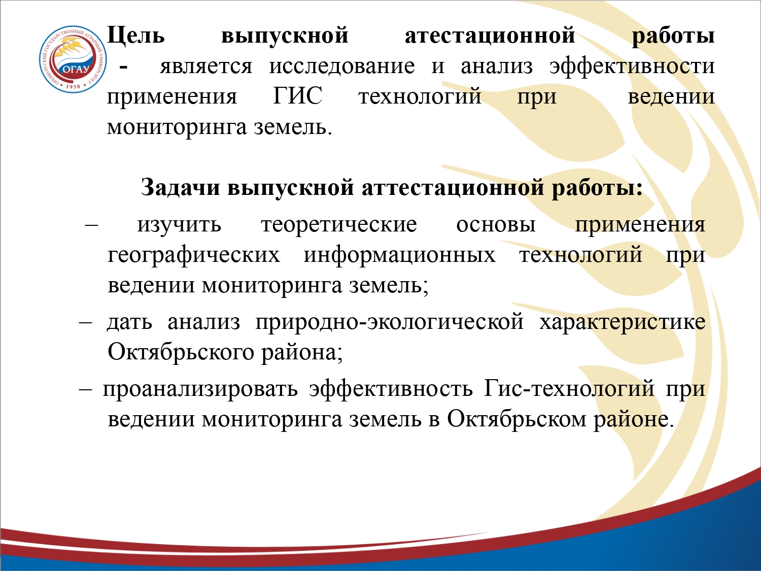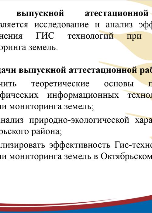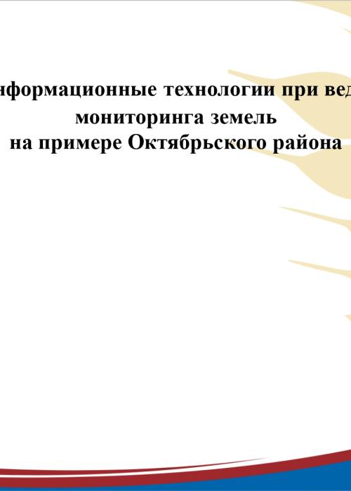 Презентация на тему "Геоинформационные технологии при ведении мониторинга земель на примере Октябрьского района"