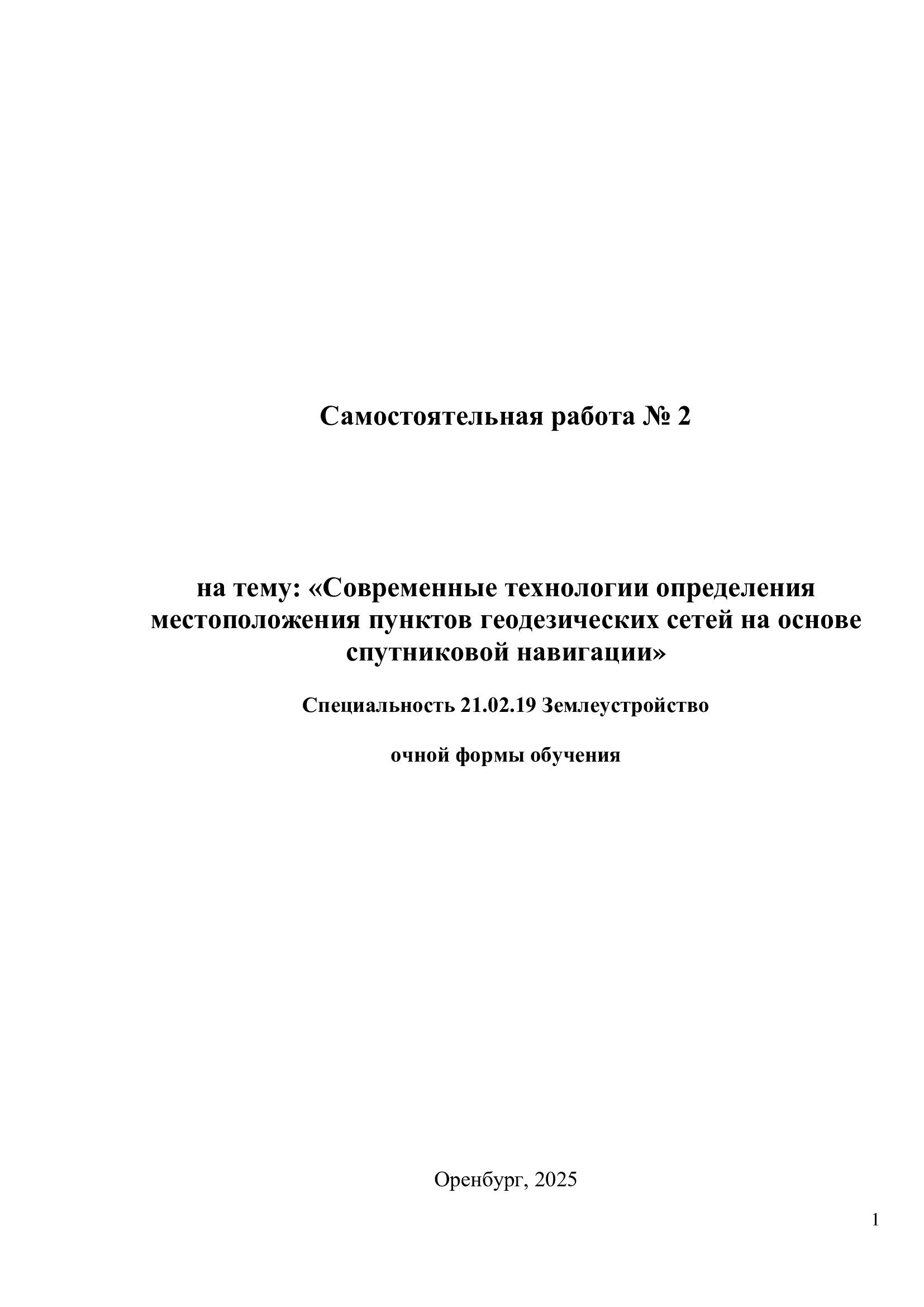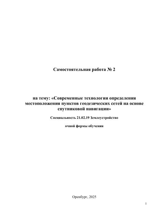 Самостоятельная работа «Современные технологии определения местоположения пунктов геодезических сетей на основе спутниковой навигации»