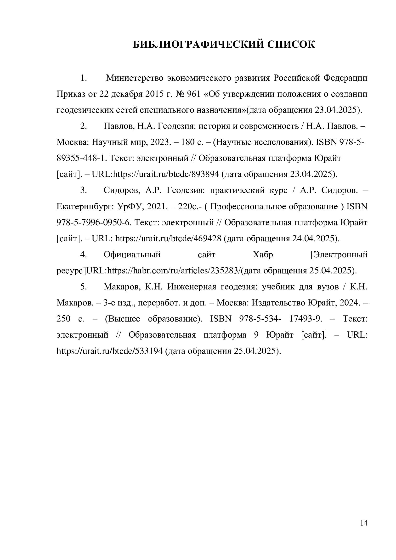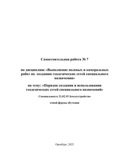 С/р № 7 по ПМ 01 на тему: «Порядок создания и использования геодезических сетей специального назначений»