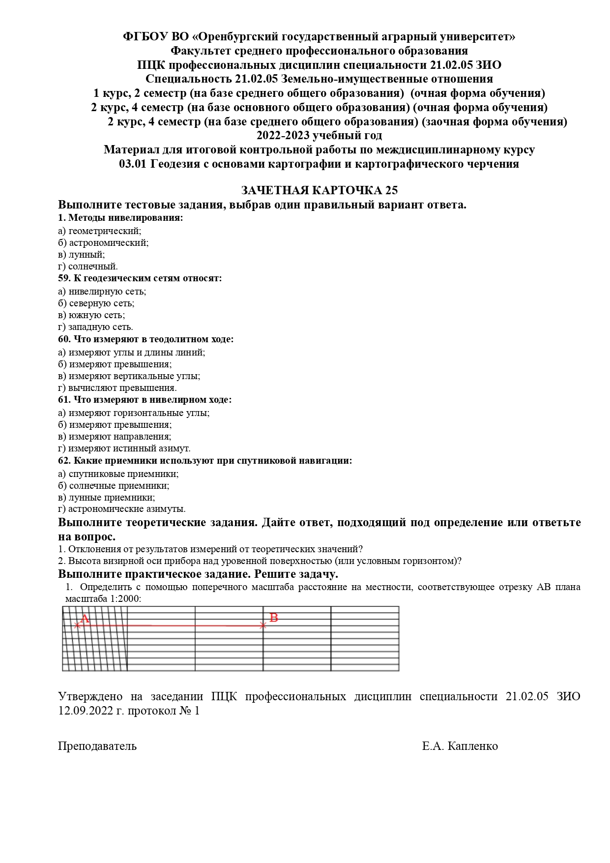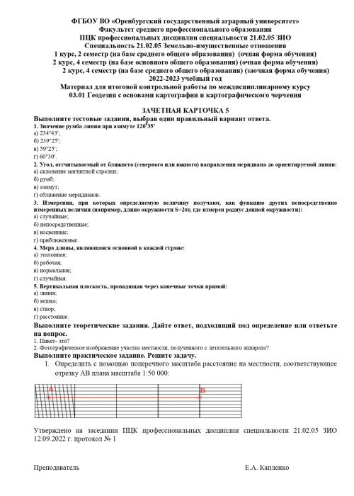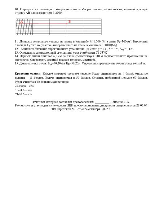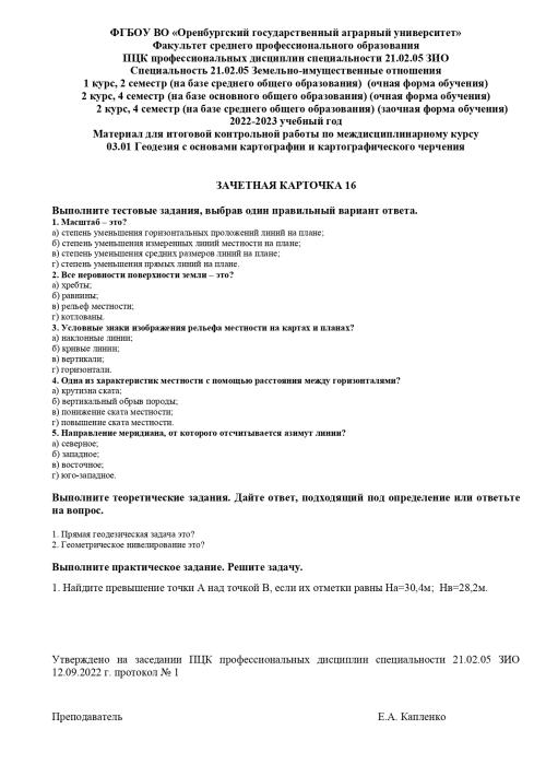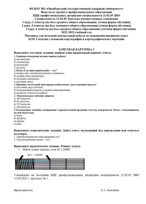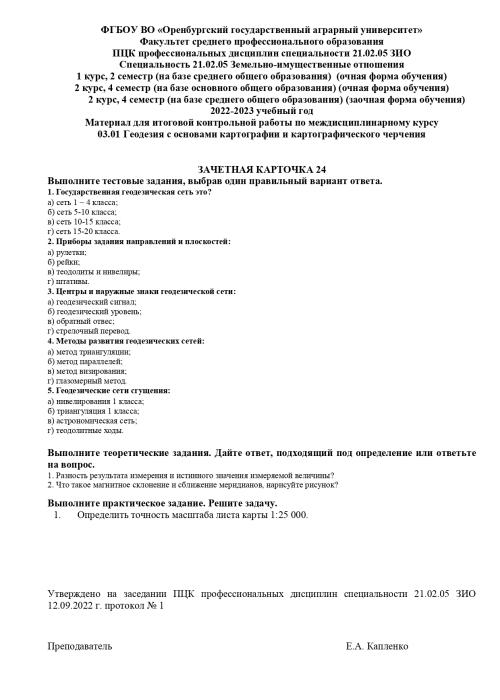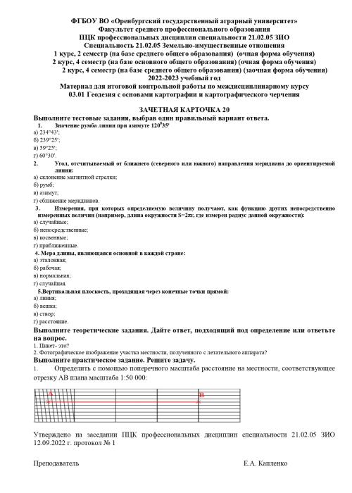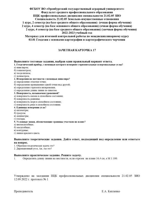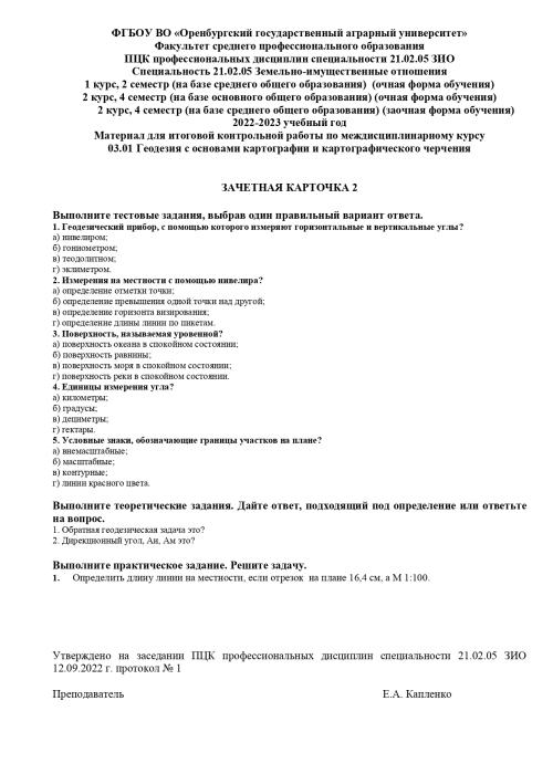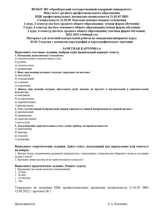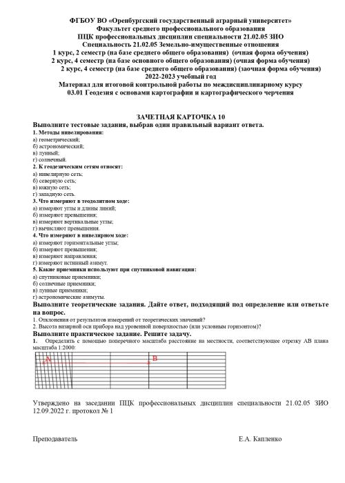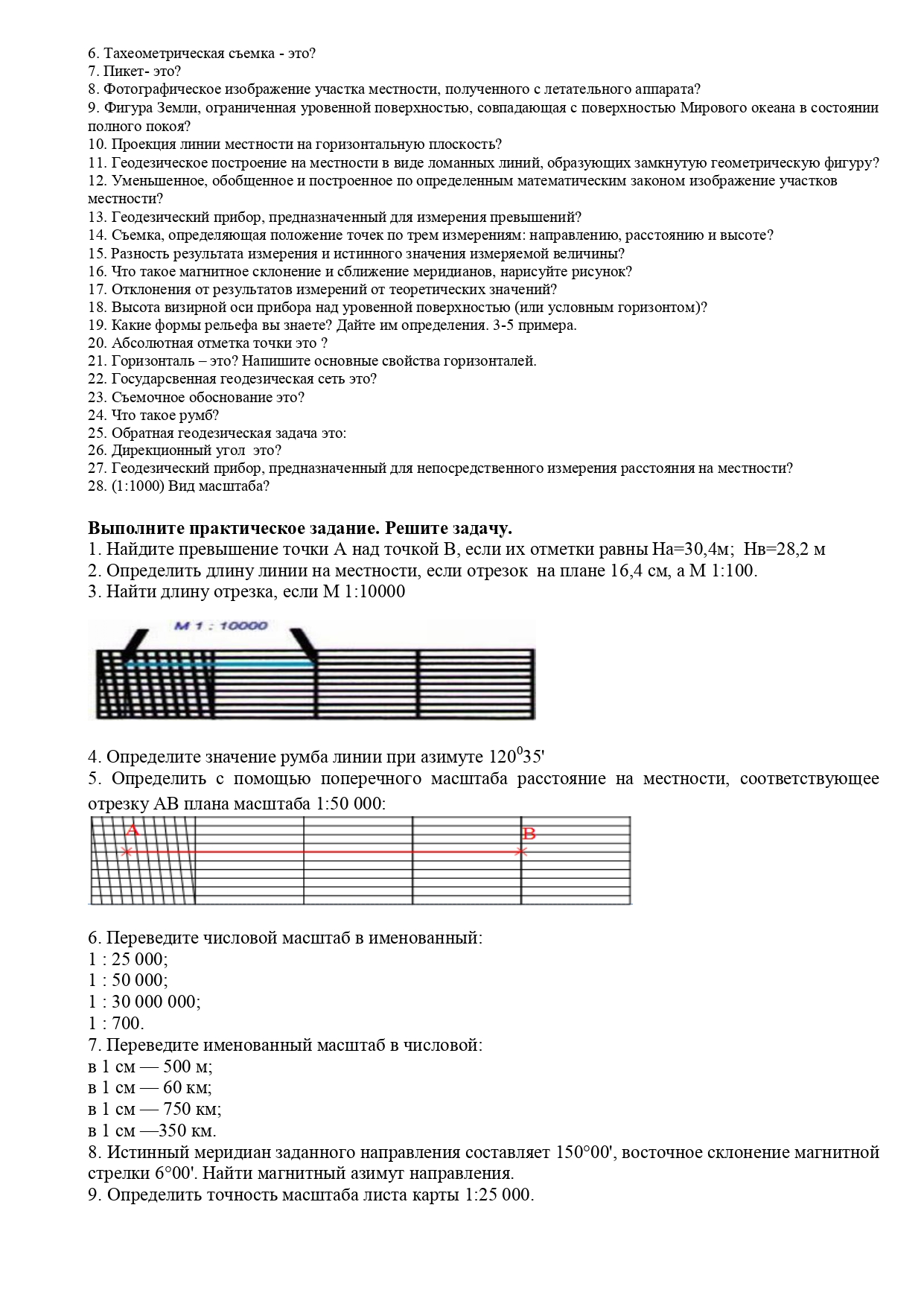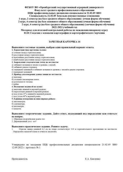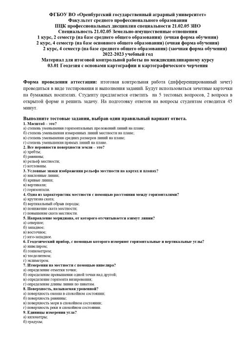 Материал для итоговой контрольной работы ПМ 03 Геодезия с основами картографии и картографического черчения, 2022-2023 учебный год