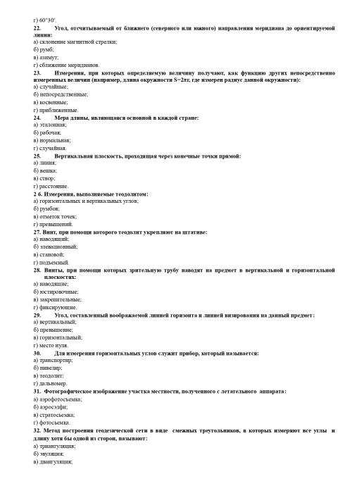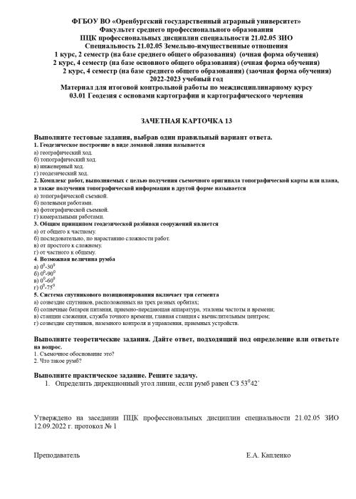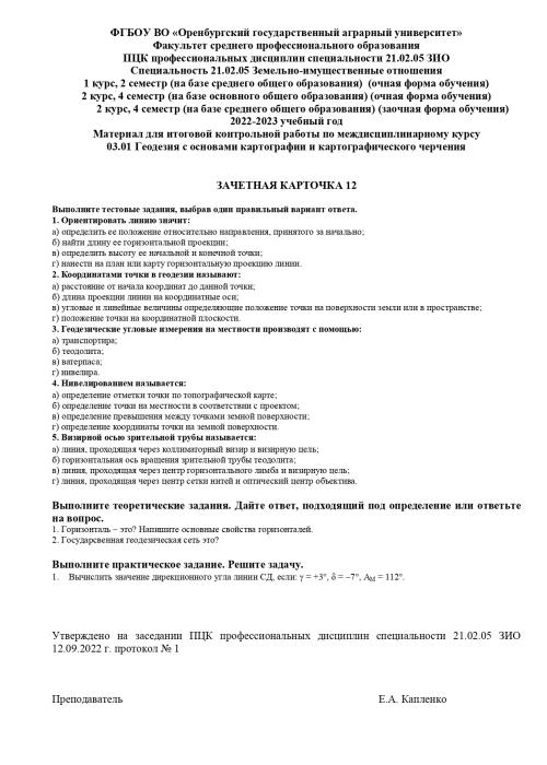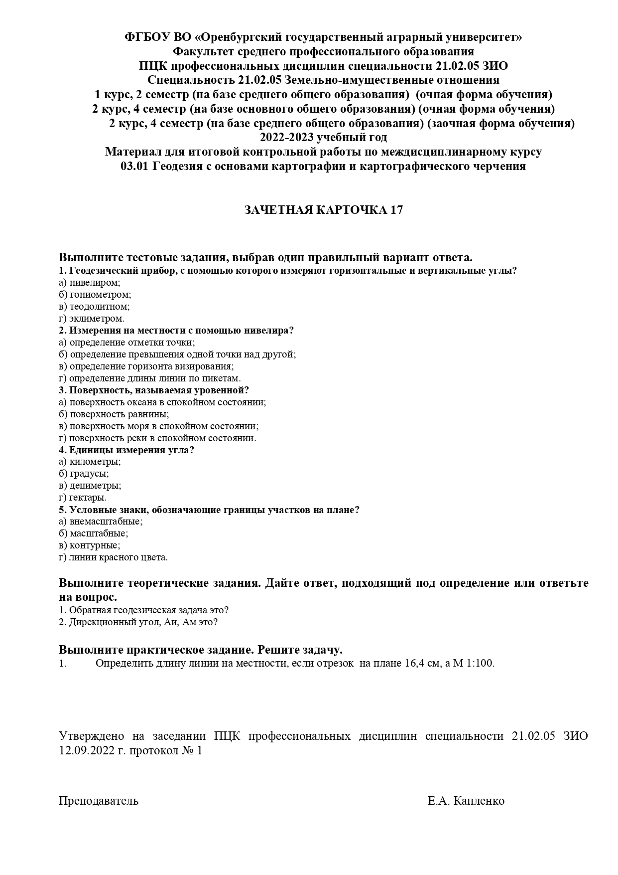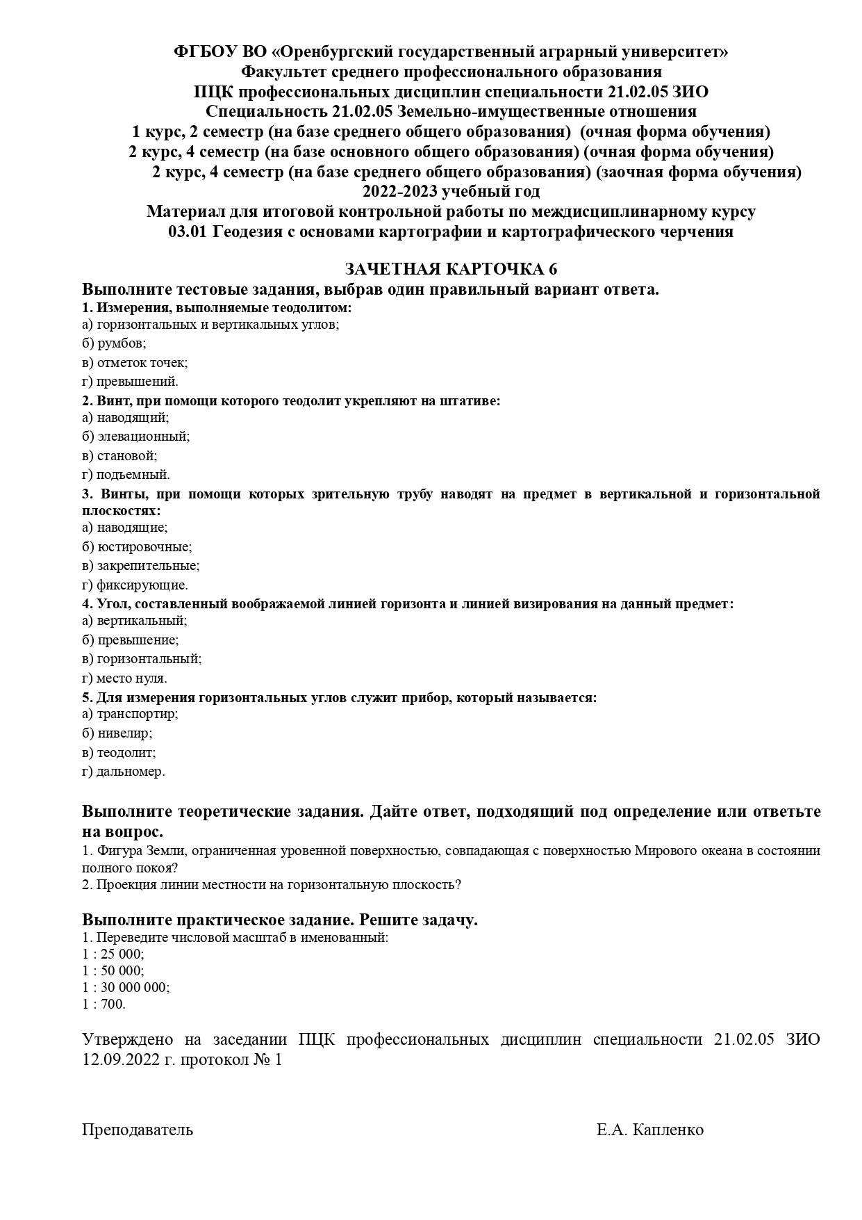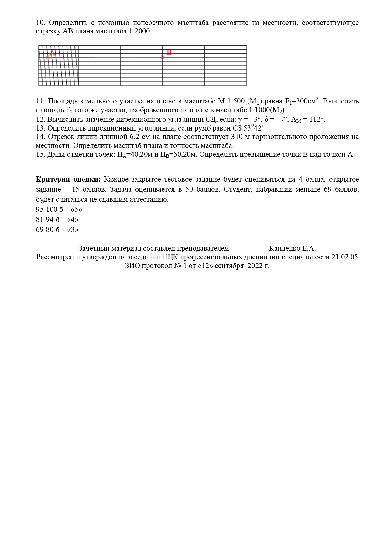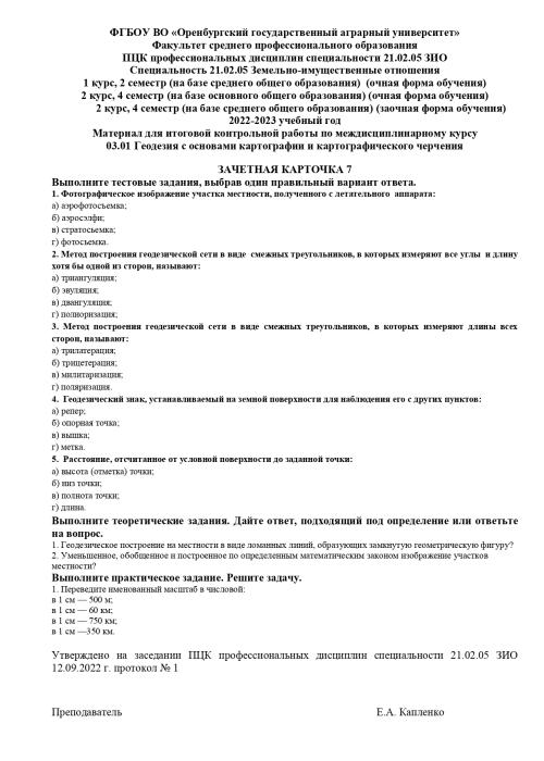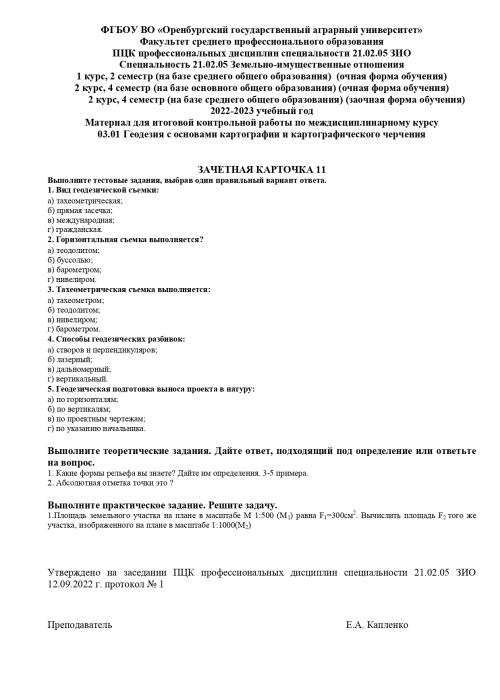 Материал для итоговой контрольной работы ПМ 03 Геодезия с основами картографии и картографического черчения, 2022-2023 учебный год