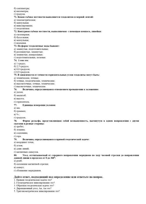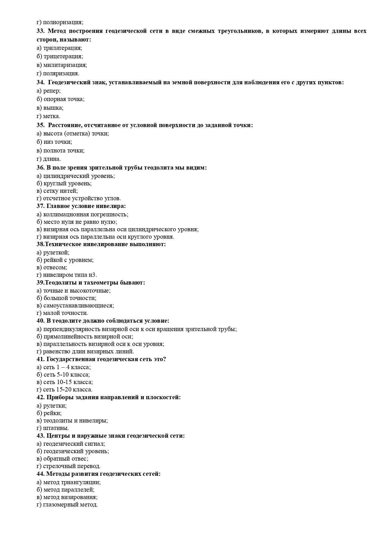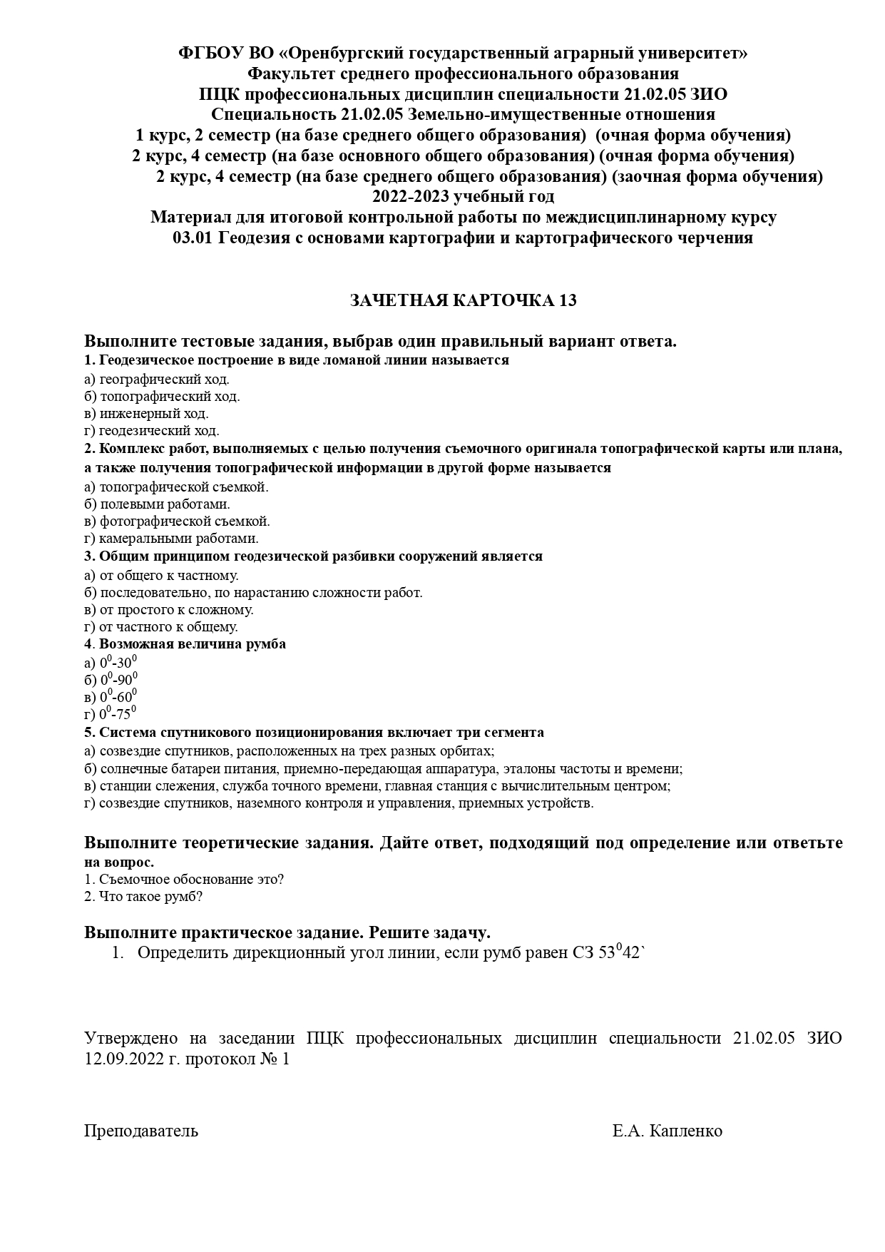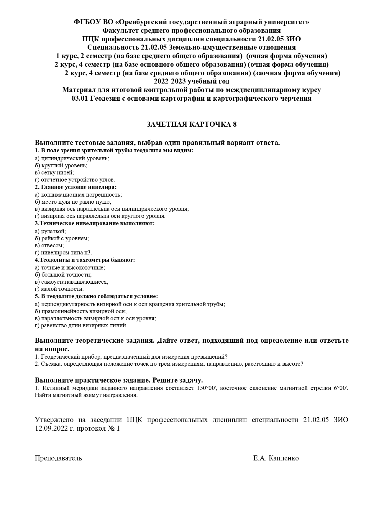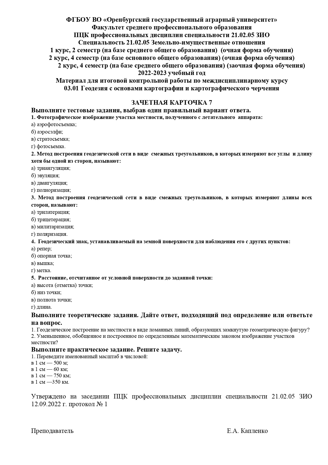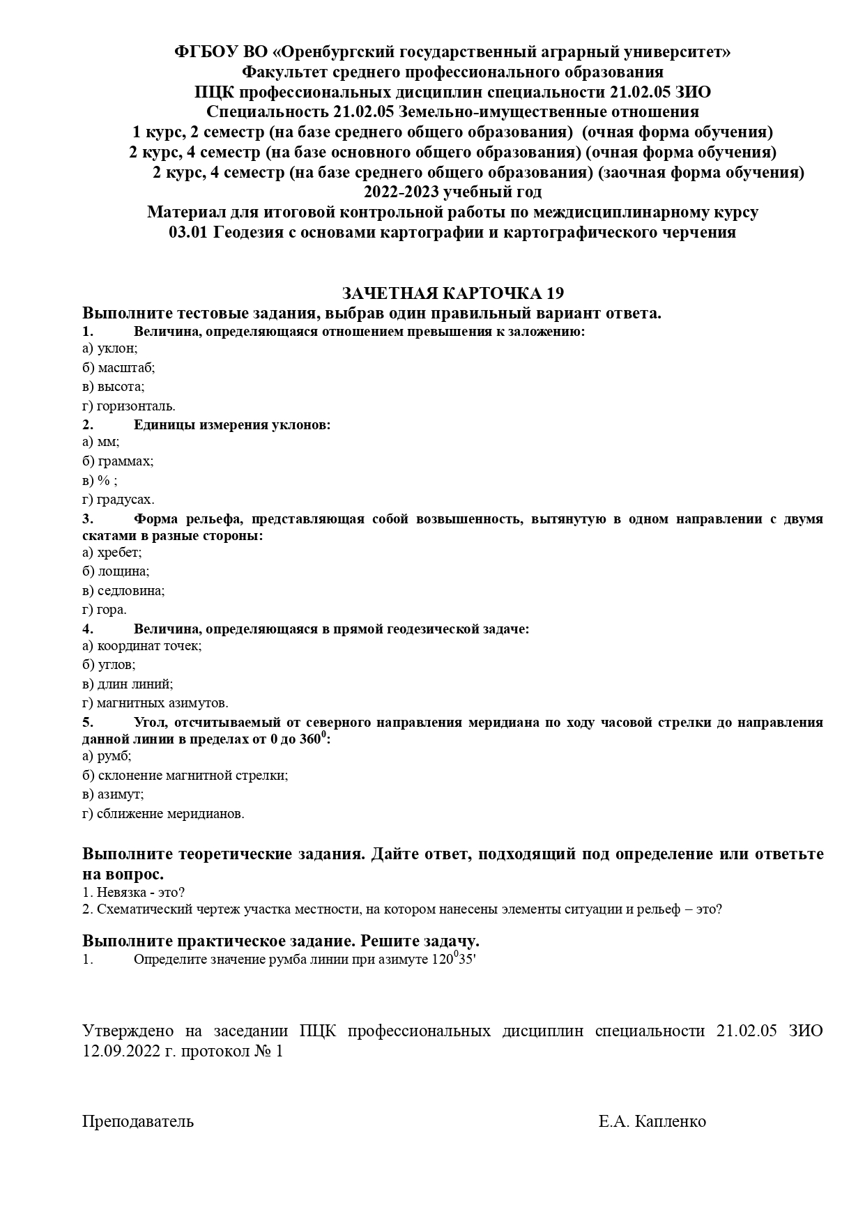 Материал для итоговой контрольной работы ПМ 03 Геодезия с основами картографии и картографического черчения, 2022-2023 учебный год