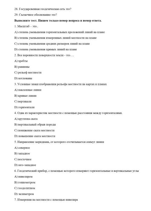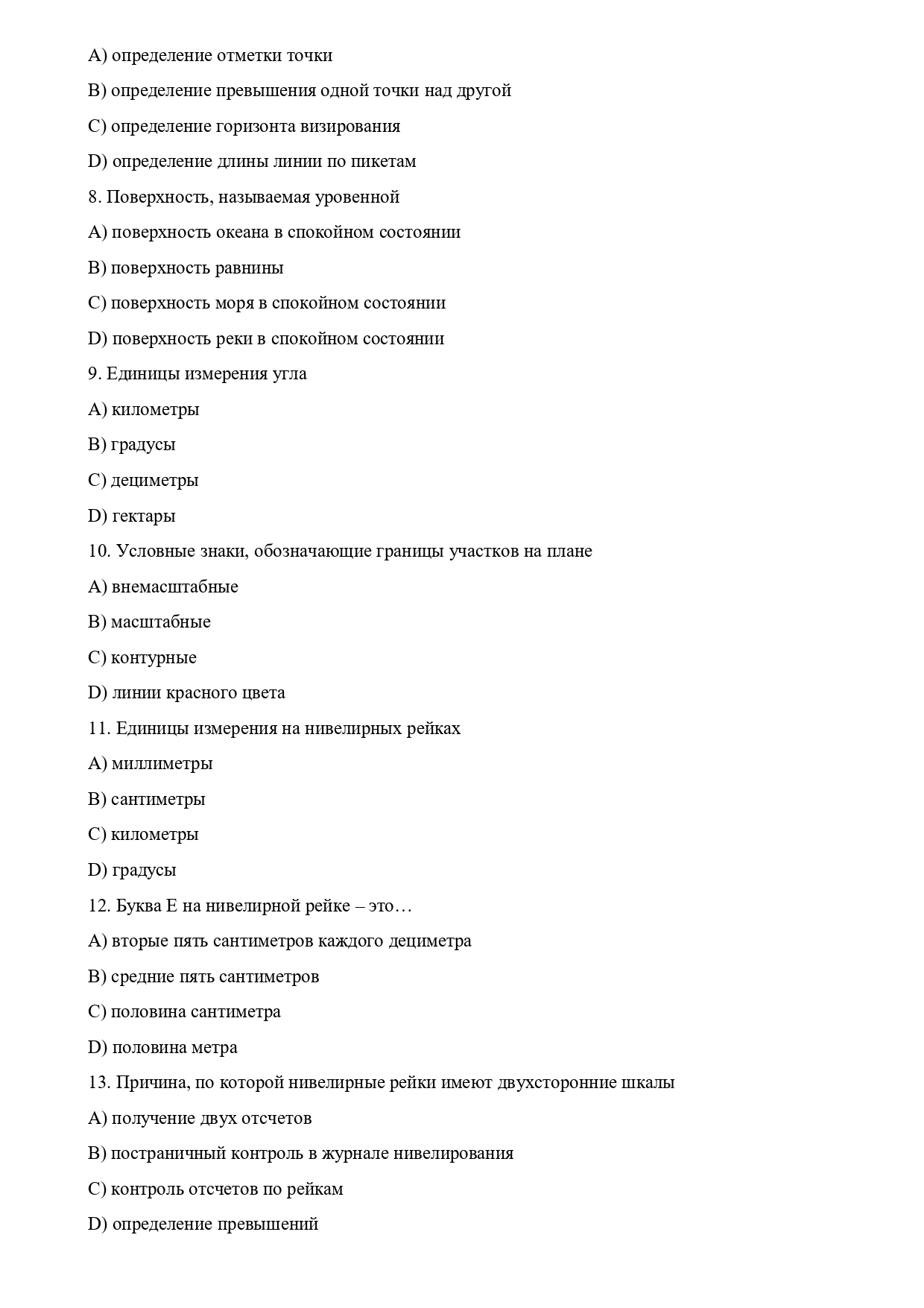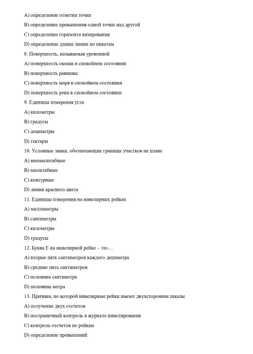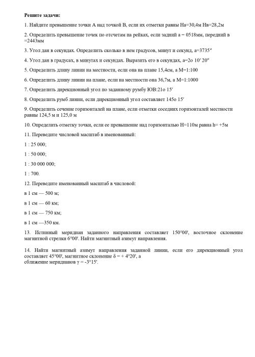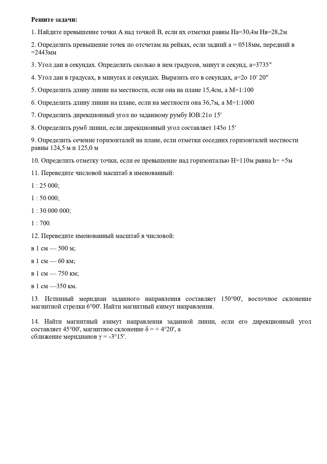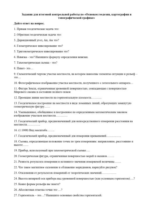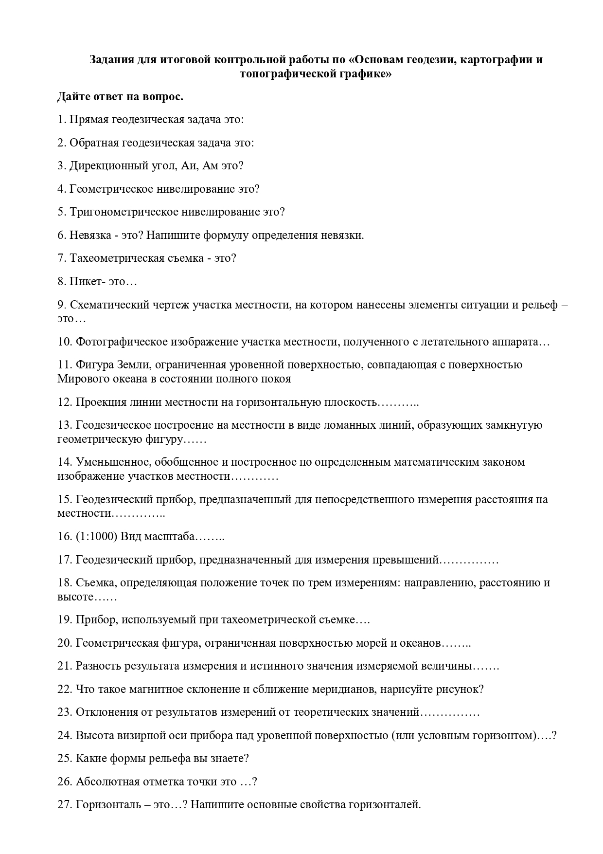 Задания для итоговой контрольной работы по «Основам геодезии, картографии и топографической графике»