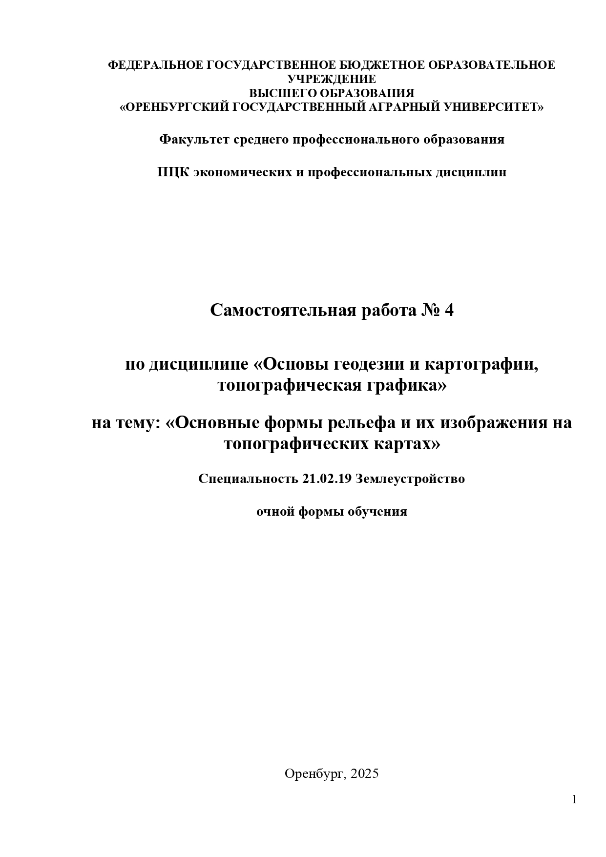 С/р № 4 по дисциплине «Основы геодезии и картографии, топографическая графика» на тему: «Основные формы рельефа и их изображения на топографических картах»