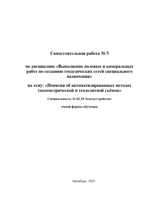 С/р № 5 по ПМ 01 на тему: «Понятия об автоматизированных методах тахеометрической и теодолитной съёмок»