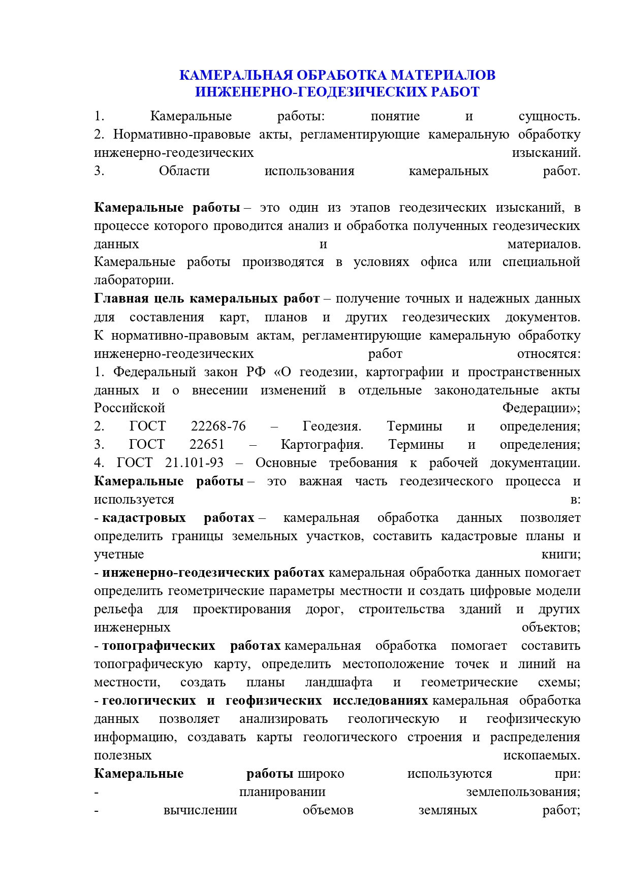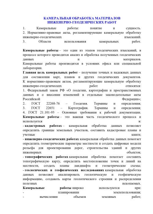 Лекция "КАМЕРАЛЬНАЯ ОБРАБОТКА МАТЕРИАЛОВ ИНЖЕНЕРНО-ГЕОДЕЗИЧЕСКИХ РАБОТ"