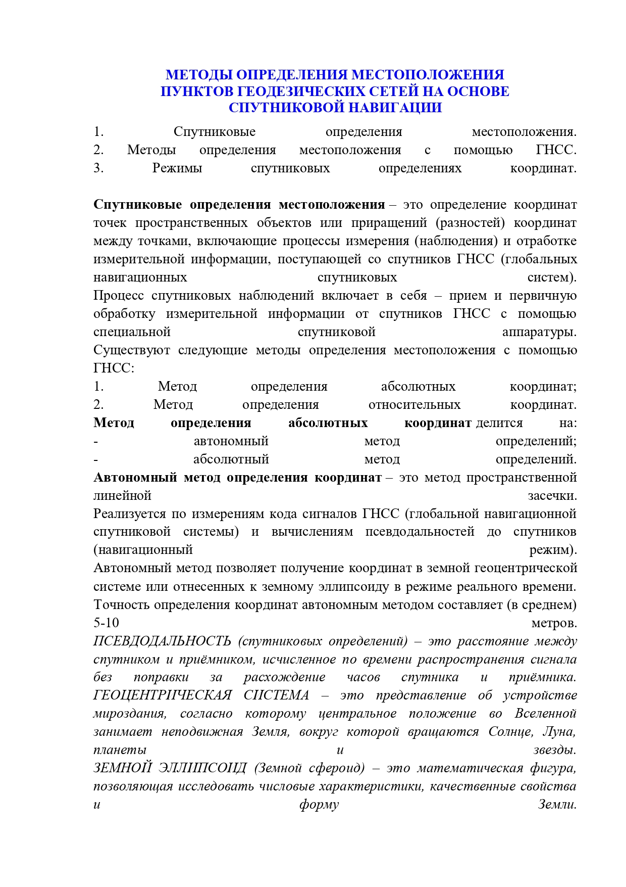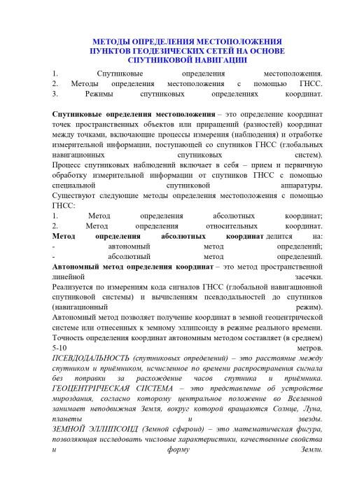 Лекция "МЕТОДЫ ОПРЕДЕЛЕНИЯ МЕСТОПОЛОЖЕНИЯ ПУНКТОВ ГЕОДЕЗИЧЕСКИХ СЕТЕЙ НА ОСНОВЕ СПУТНИКОВОЙ НАВИГАЦИИ"