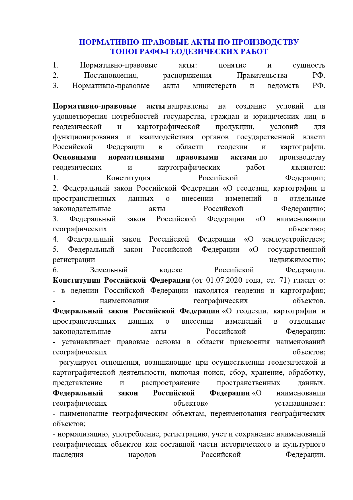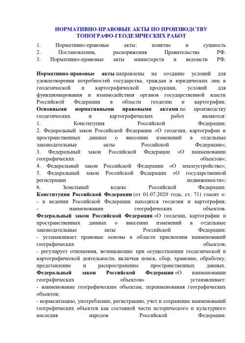 Лекция "НОРМАТИВНО-ПРАВОВЫЕ АКТЫ ПО ПРОИЗВОДСТВУ ТОПОГРАФО-ГЕОДЕЗИЧЕСКИХ РАБОТ"