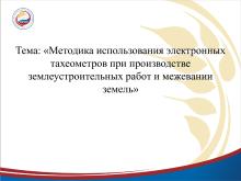 «Методика использования электронных тахеометров при производстве землеустроительных работ и межевании земель»