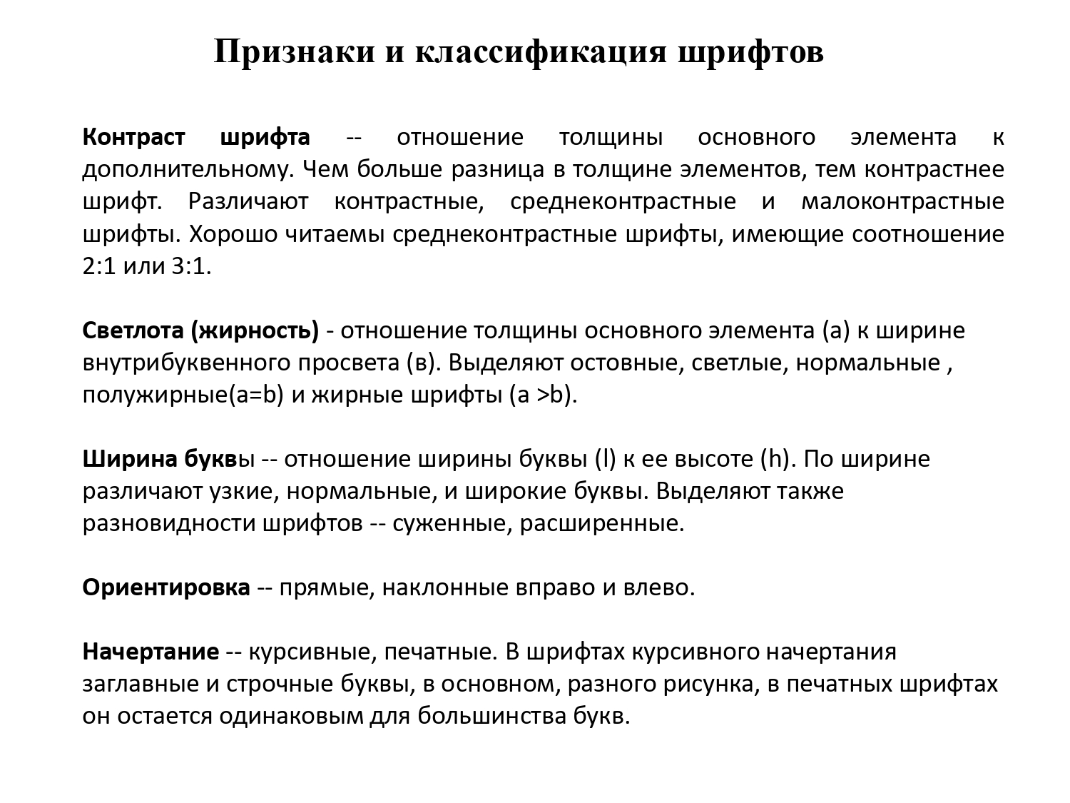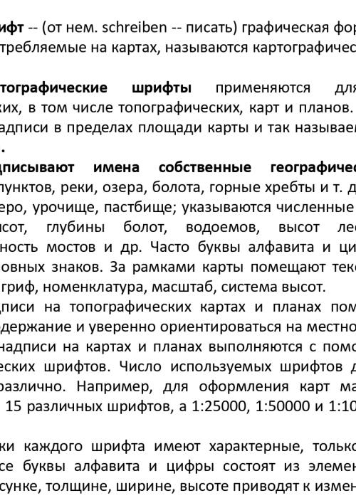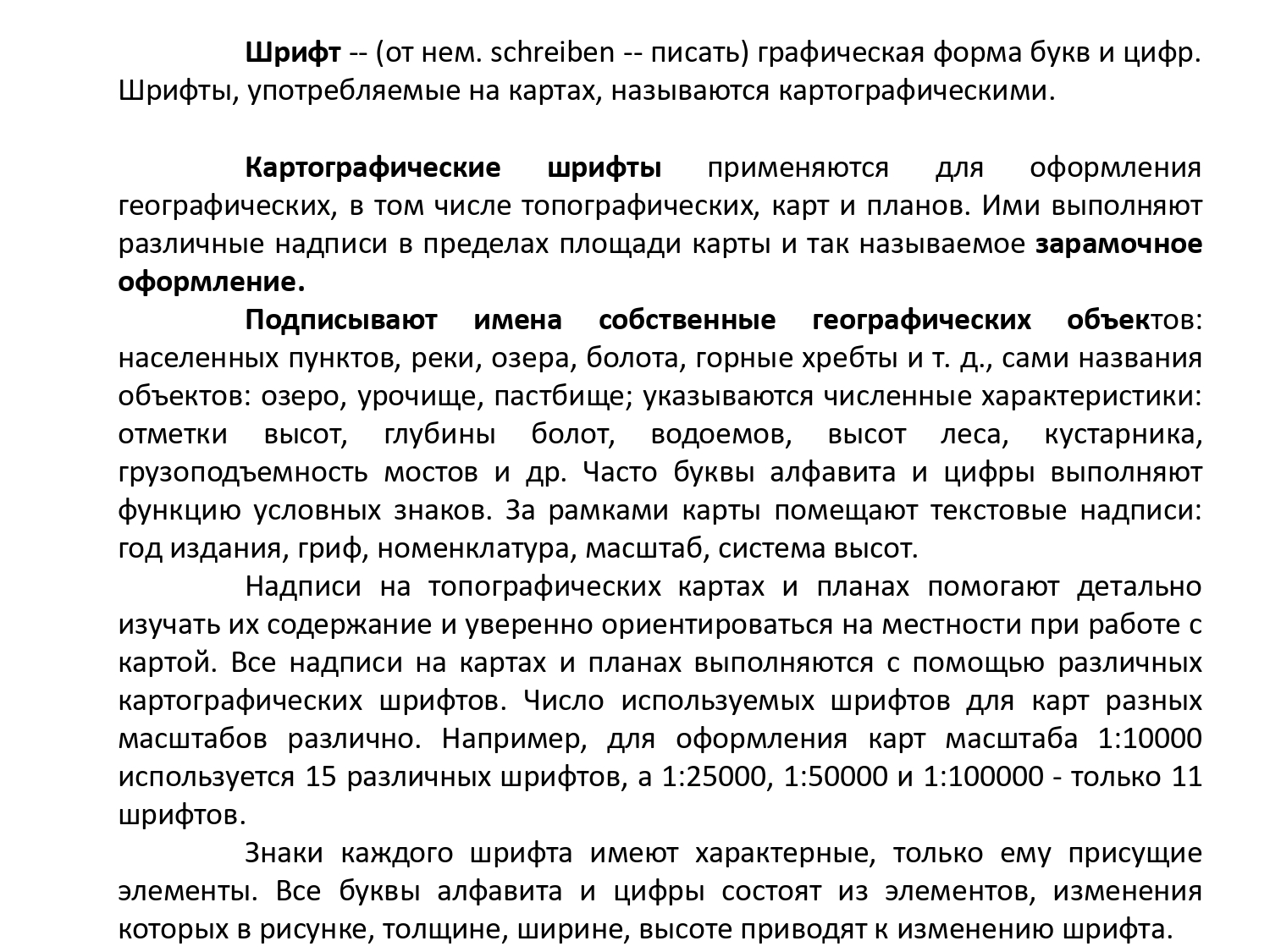 Признаки и классификация шрифтов. Схема классификации шрифтов. Надписи на географических картах.
