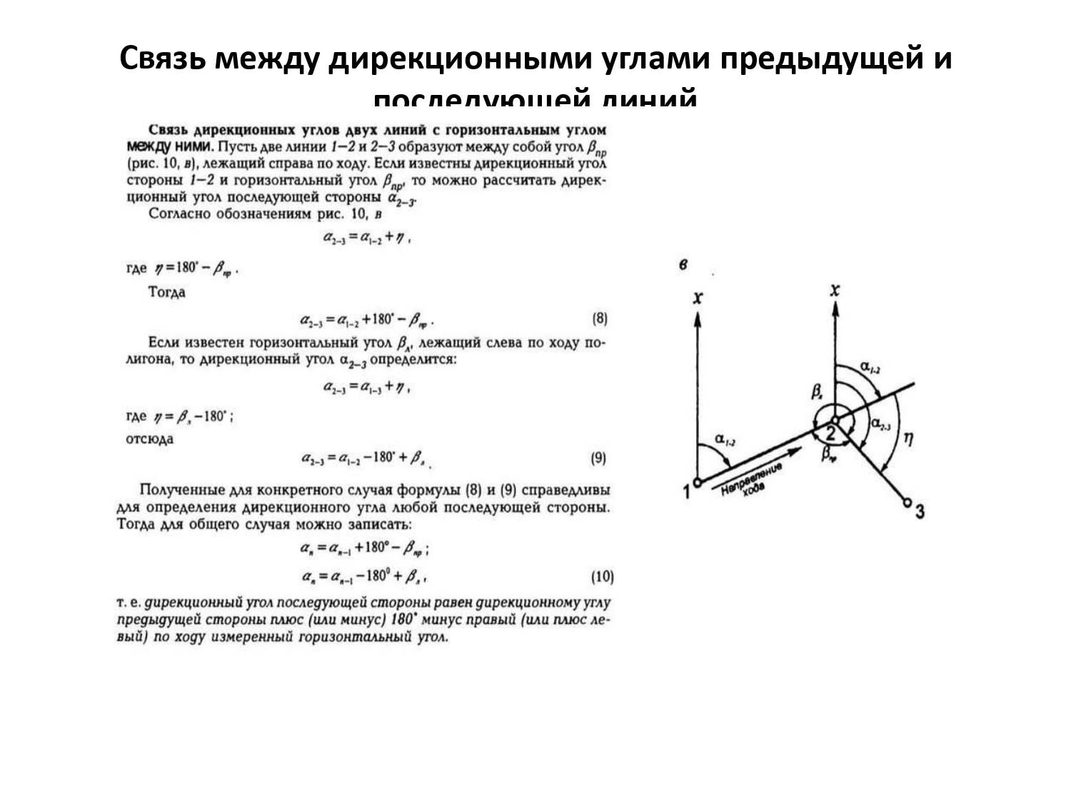3. Связь между дирекционными углами предыдущей и последующей линий