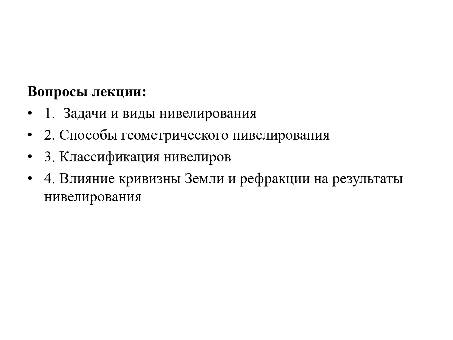 3. Классификация нивелиров 4. Влияние кривизны Земли и рефракции на результаты нивелирования