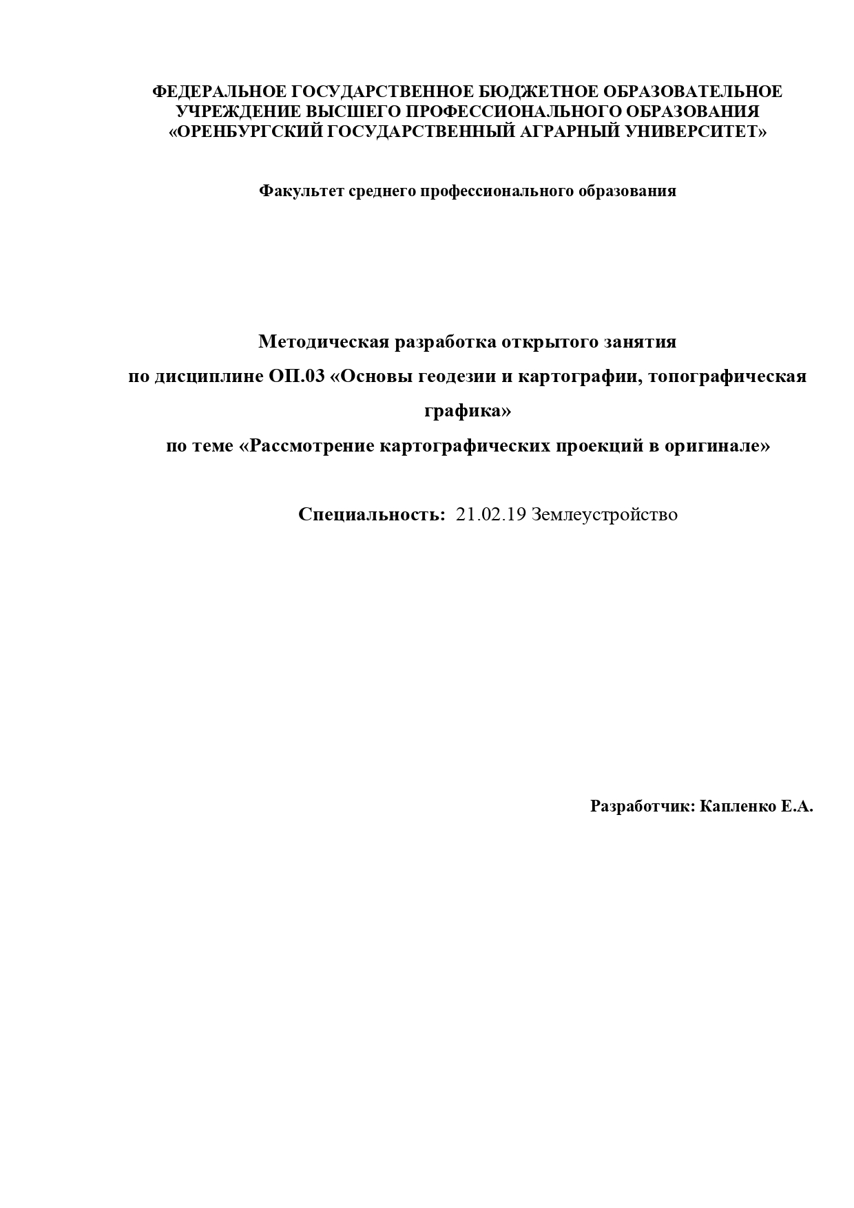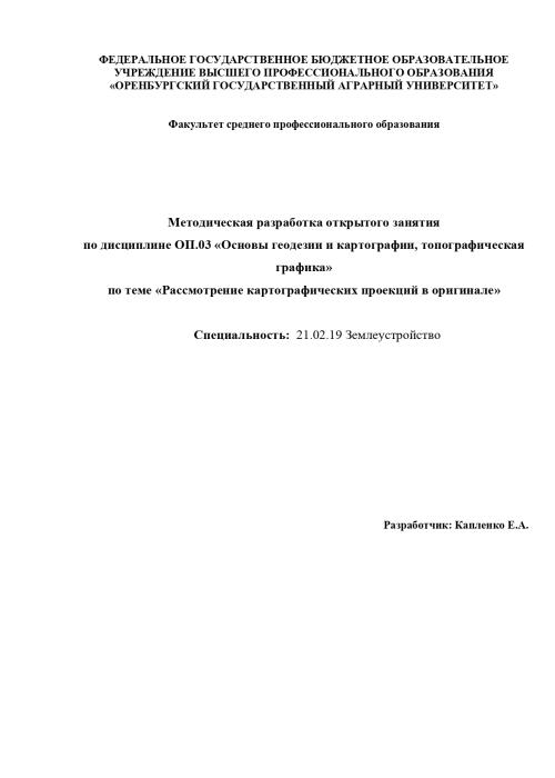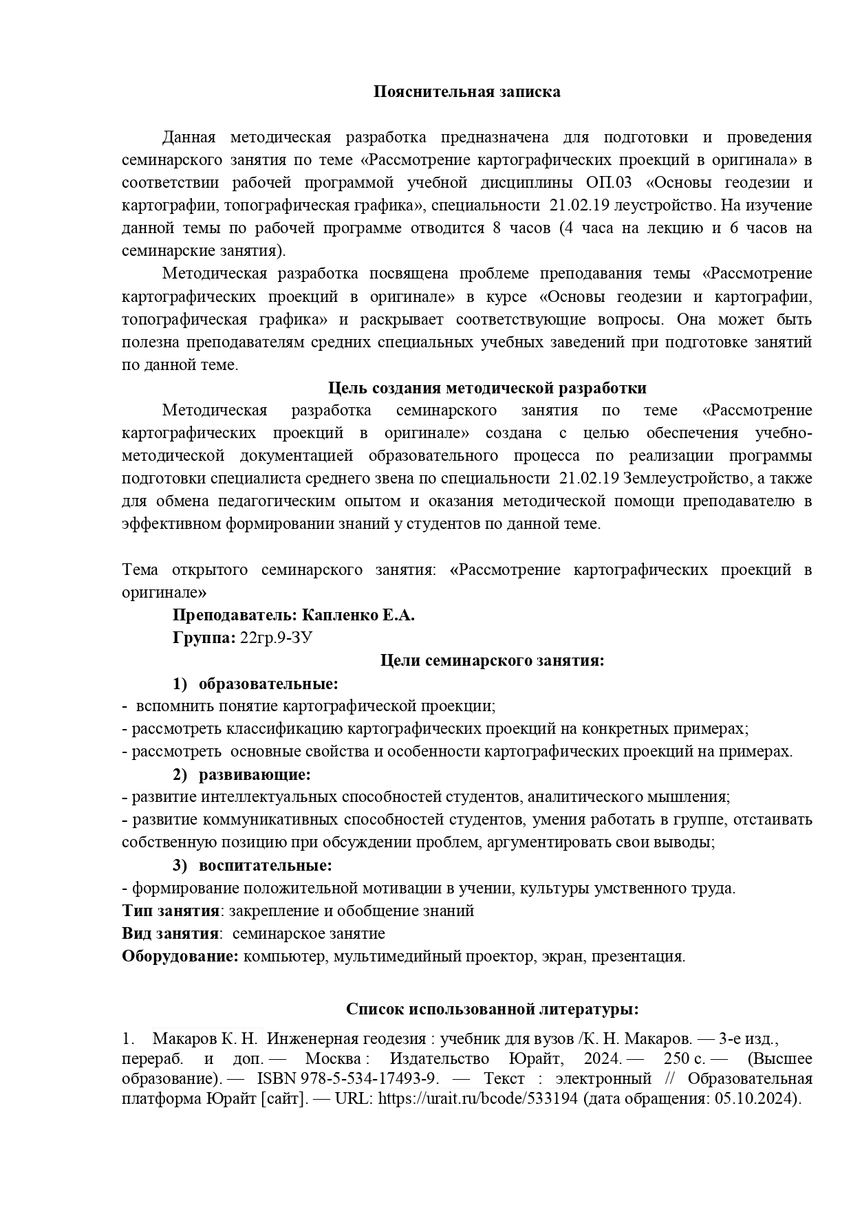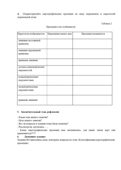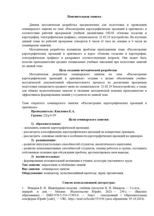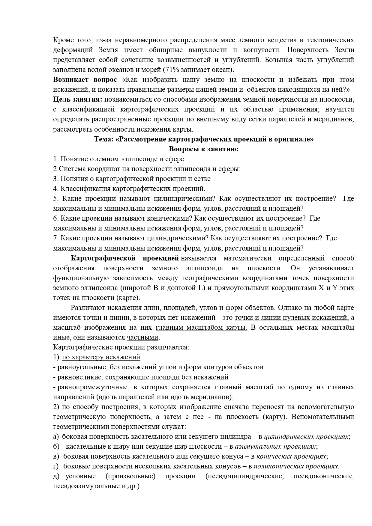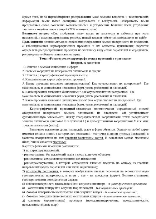 Семинарское занятие по теме «Рассмотрение картографических проекций в оригинале»