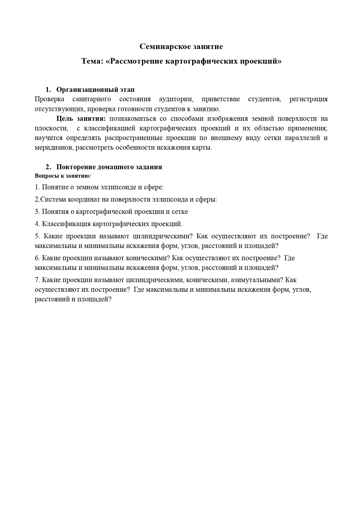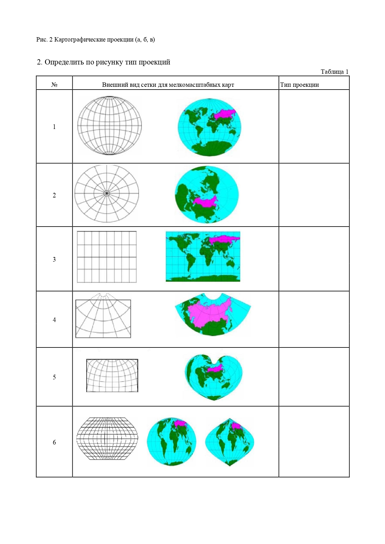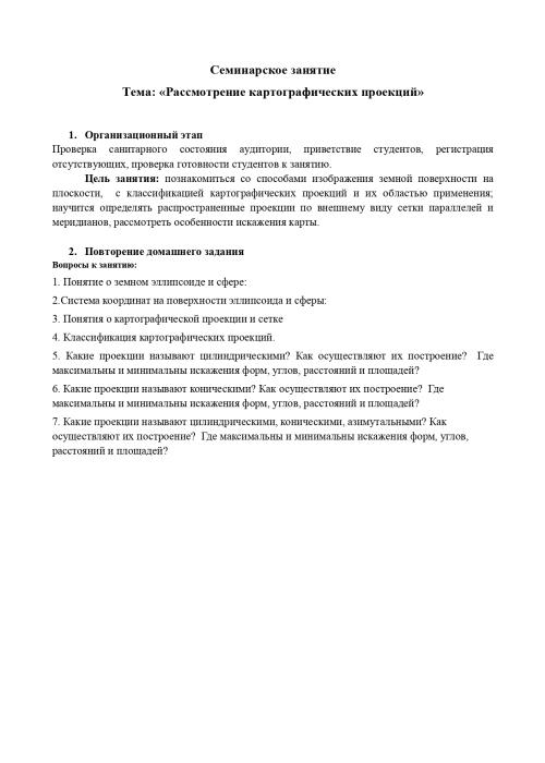 Семинарское занятие Тема: «Рассмотрение картографических проекций»
