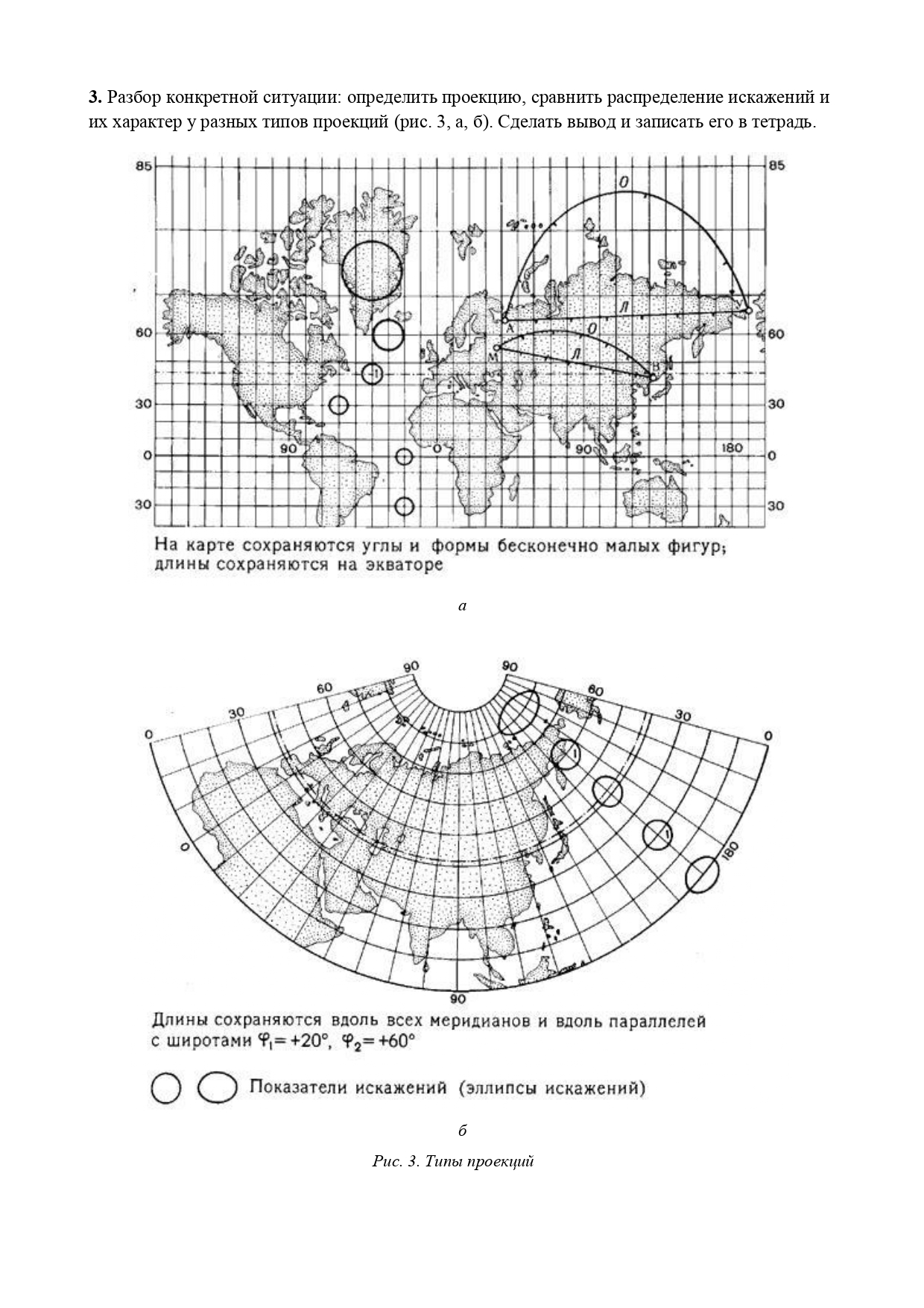 Цель занятия: познакомиться со способами изображения земной поверхности на плоскости,  с классификацией картографических проекций и их областью применения; научится определять распространенные проекции по внешнему виду сетки параллелей и меридианов, рассмотреть особенности искажения карты.