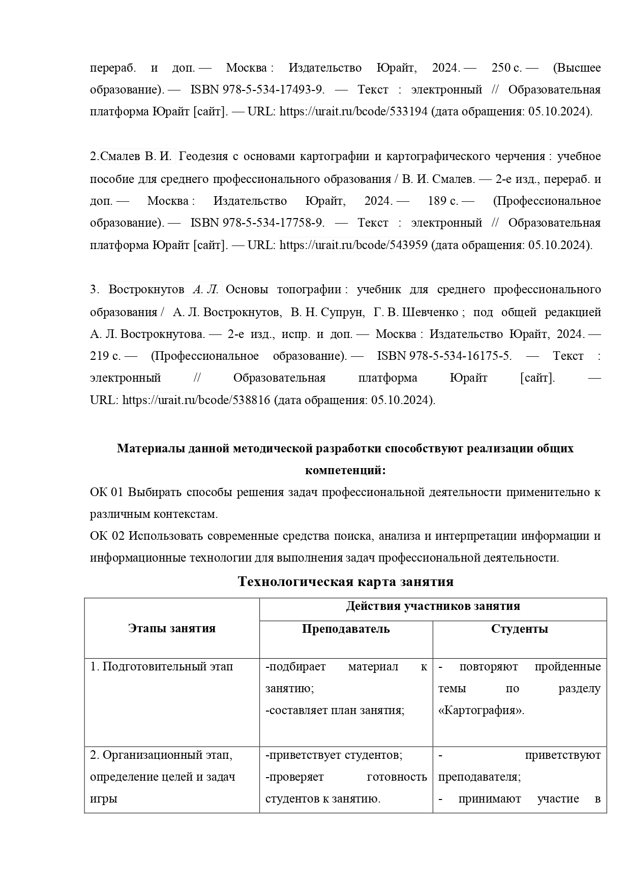 Методическая разработка посвящена проблеме преподавания по теме «Общая геодезия» в курсе «Основы геодезии и картографии, топографическая графика» и раскрывает соответствующие вопросы. Она может быть полезна преподавателям средних специальных учебных заведений при подготовке игровых занятий по данной теме.