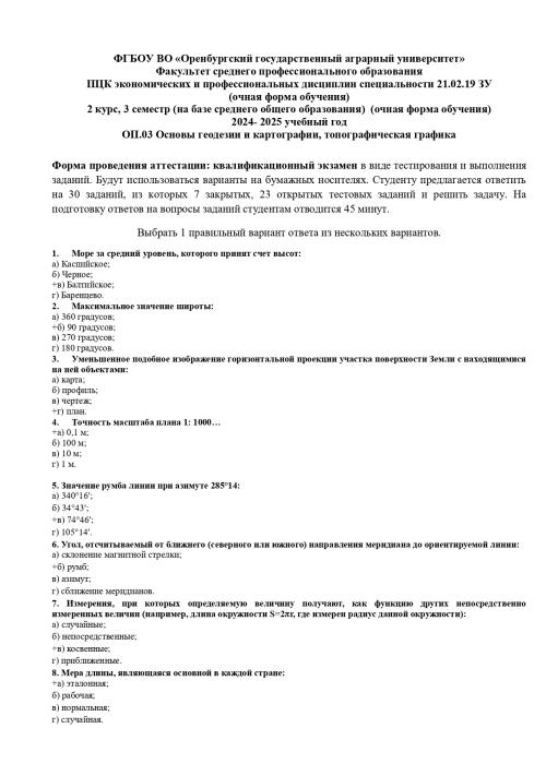 Форма проведения аттестации: квалификационный экзамен в виде тестирования и выполнения заданий. Будут использоваться варианты на бумажных носителях. Студенту предлагается ответить на 30 заданий, из которых 7 закрытых, 23 открытых тестовых заданий и решить задачу. На подготовку ответов на вопросы заданий студентам отводится 45 минут.