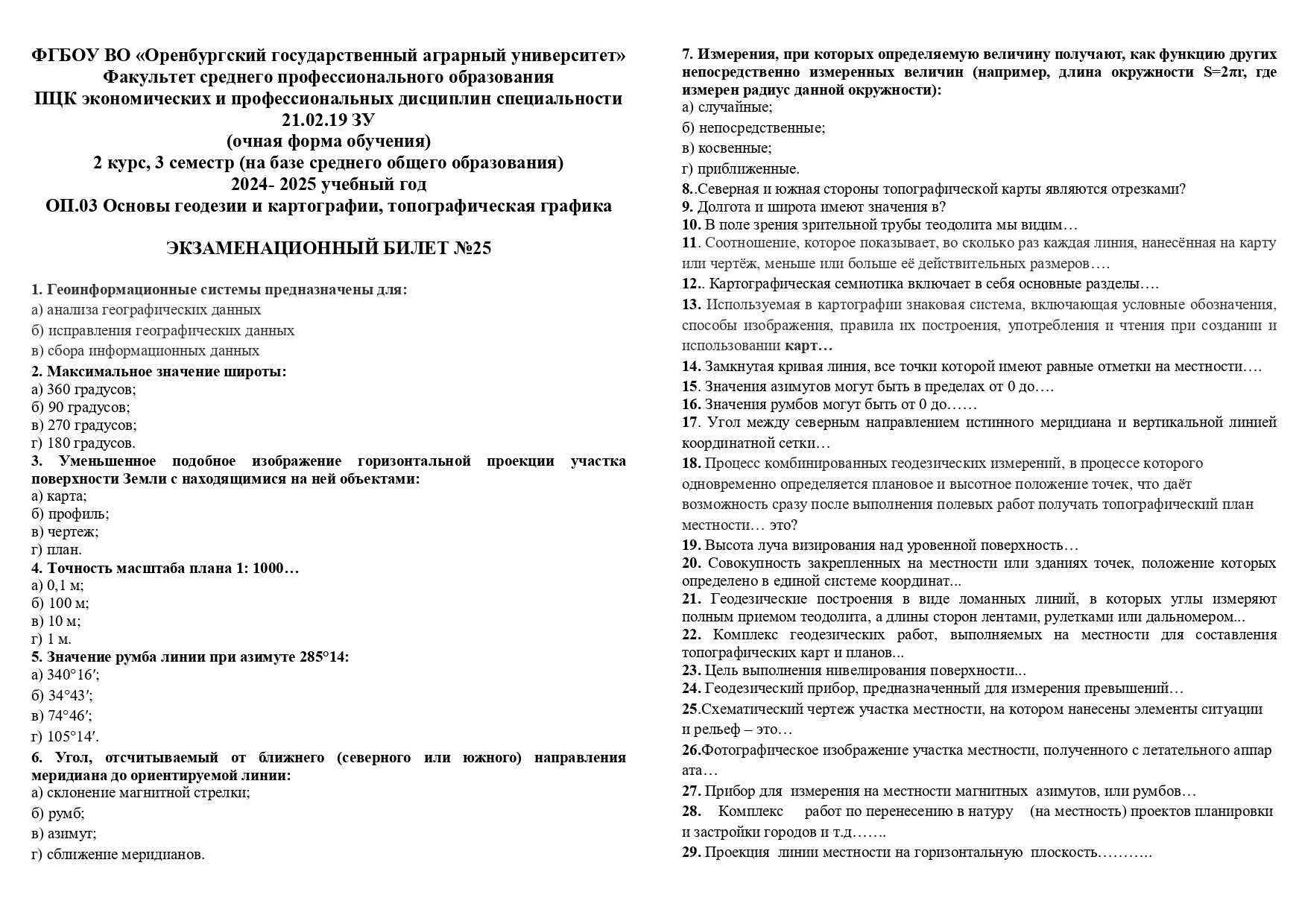 Всего 25 билетов. Каждый билет состоит из трех частей. Закрытые, открытые тесты и задача.