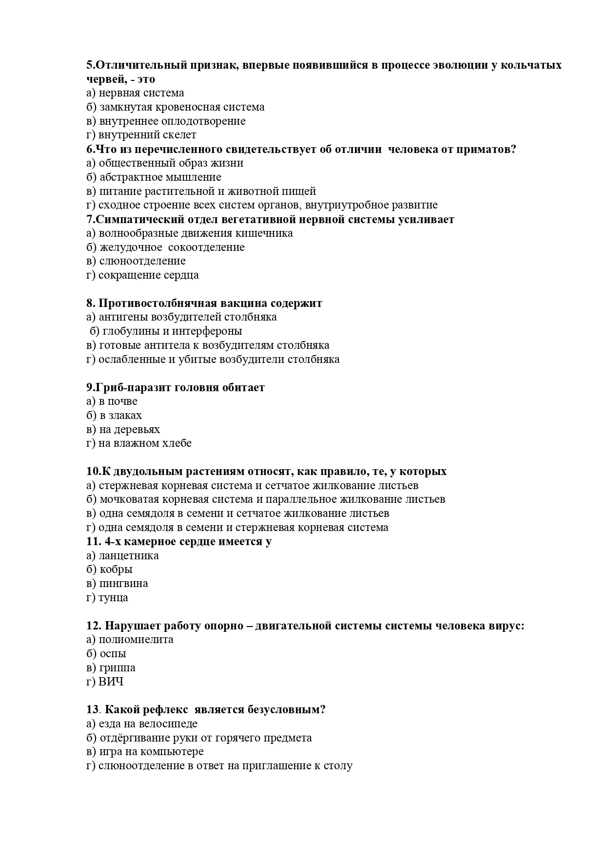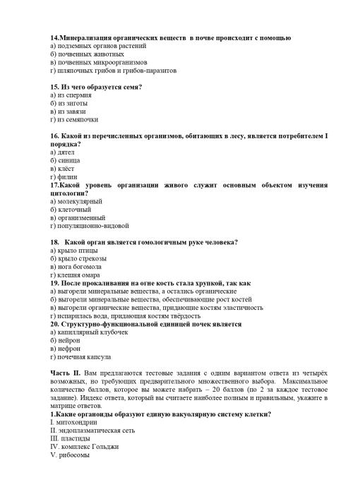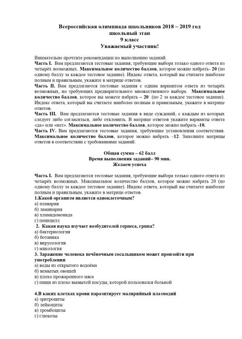 Всероссийская олимпиада школьников по биологии 2018 – 2019 год школьный этап 9 класс