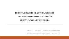 Презентация на тему "ИСПОЛЬЗОВАНИЕ НЕКОТОРЫХ ВИДОВ ШИПОВНИКОВ В ОЗЕЛЕНЕНИИ 20 МИКРОРАЙОНА Г.ОРЕНБУРГА "