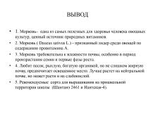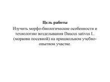 Презентация на тему: «Морфо-биологические особенности моркови посевной (Daucus sativus L.) и ее особенности выращивания на пришкольной территории»
