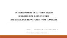 Презентация на тему "ИСПОЛЬЗОВАНИЕ НЕКОТОРЫХ ВИДОВ ШИПОВНИКОВ В ОЗЕЛЕНЕНИИ ПРИШКОЛЬНОЙ ТЕРРИТОРИИ МОАУ «СОШ №88"