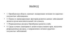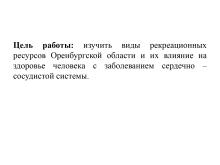 Презентация на тему "РЕКРЕАЦИОННЫЕ РЕСУРСЫ ОРЕНБУРГСКОЙ ОБЛАСТИ И ИХ ВЛИЯНИЕ НА ЗАБОЛЕВАНИЯ СЕРДЕЧНО-СОСУДИСТОЙ СИСТЕМЫ"