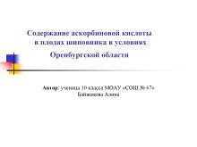 Презентация на тему "Содержание аскорбиновой кислоты в плодах шиповника в условиях Оренбургской области"