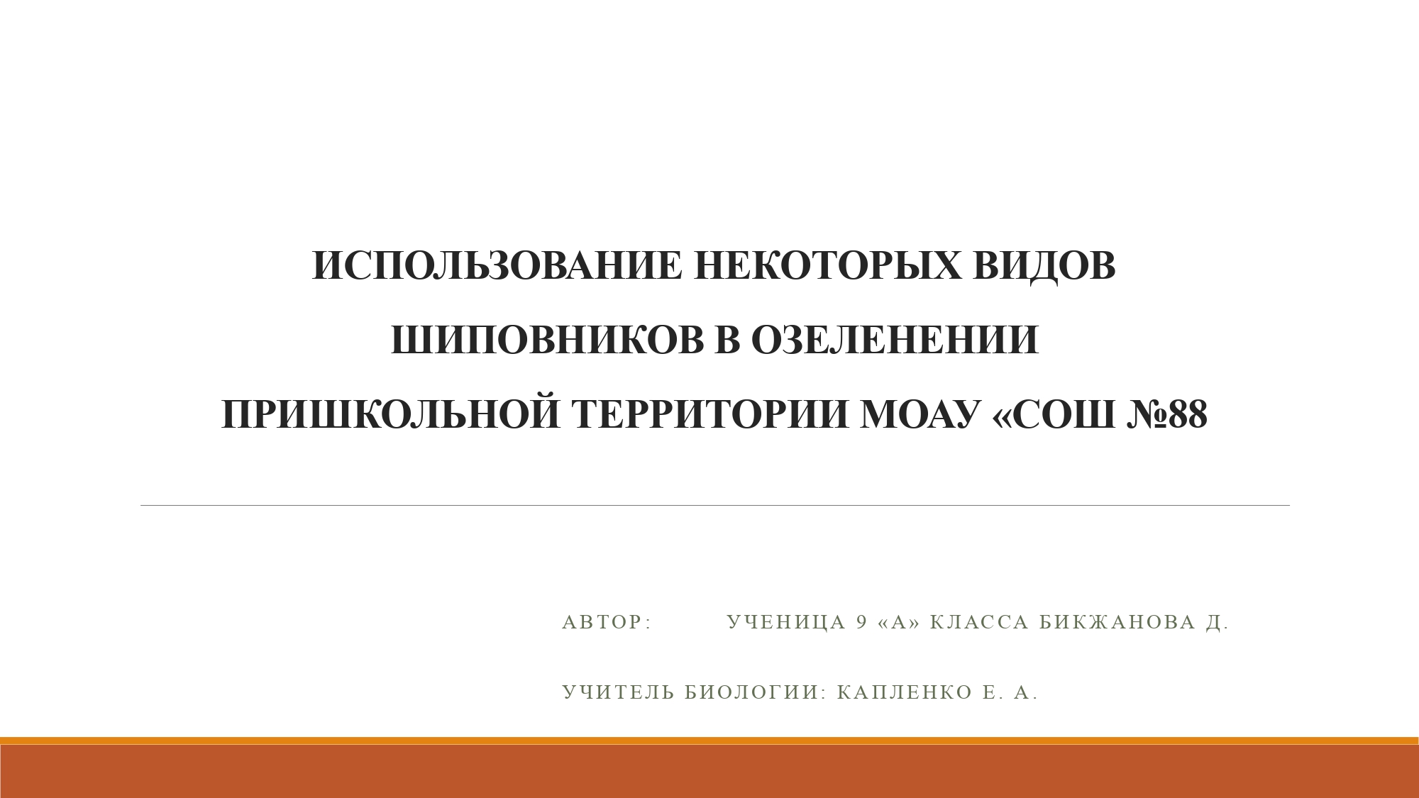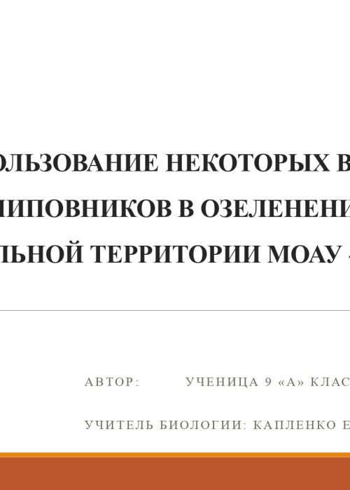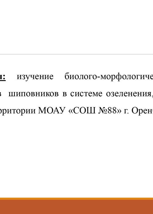 Презентация на тему "ИСПОЛЬЗОВАНИЕ НЕКОТОРЫХ ВИДОВ ШИПОВНИКОВ В ОЗЕЛЕНЕНИИ ПРИШКОЛЬНОЙ ТЕРРИТОРИИ МОАУ «СОШ №88"