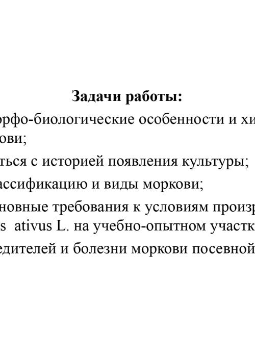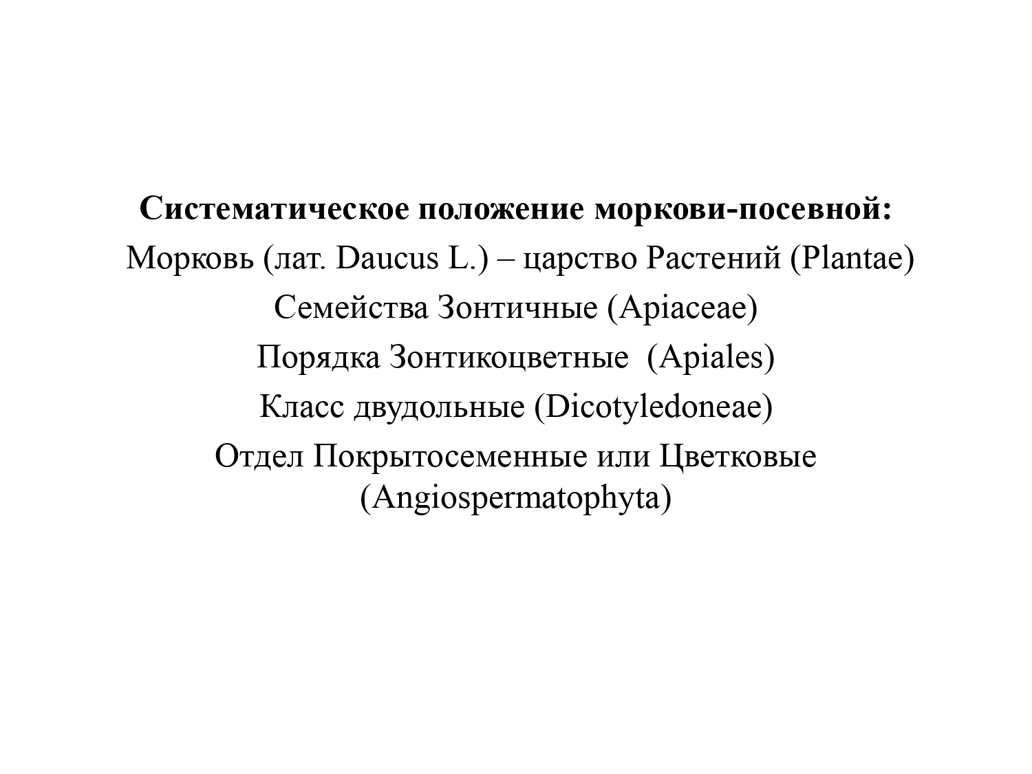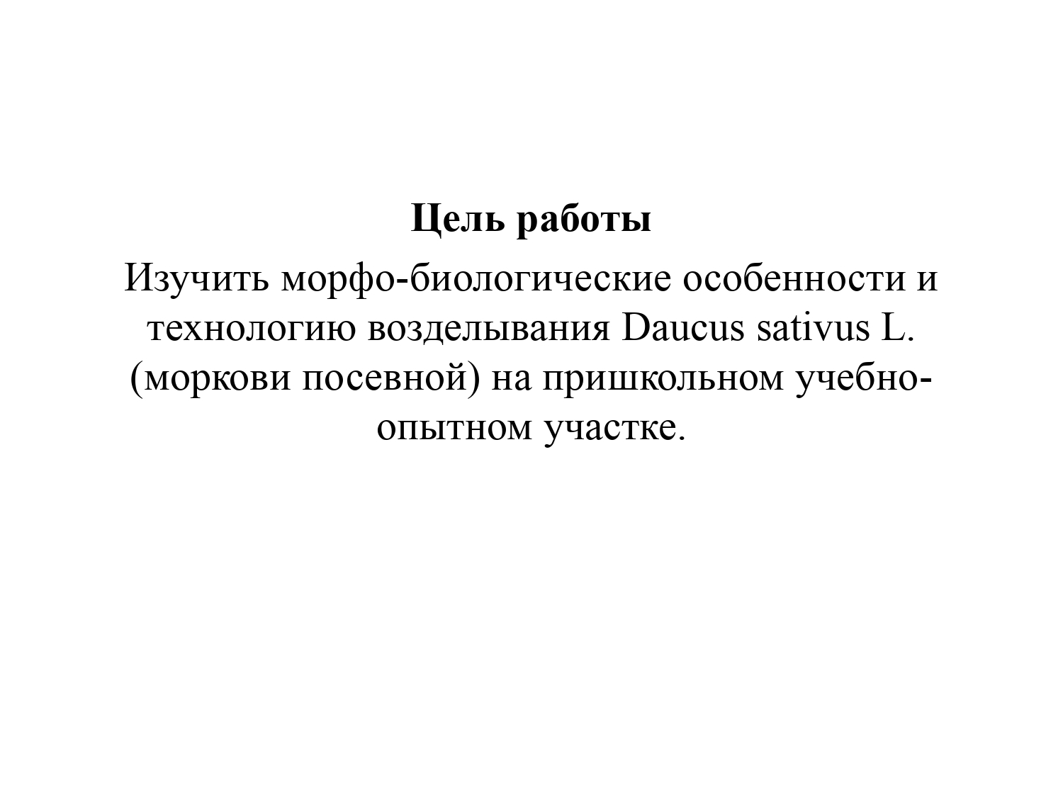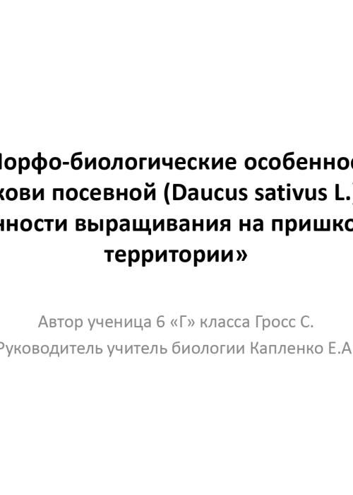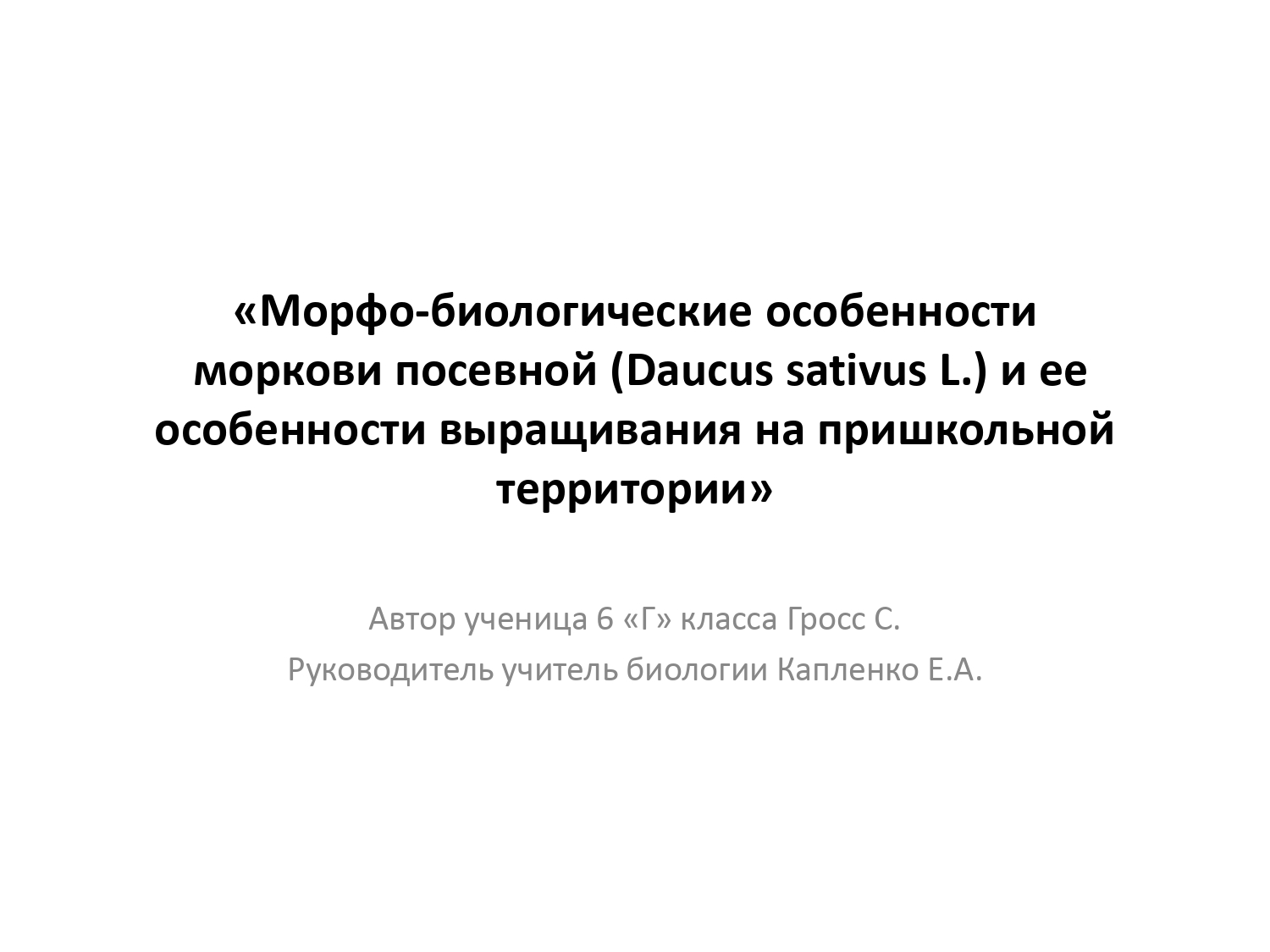 Презентация на тему: «Морфо-биологические особенности моркови посевной (Daucus sativus L.) и ее особенности выращивания на пришкольной территории»