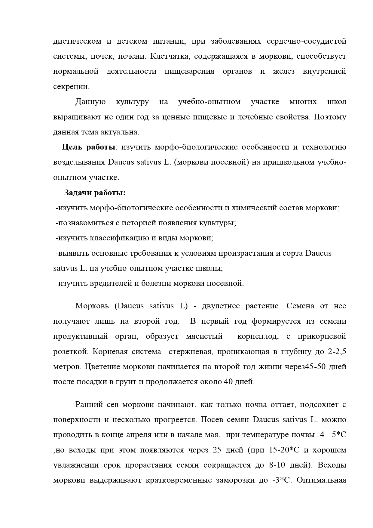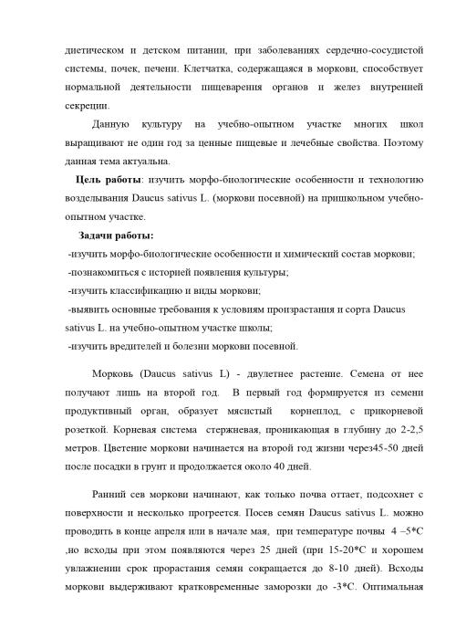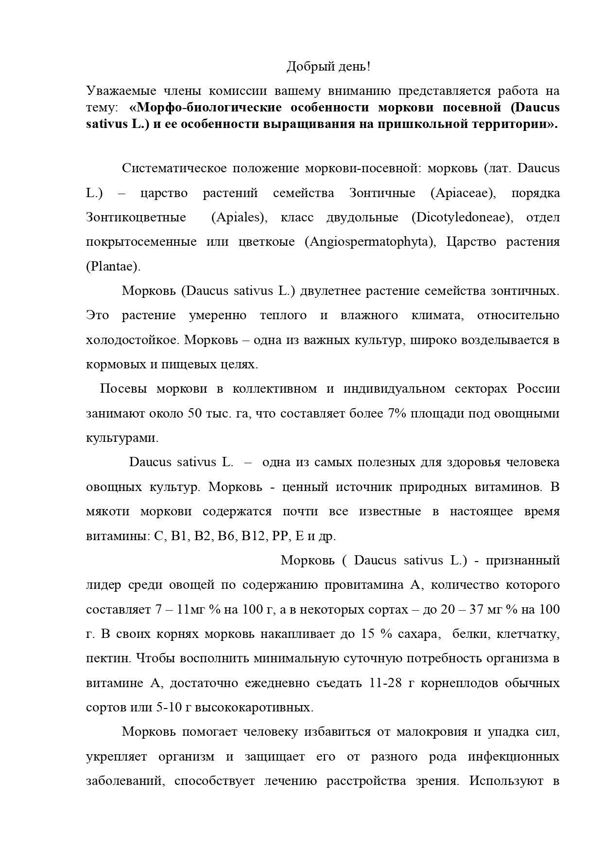 Доклад на тему: «Морфо-биологические особенности моркови посевной (Daucus sativus L.) и ее особенности выращивания на пришкольной территории»