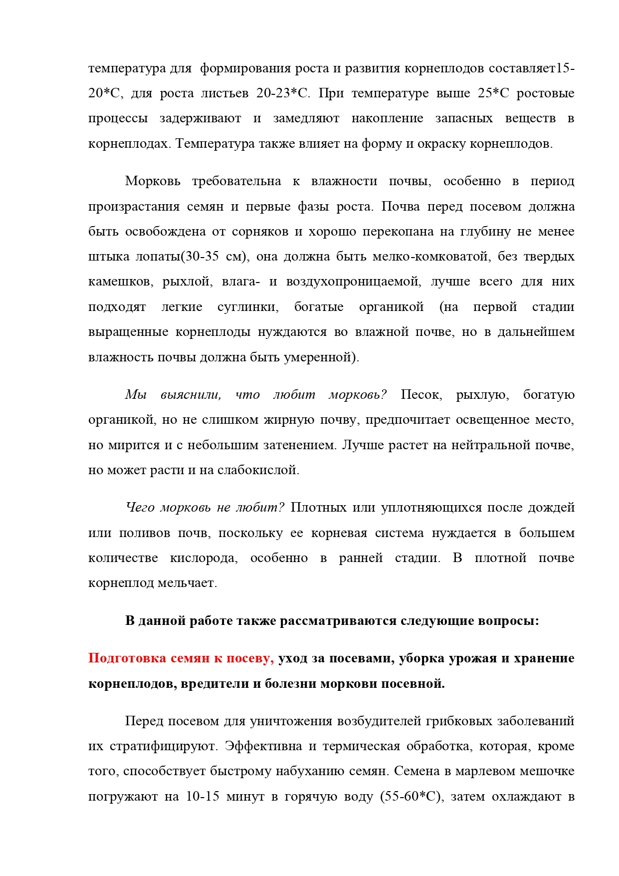 Доклад на тему: «Морфо-биологические особенности моркови посевной (Daucus sativus L.) и ее особенности выращивания на пришкольной территории» 2