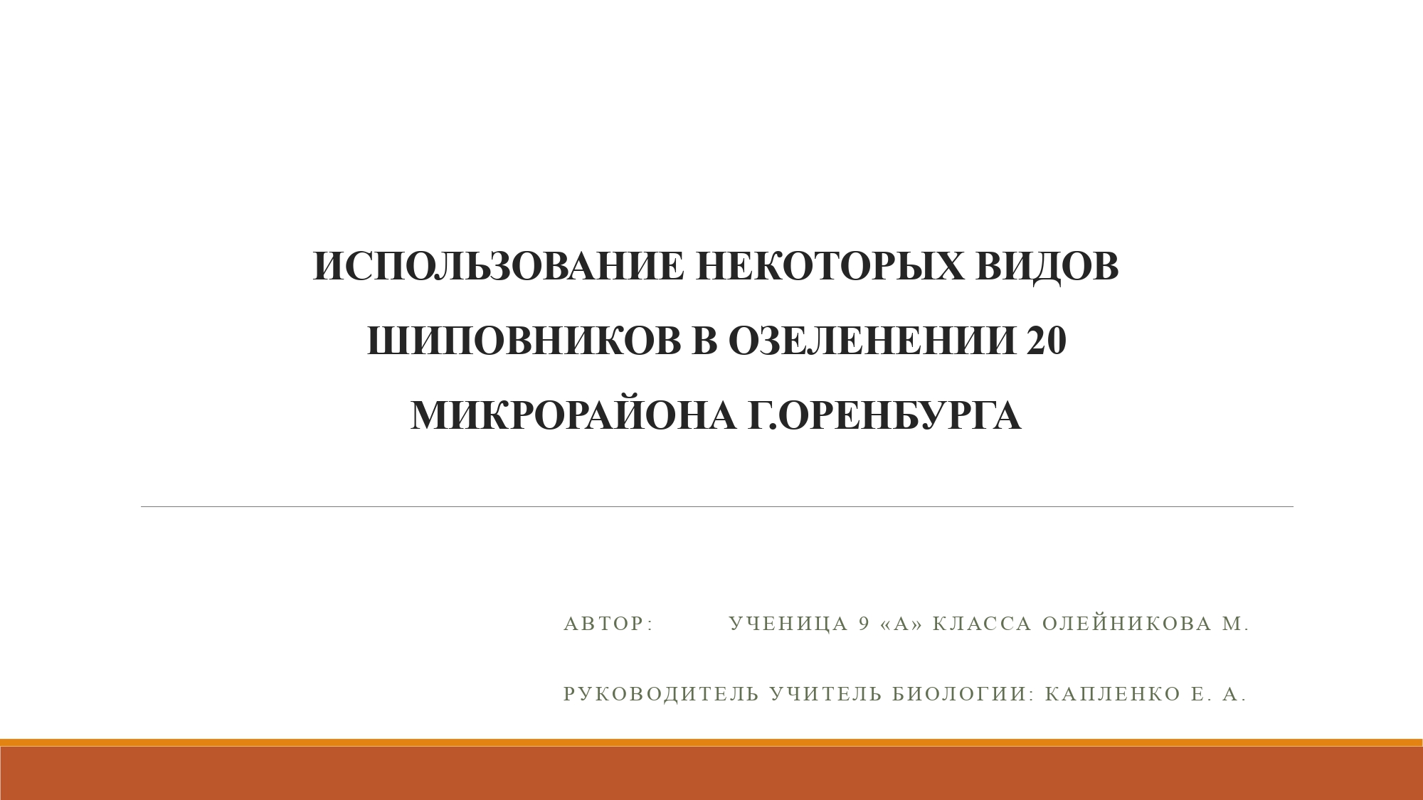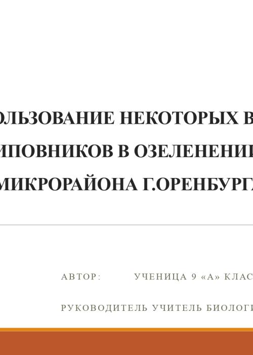 Презентация на тему "ИСПОЛЬЗОВАНИЕ НЕКОТОРЫХ ВИДОВ ШИПОВНИКОВ В ОЗЕЛЕНЕНИИ 20 МИКРОРАЙОНА Г.ОРЕНБУРГА "