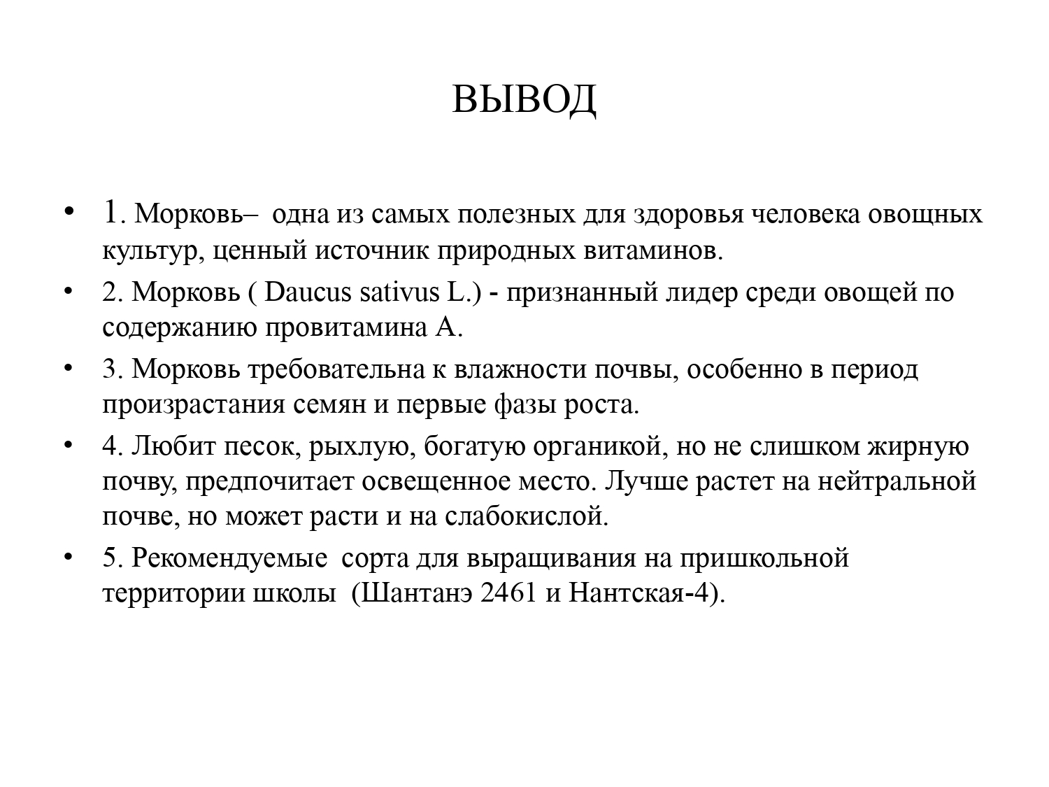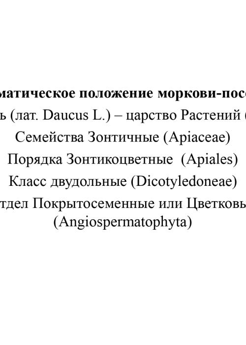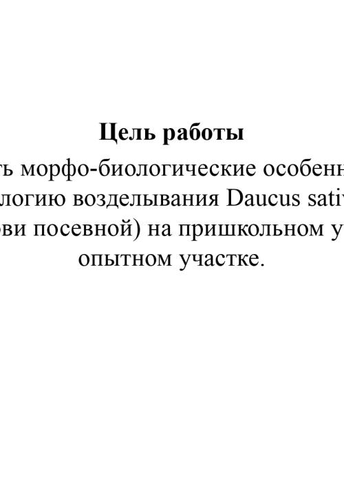 Презентация на тему: «Морфо-биологические особенности моркови посевной (Daucus sativus L.) и ее особенности выращивания на пришкольной территории»2