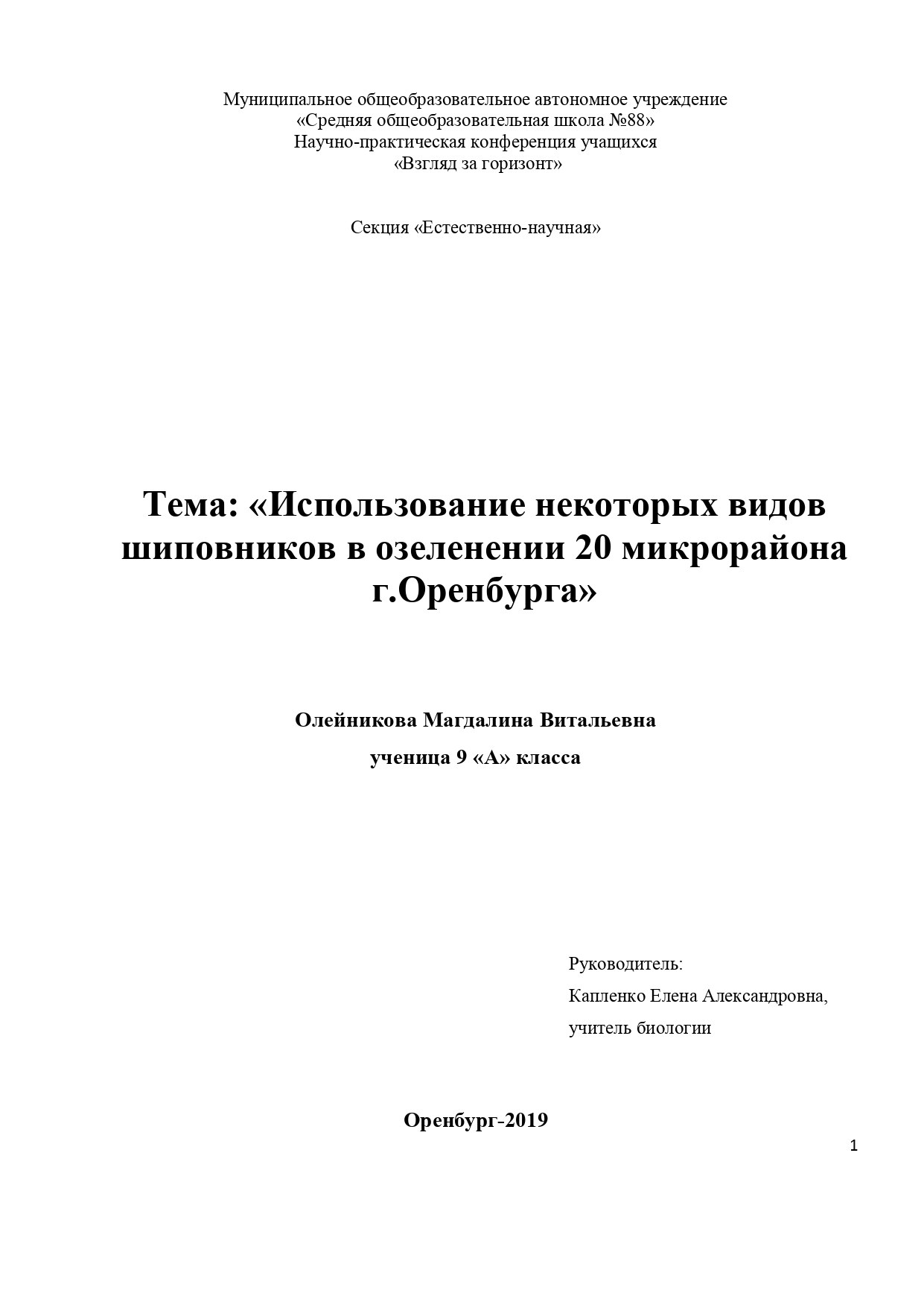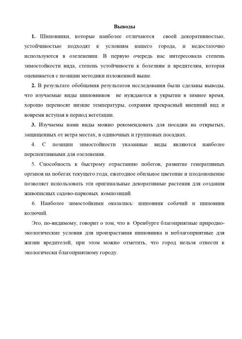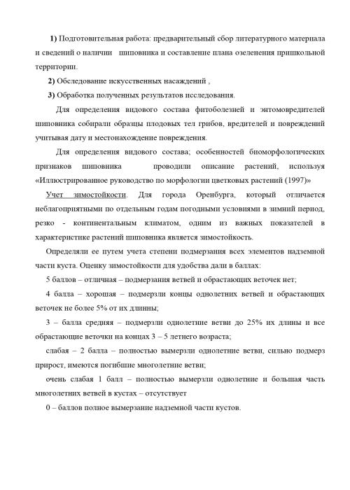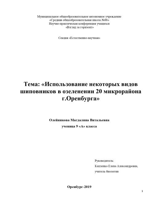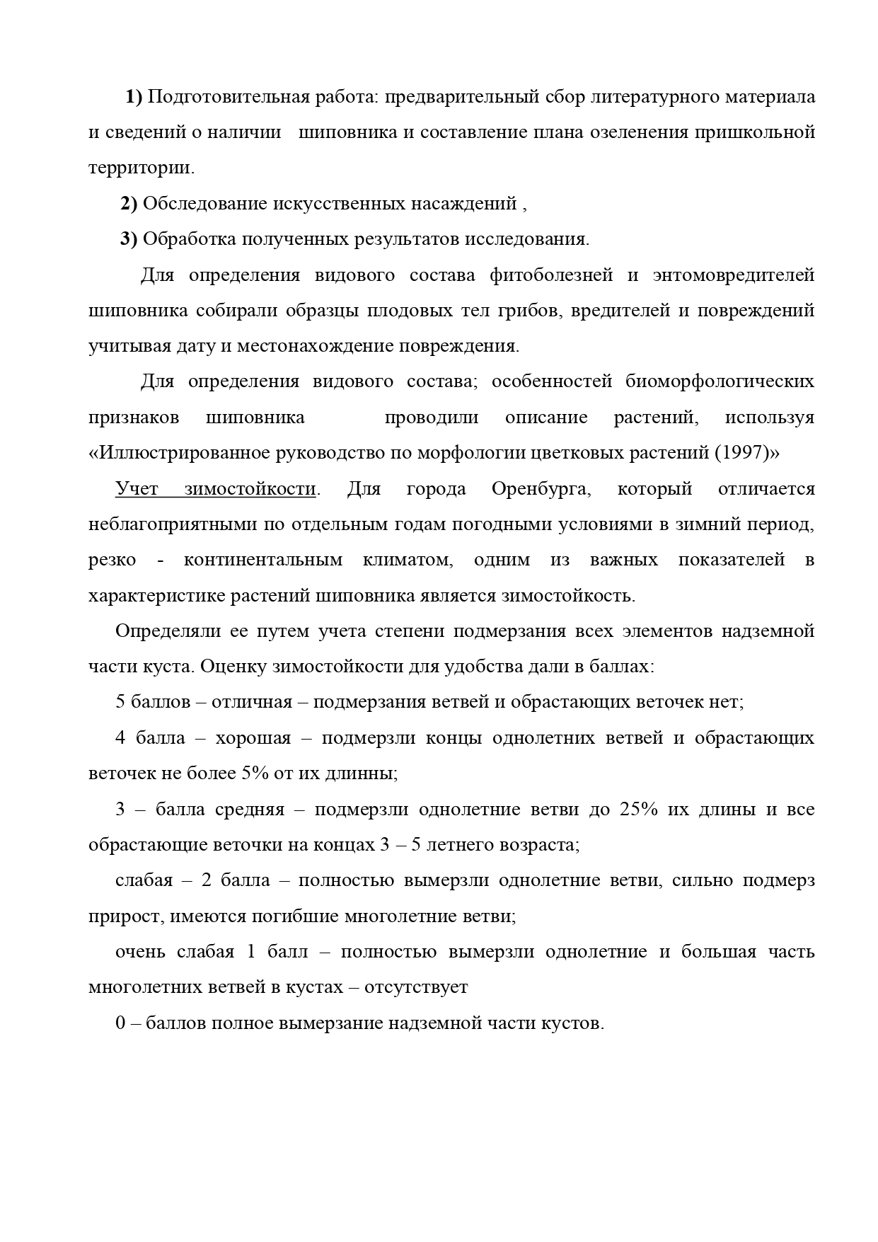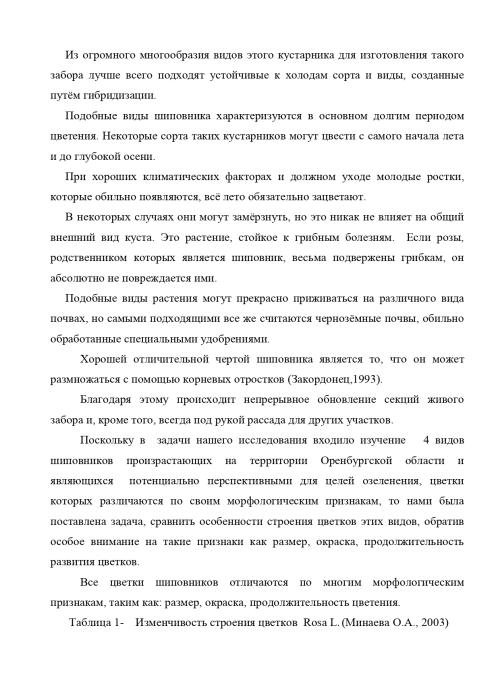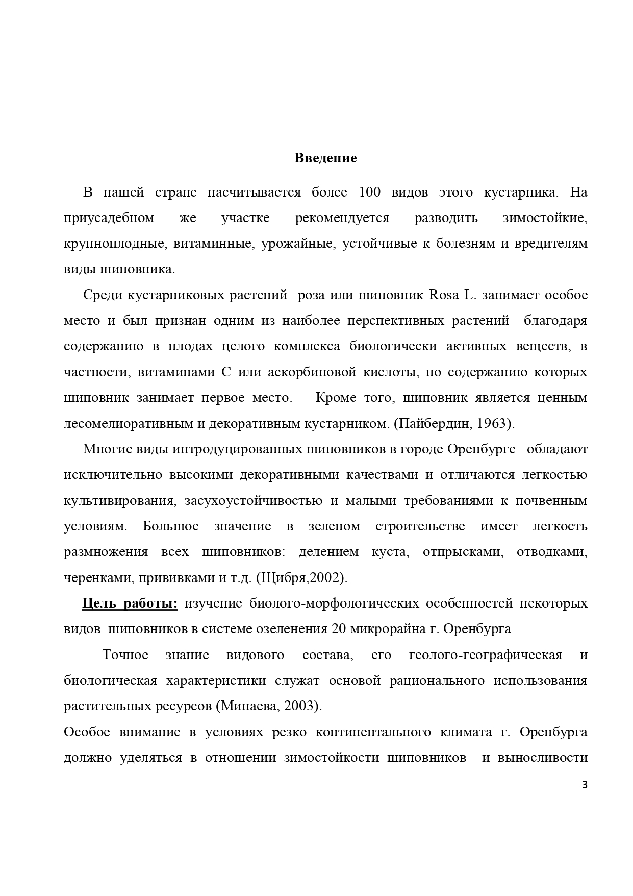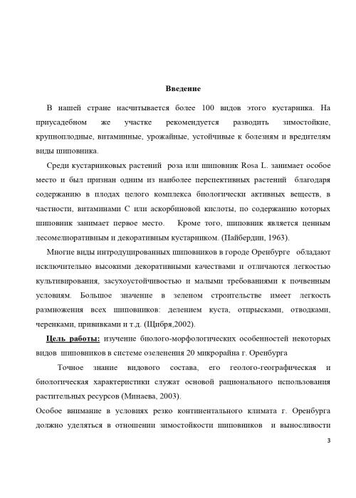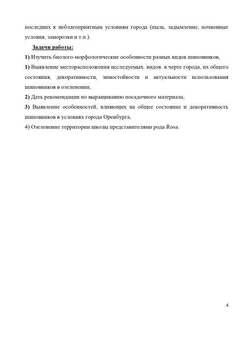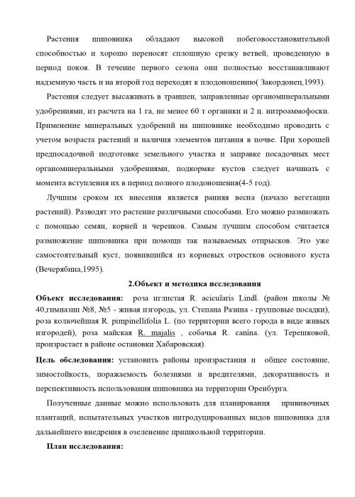 Цель работы: изучение биолого-морфологических особенностей некоторых видов шиповников в системе озеленения 20 микрорайона г. Оренбурга.