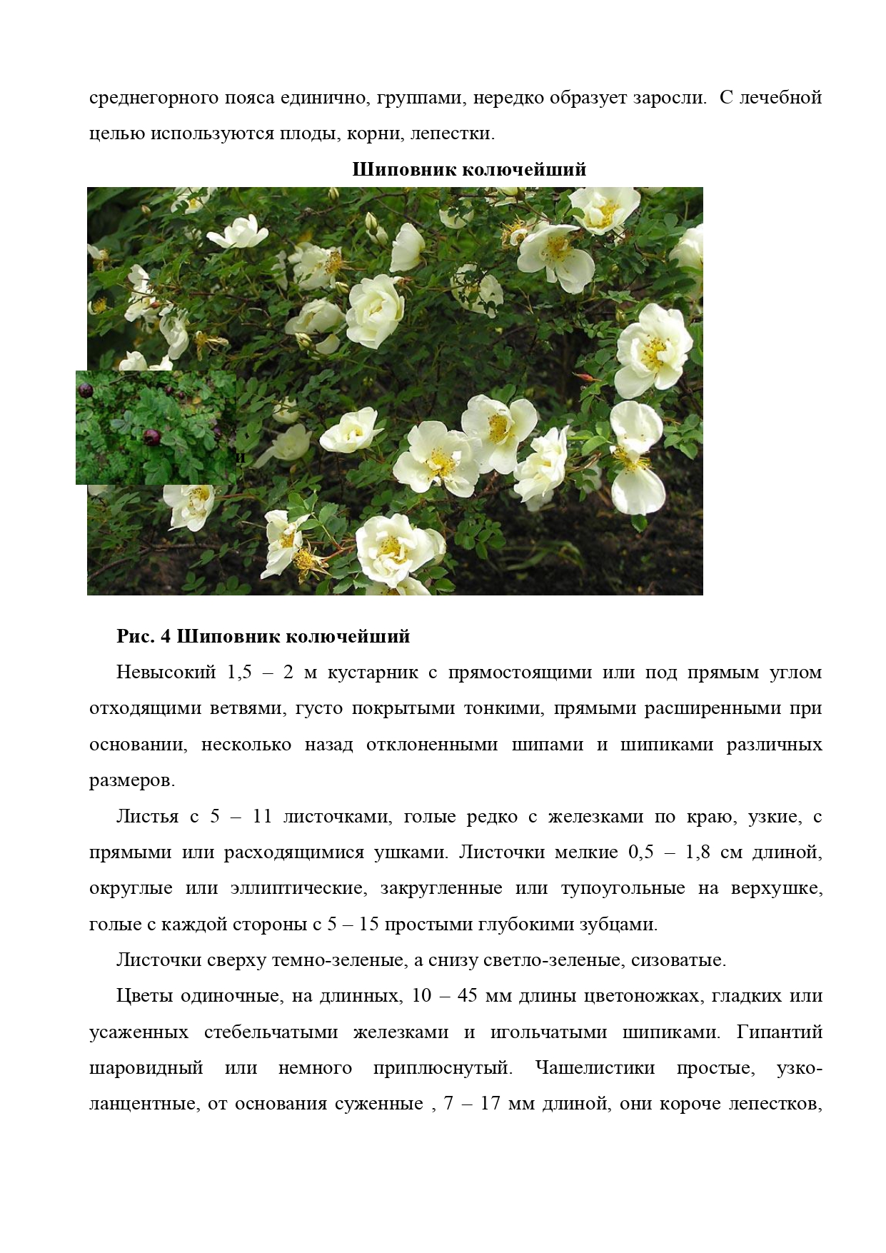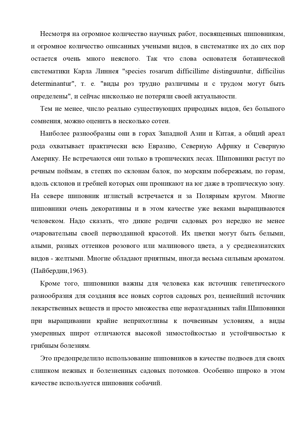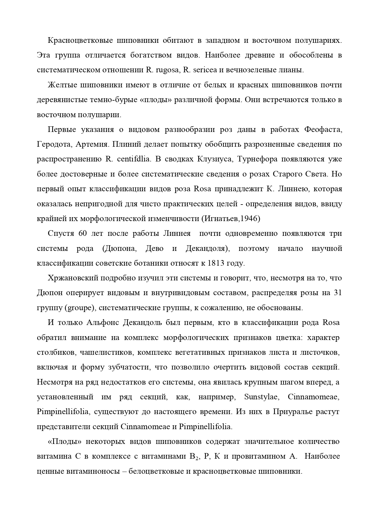 Среди кустарниковых растений роза или шиповник Rosa L. занимает особое место и был признан одним из наиболее перспективных растений благодаря содержанию в плодах целого комплекса биологически активных веществ, в частности, витаминами С или аскорбиновой кислоты, по содержанию которых шиповник занимает первое место. Кроме того, шиповник является ценным лесомелиоративным и декоративным кустарником. (Пайбердин, 1963).