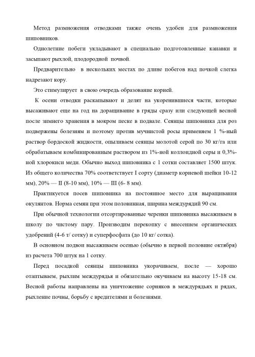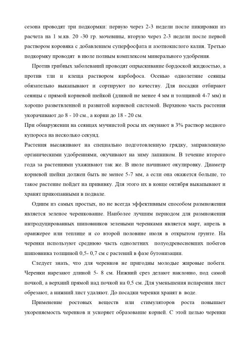 Многие виды интродуцированных шиповников в городе Оренбурге обладают исключительно высокими декоративными качествами и отличаются легкостью культивирования, засухоустойчивостью и малыми требованиями к почвенным условиям. Большое значение в зеленом строительстве имеет легкость размножения всех шиповников: делением куста, отпрысками, отводками, черенками, прививками и т.д. (Щибря,2002).