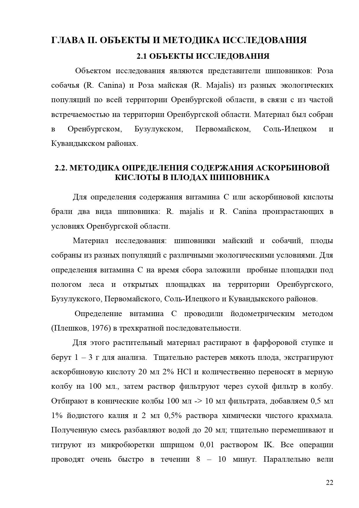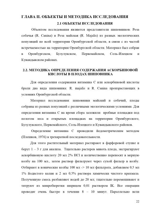 Целью данного исследования является: изучение содержания аскорбиновой кислоты в плодах шиповника в условиях Оренбургской области; выявить влияние экологических условий на накопление витамина C; определить сроки сбора плодов с максимальным содержанием витамина С в плодах; Задачами исследования являлось следующее: изучить состояние изученности данного вопроса, изучить некоторые биологические особенности представителей Роза майская (R. majalis Herm.) и Роза собачья (R. canina α); определить содержание аскорбиновой кислоты в плодах шиповника в условиях Оренбургской области.