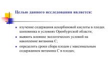 Презентация на тему "Содержание аскорбиновой кислоты в плодах шиповника в условиях Оренбургской области"