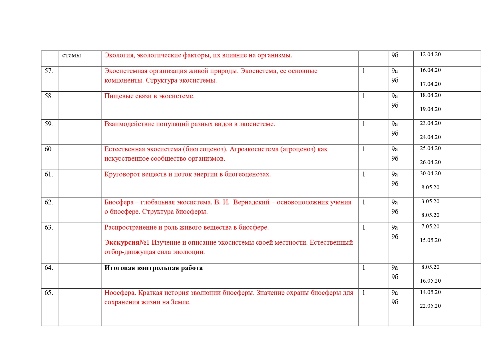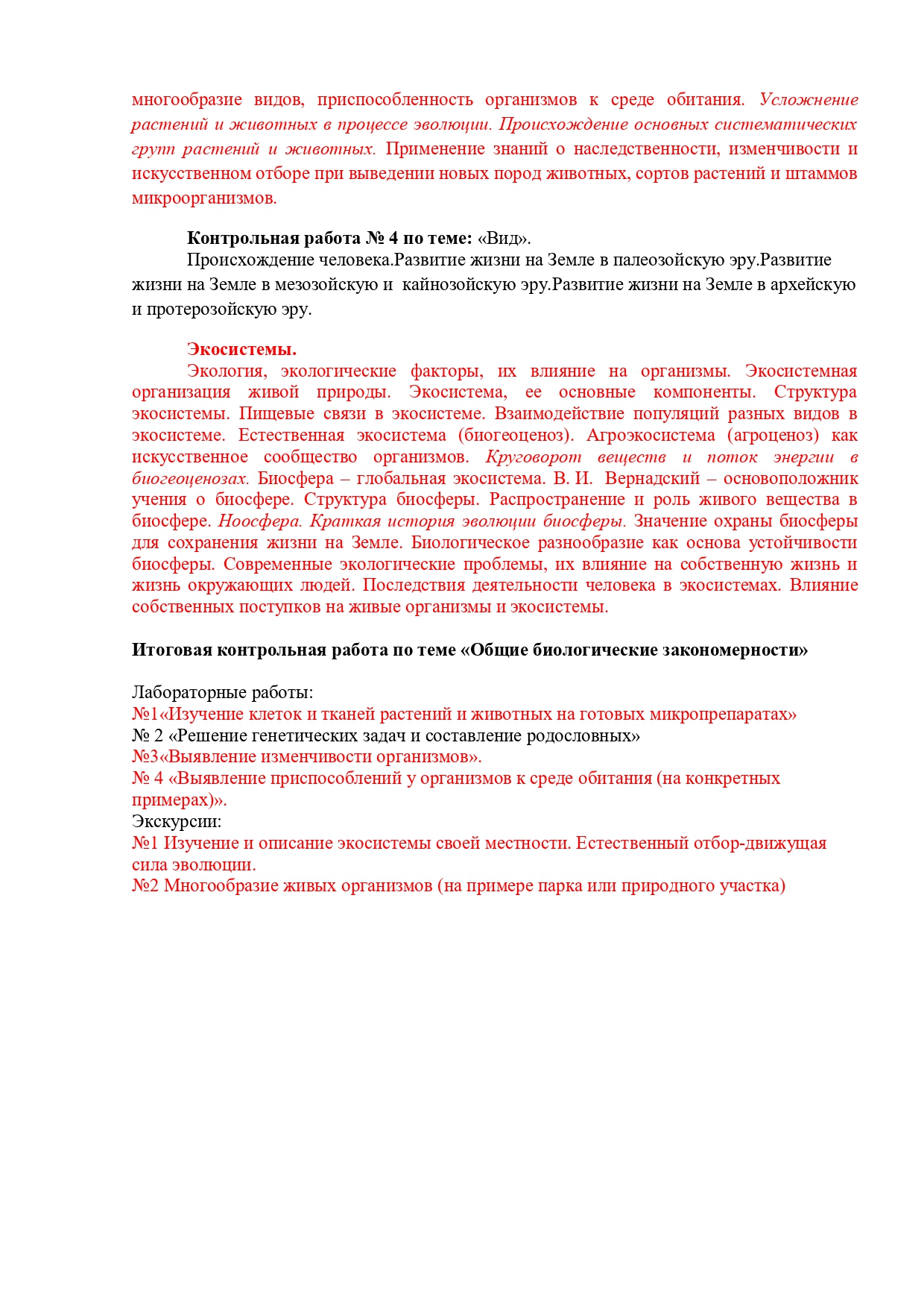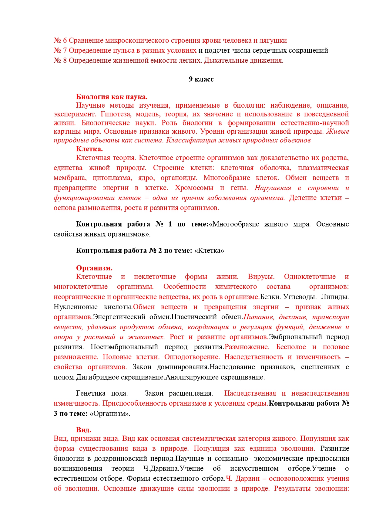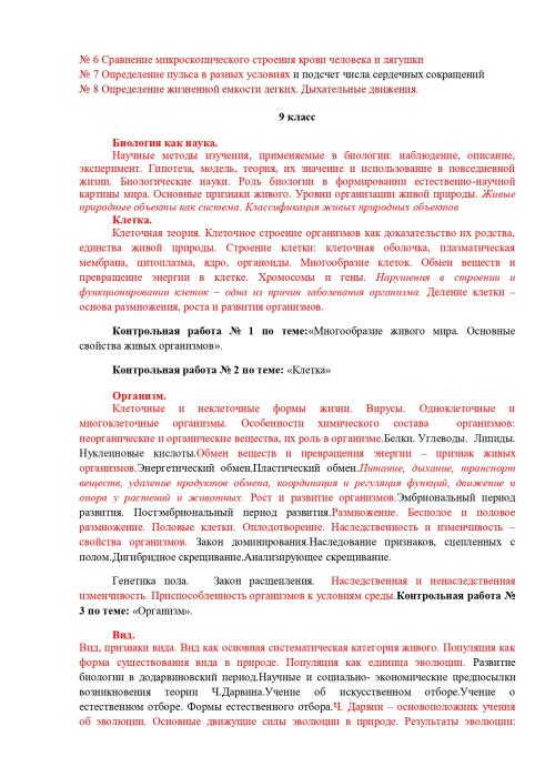 РАБОЧАЯ ПРОГРАММА ПО ПРЕДМЕТУ Биология, 5-9 классы