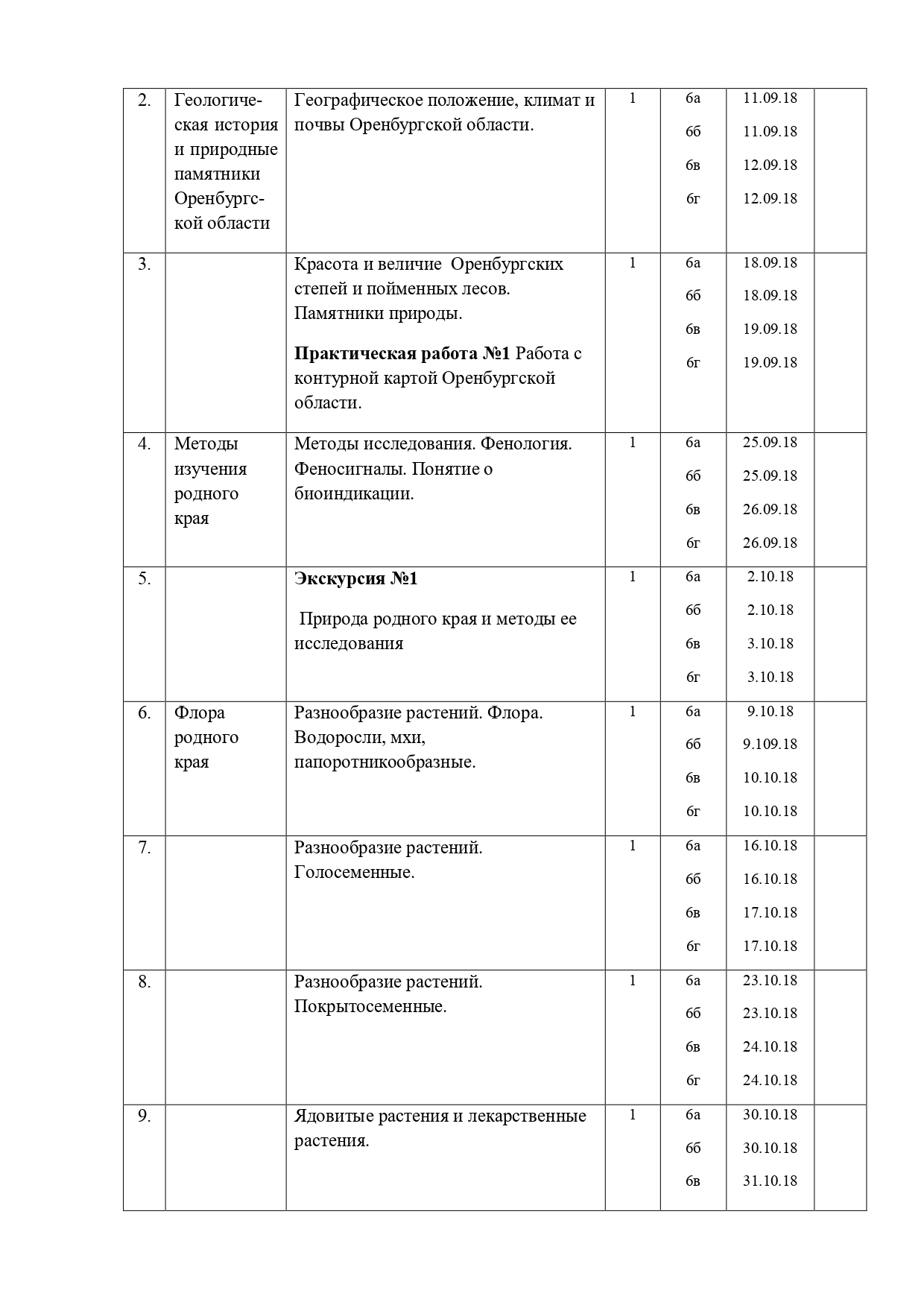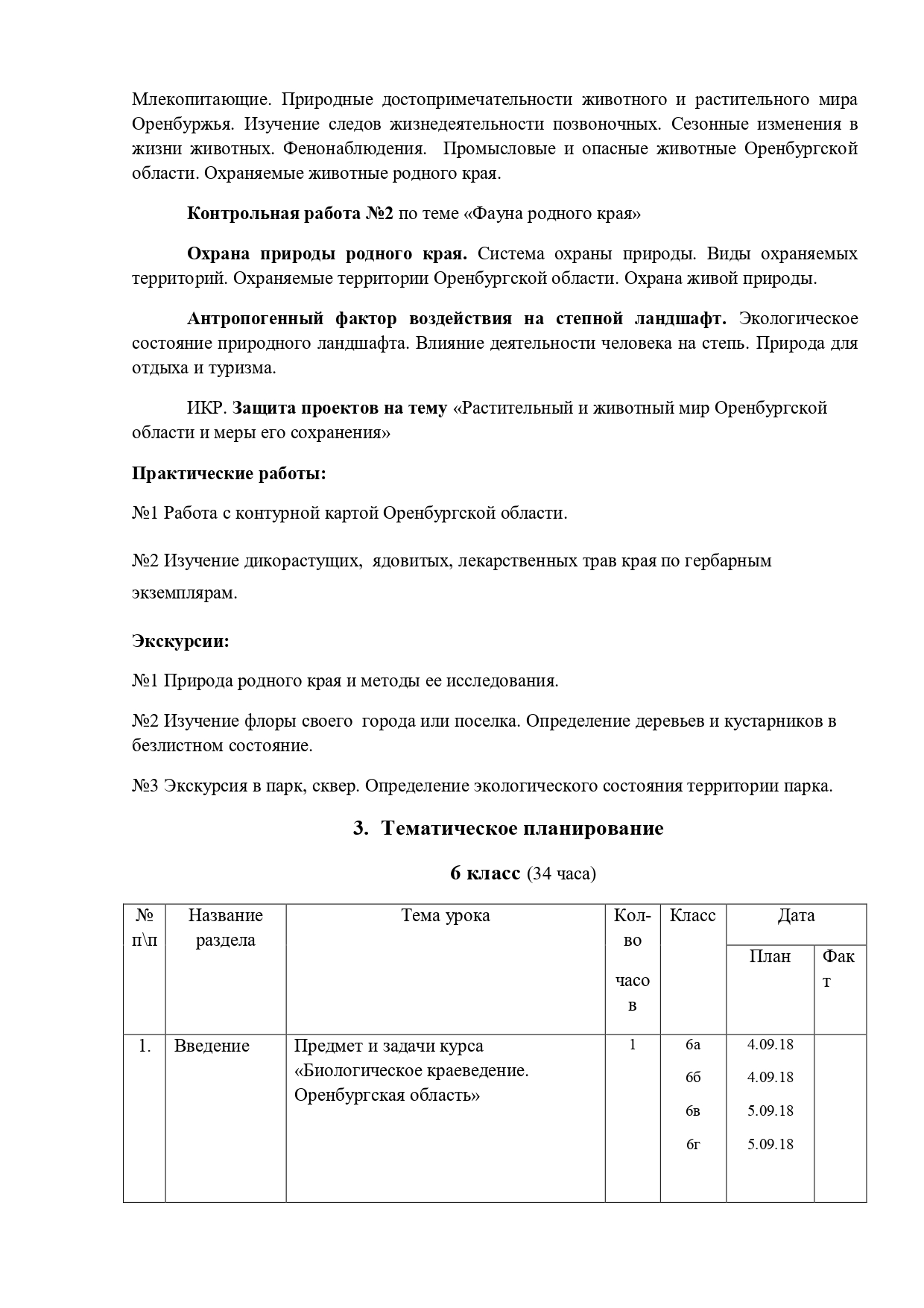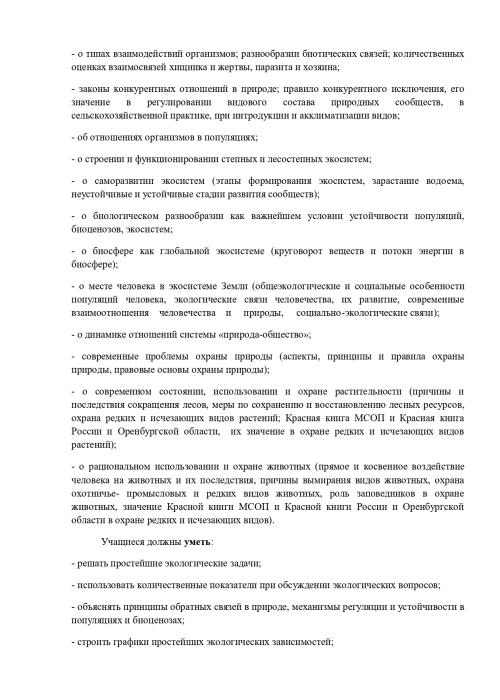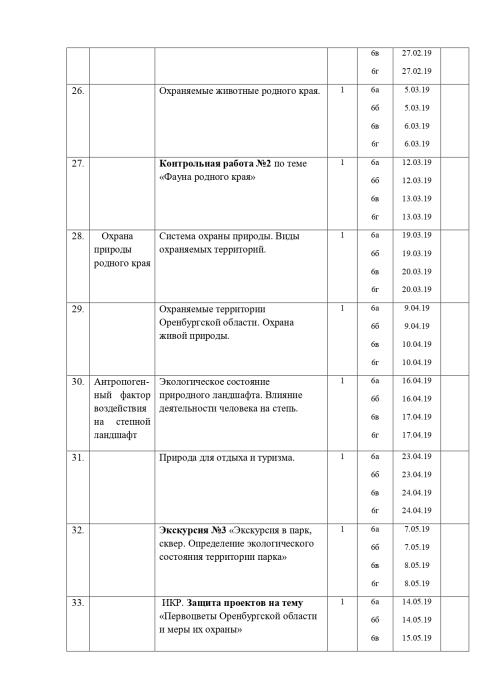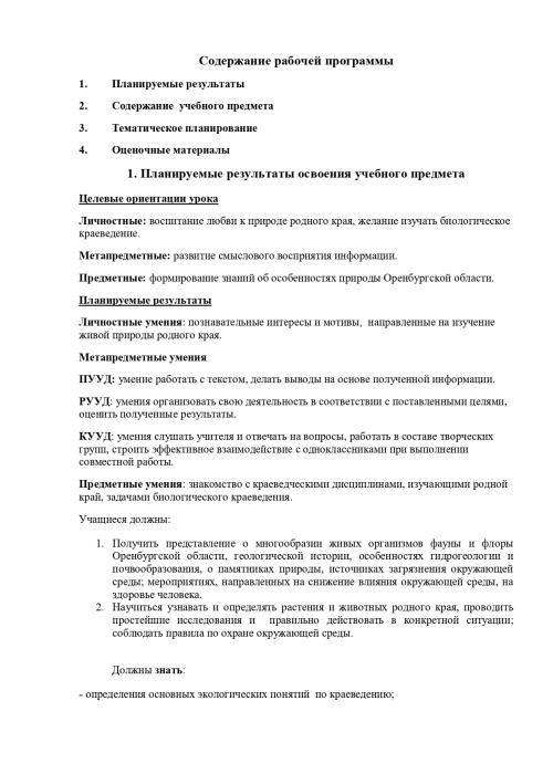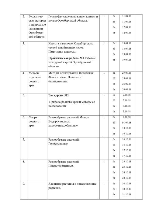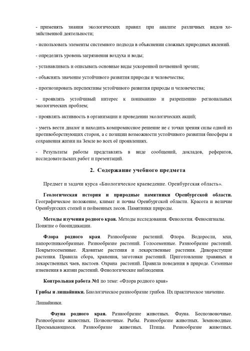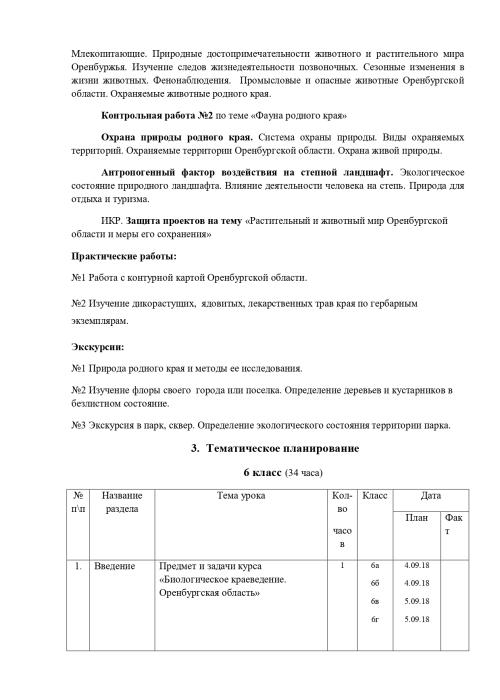 РАБОЧАЯ ПРОГРАММА ПО ЭЛЕКТИВНОМУ КУРСУ «БИОЛОГИЧЕСКОЕ КРАЕВЕДЕНИЕ. ОРЕНБУРГСКАЯ ОБЛАСТЬ» Биологии, 6 класс